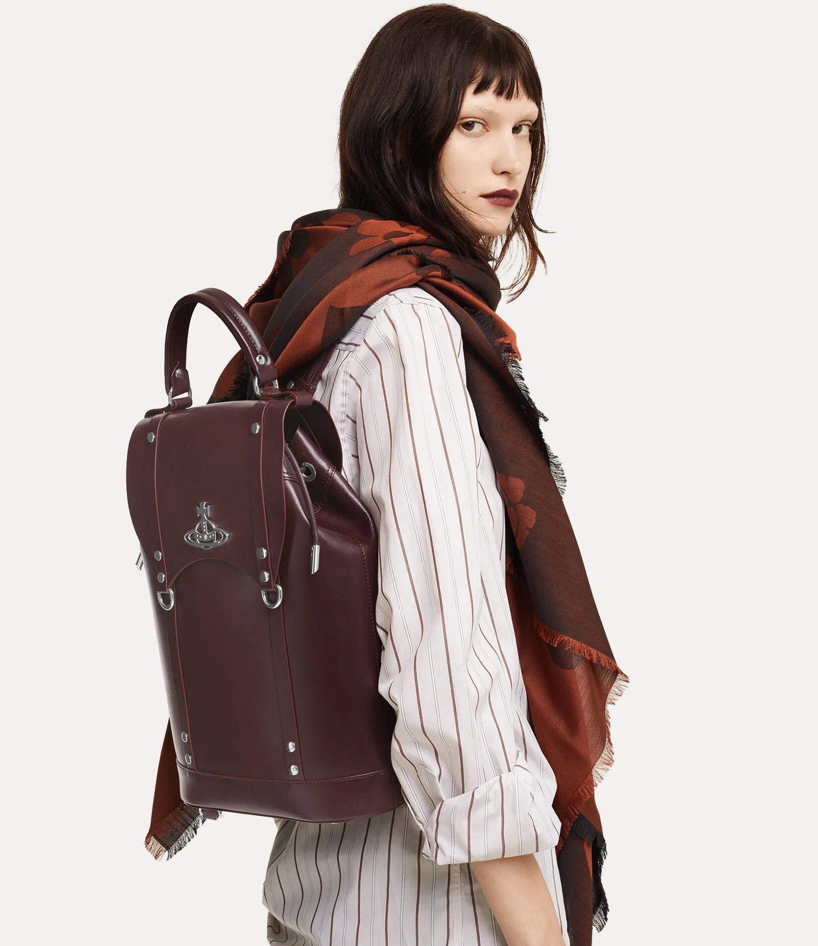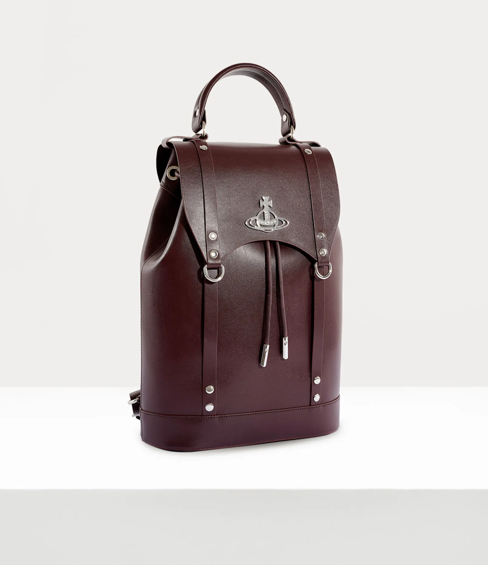 Our Max backpack is a new development in this season’s collection alongside the popular Betty and Kim styles. This roomy design is made from smooth leather and showcases the house’s signature bondage-inspired elements reminiscent of our ‘Erotic Zones’ collection from Spring – Summer 1995. The magnetic-flap closure showcases our signature orb motif and opens to unveil an adjustable drawstring closure, while the padded shoulder straps ensure durability and comfort.