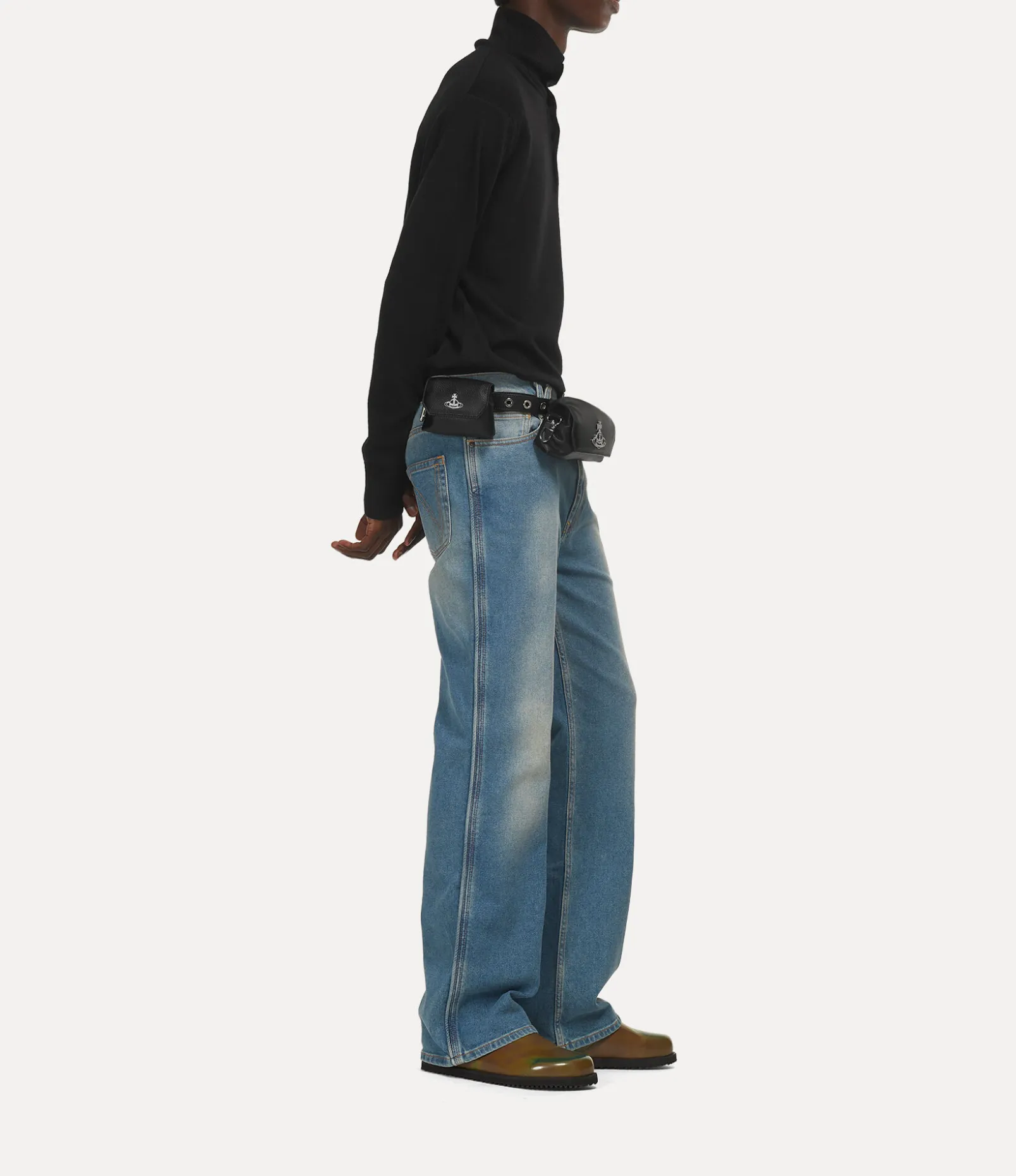 Our Multi Pouch belt takes inspiration from the house’s iconic Carolina belt, receiving polished metal eyelets and a slim silhouette, complete with a roller buckle closure. The piece adopts our line orb motif on the front panel, synonymous with Vivienne’s vision of launching tradition into the future.