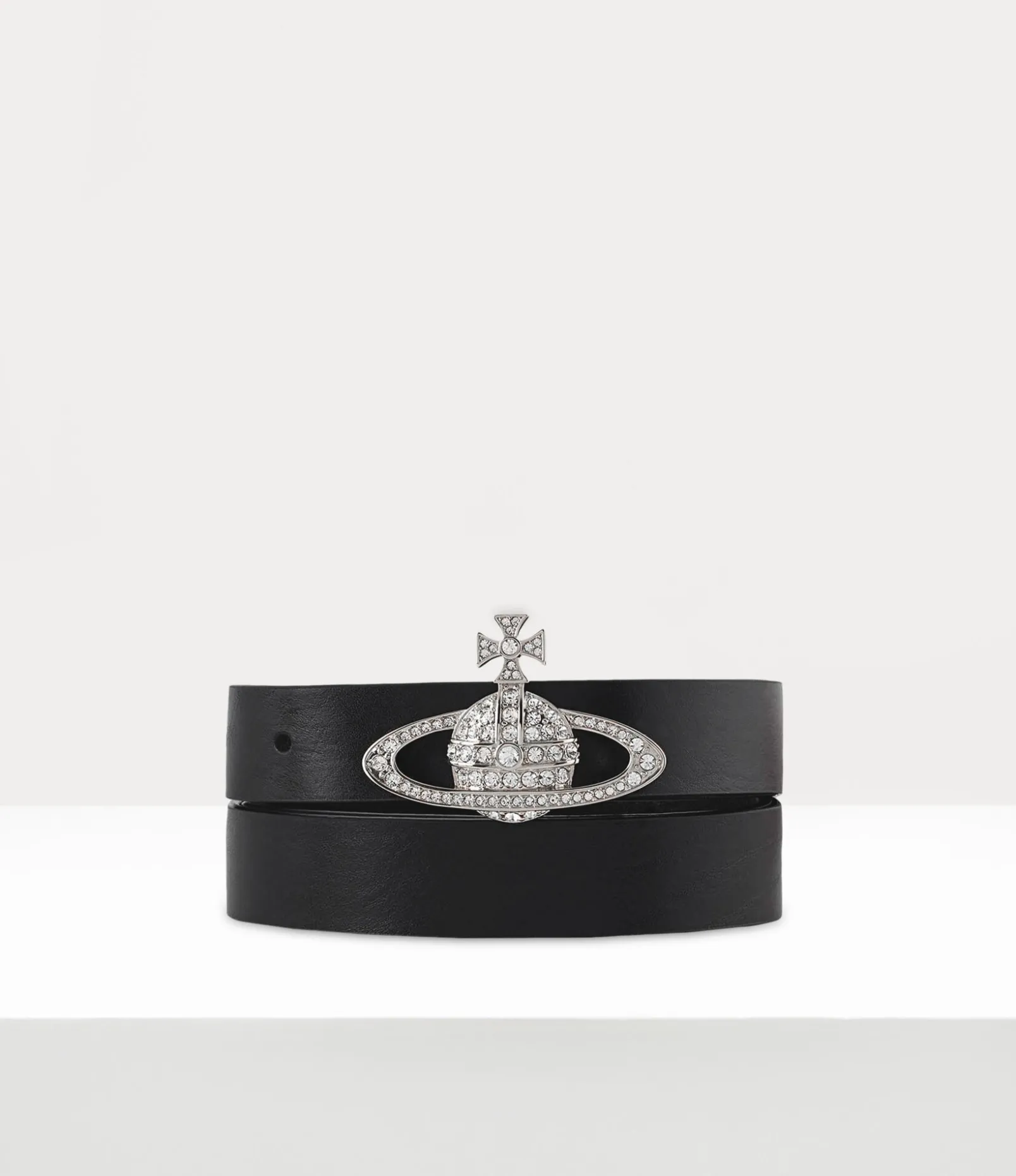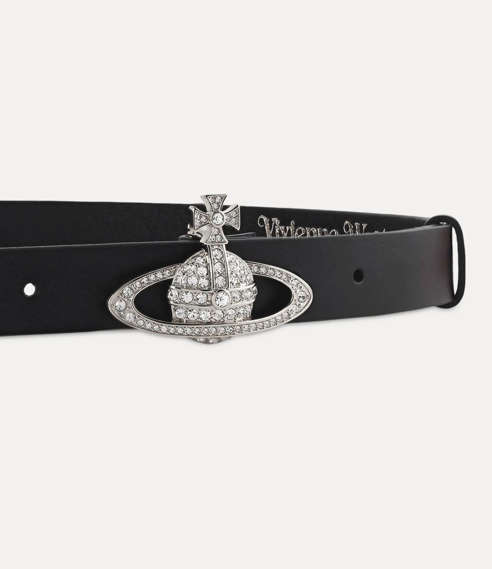 The silhouette of our Small Bas Relief belt was first presented in the Vivienne Westwood collections from the late 1980s. The leather strap is finished with our classic orb embellished with white crystals at the buckle, evoking Vivienne’s vision of taking tradition into the future.
