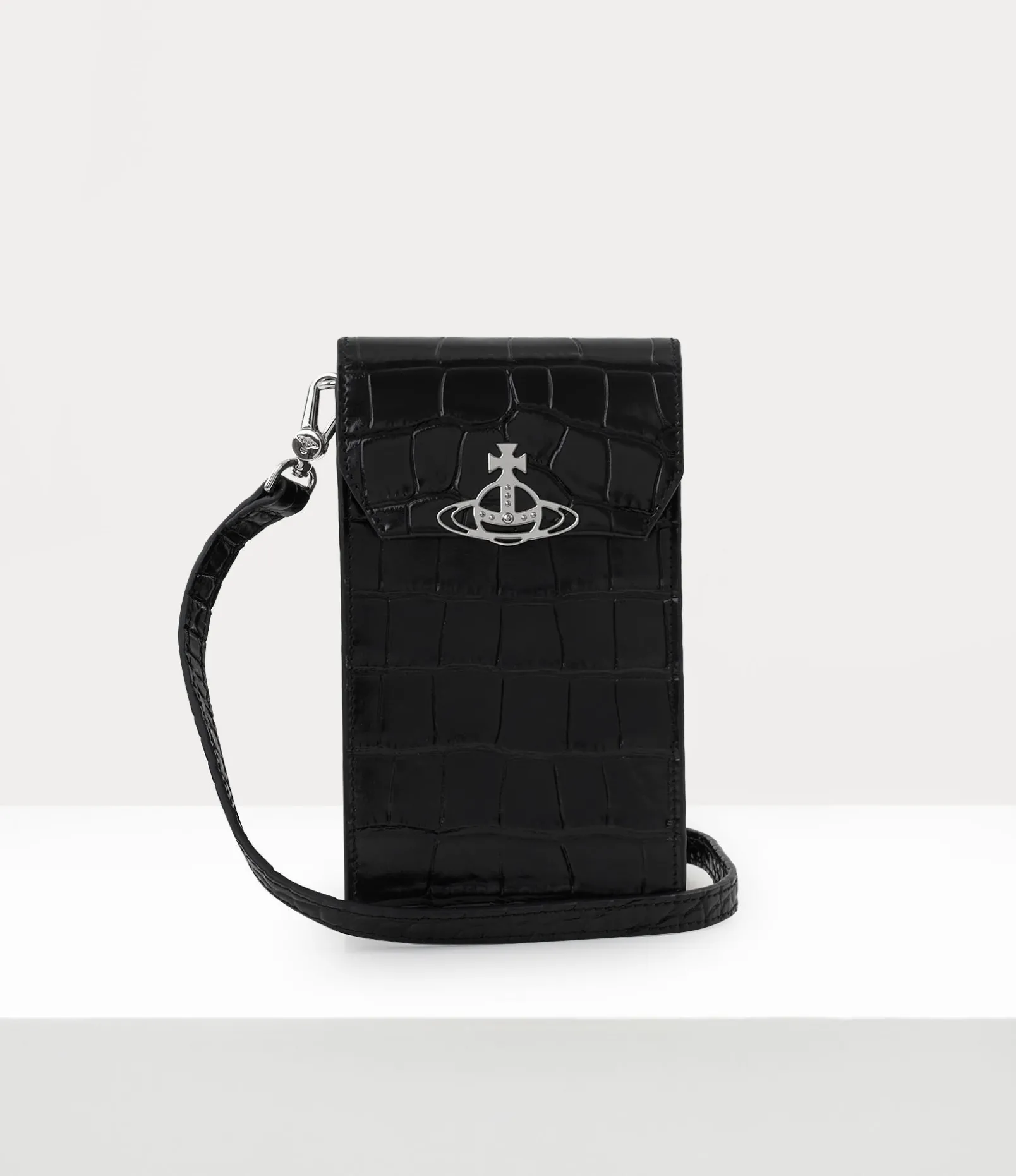 Our Crocodile Phone bag in leather features an embossed surface, reminiscent of our ‘Wild Beauty’ collection. The design showcases our renowned orb in silver tones, an emblem created by Vivienne Westwood in the 1980s to symbolise taking tradition into the future.