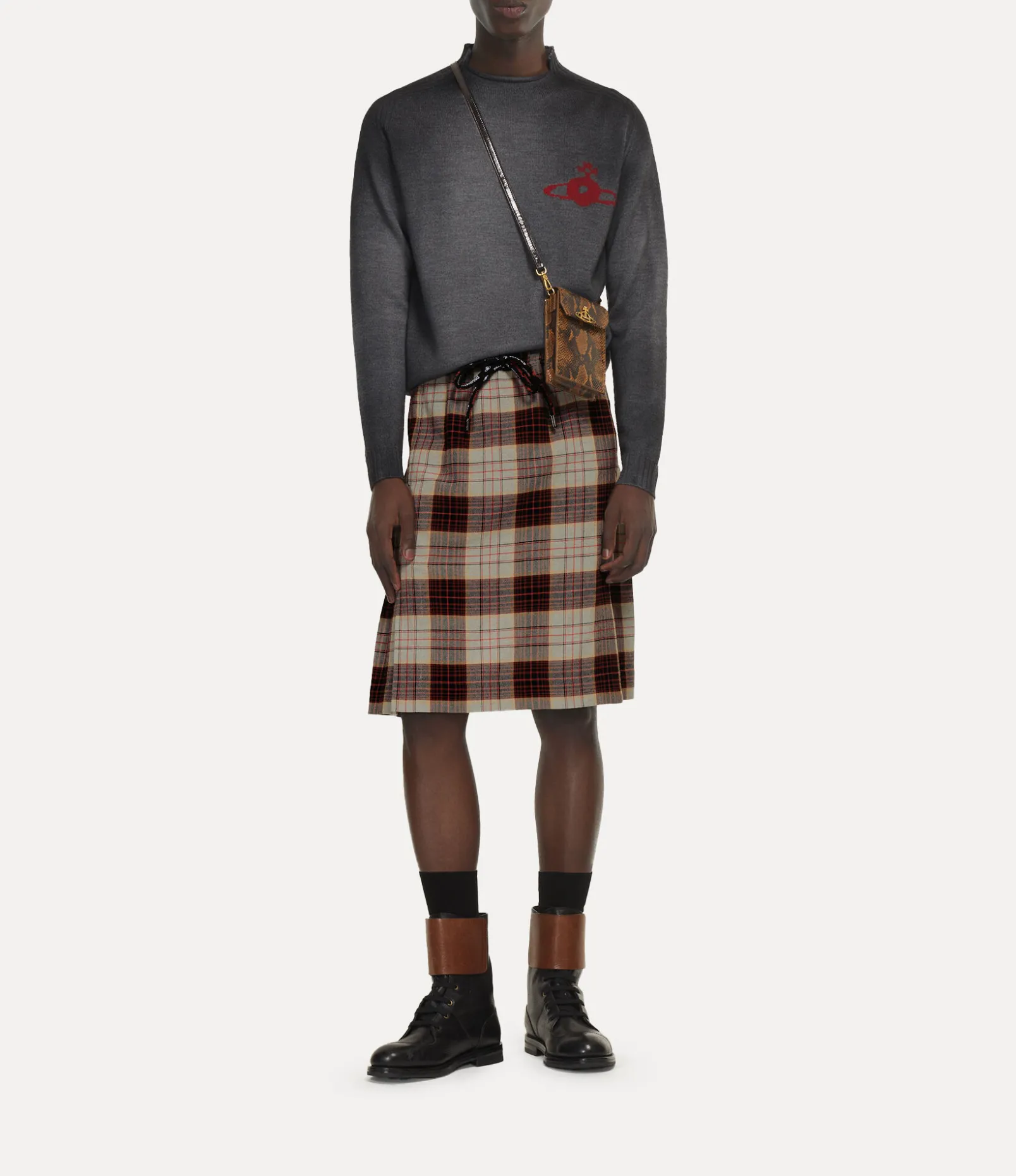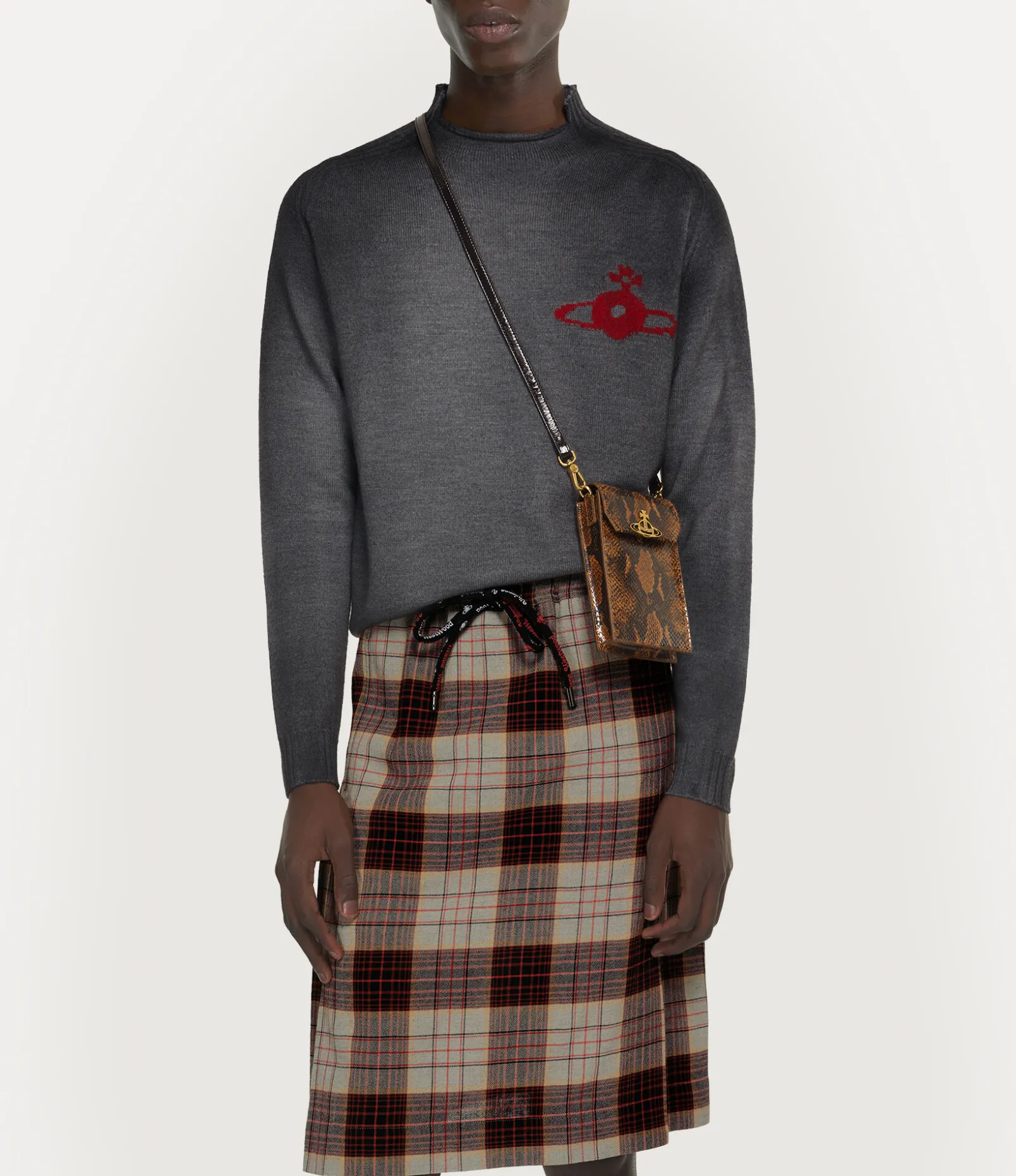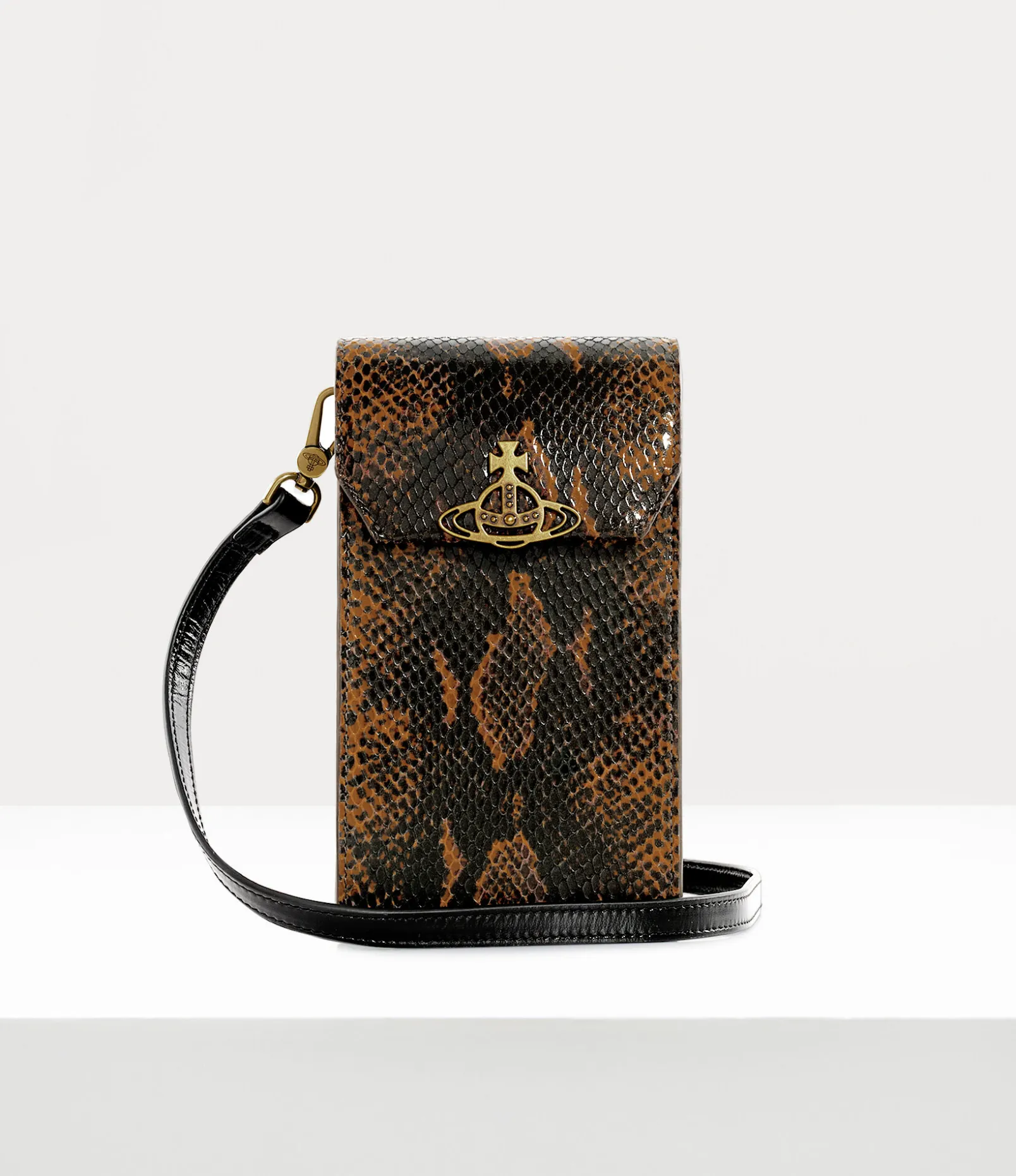This season, our signature Phone bag debuts a new ‘snakeskin’ pattern inspired by our dynamic Hammerhead trainers, first introduced in the 1982 ‘Savage’ collection. The bag features our ‘Thin Line Orb’ motif on the magnetic press-stud fastening, embodying Vivienne’s vision of taking tradition into the future.