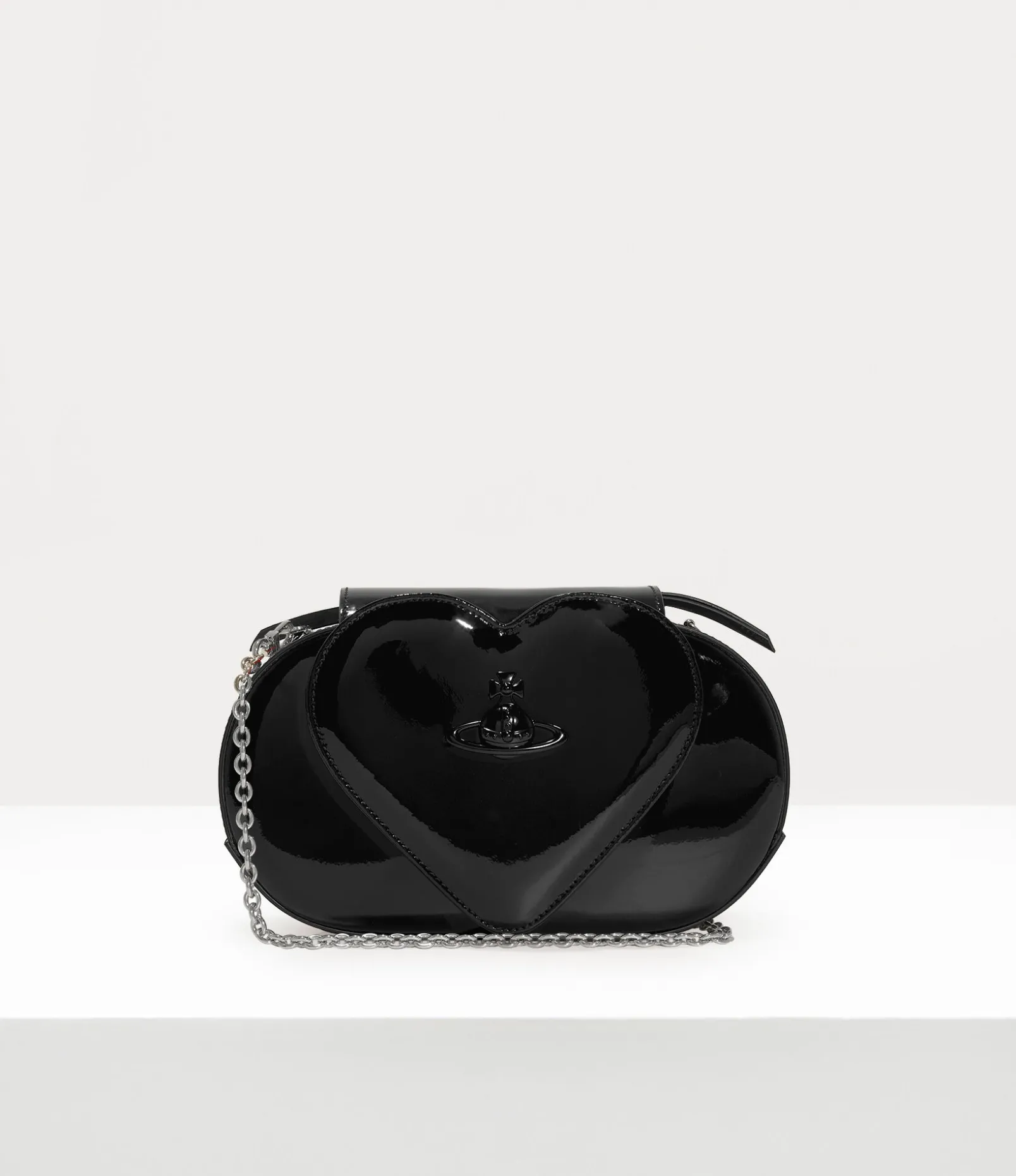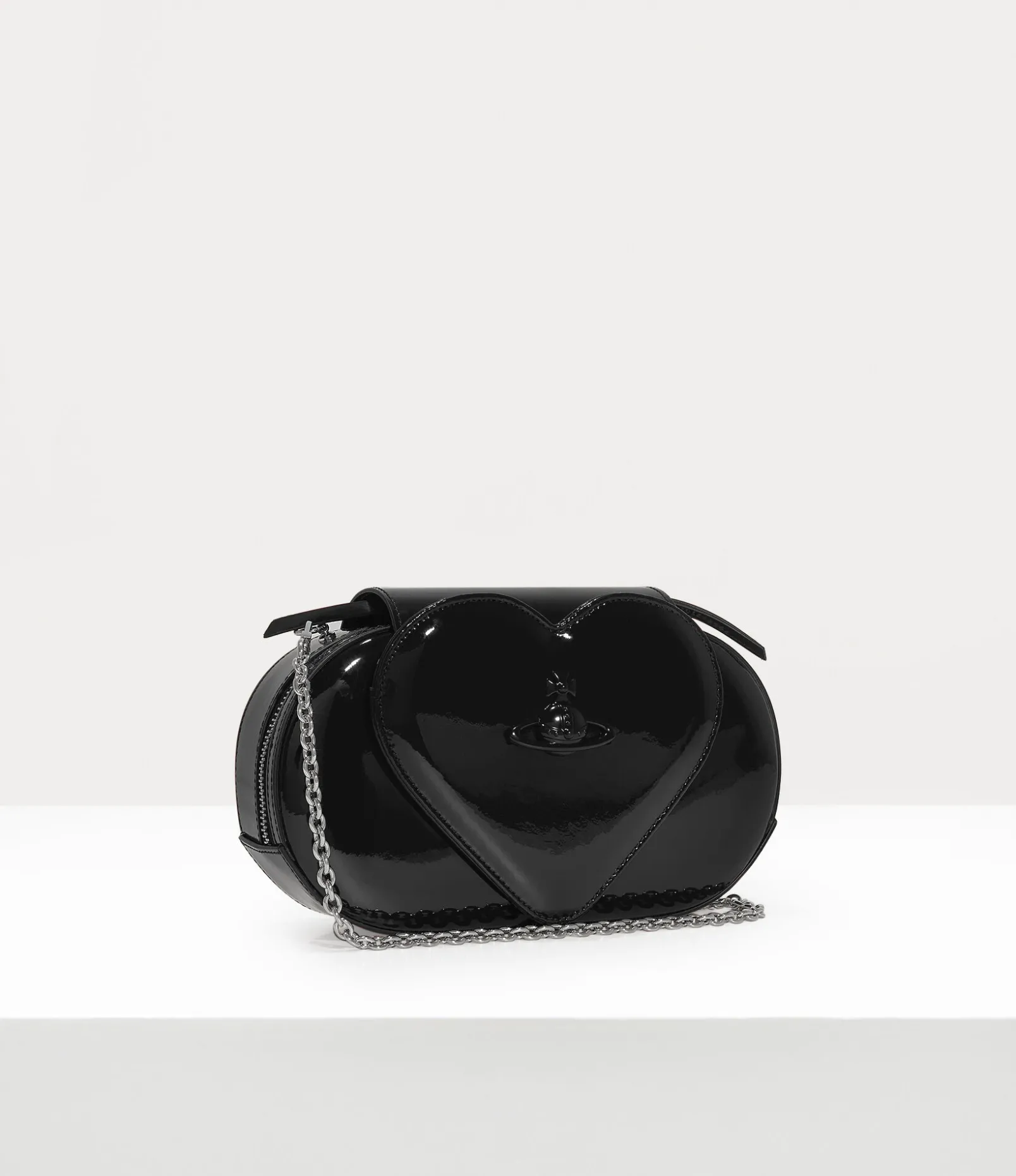 The heart shape remains an essential element of the house’s iconography, which Vivienne used to evoke an affection for both humanity and the planet. The silhouette of the Jonny Heart Flap Crossbody bag revives the heart design, complete with our new three-dimensional orb, finished in shiny patent leather.