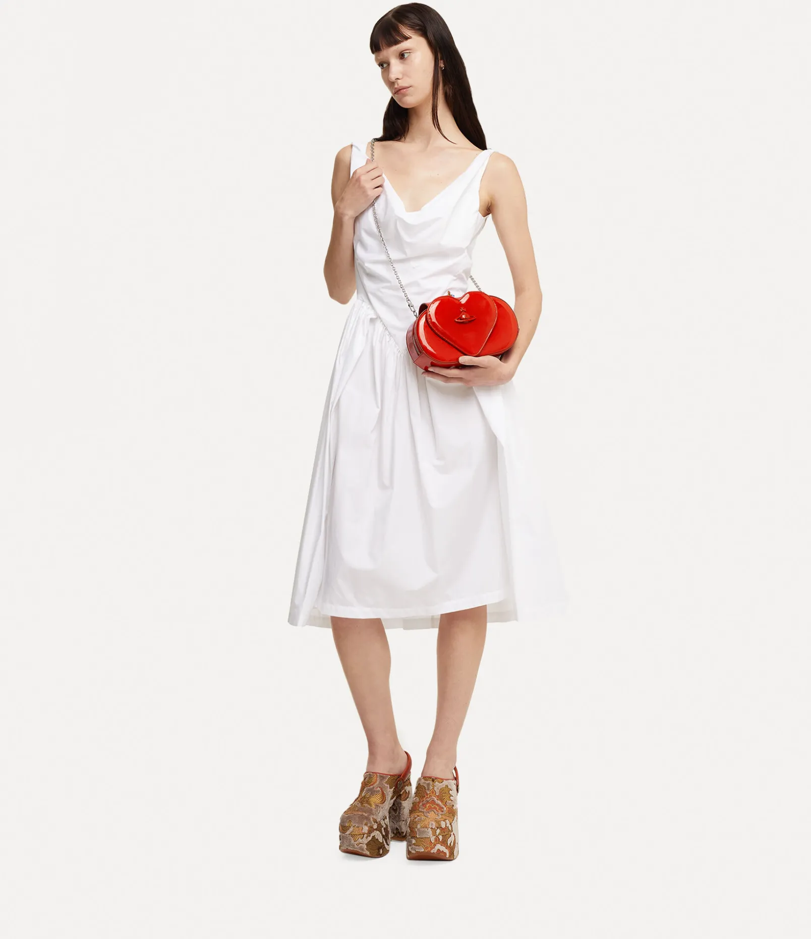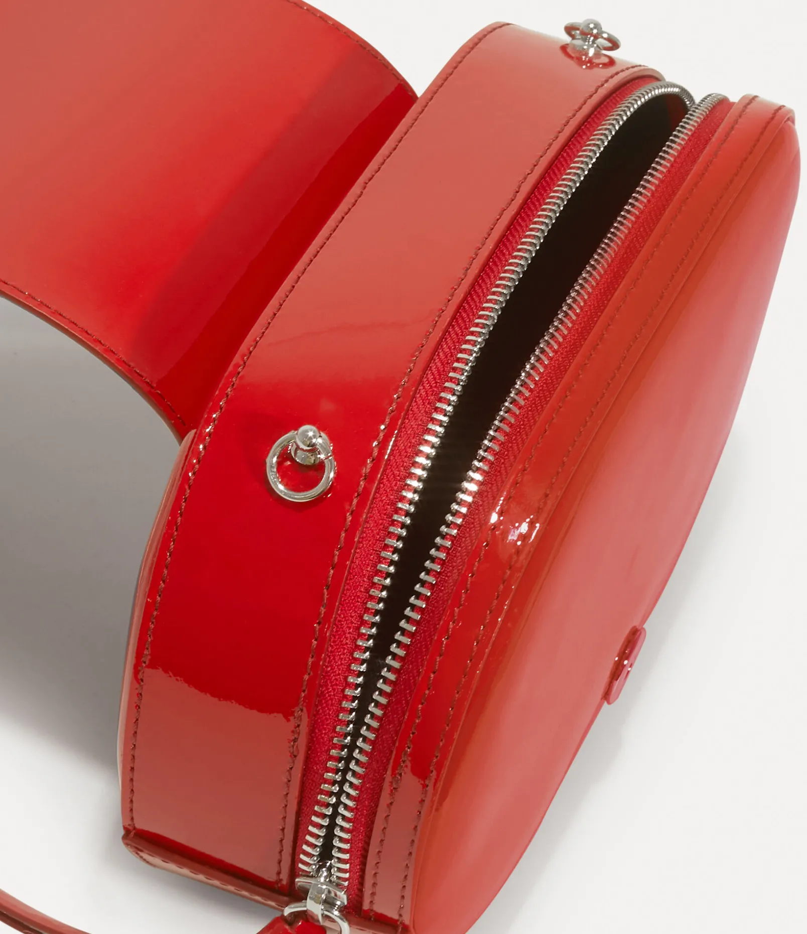 The heart shape remains an essential element of the house’s iconography, which Vivienne used to evoke an affection for both humanity and the planet. The silhouette of the Jonny Heart Flap Crossbody bag revives the heart design, complete with our new three-dimensional orb, finished in shiny patent leather.