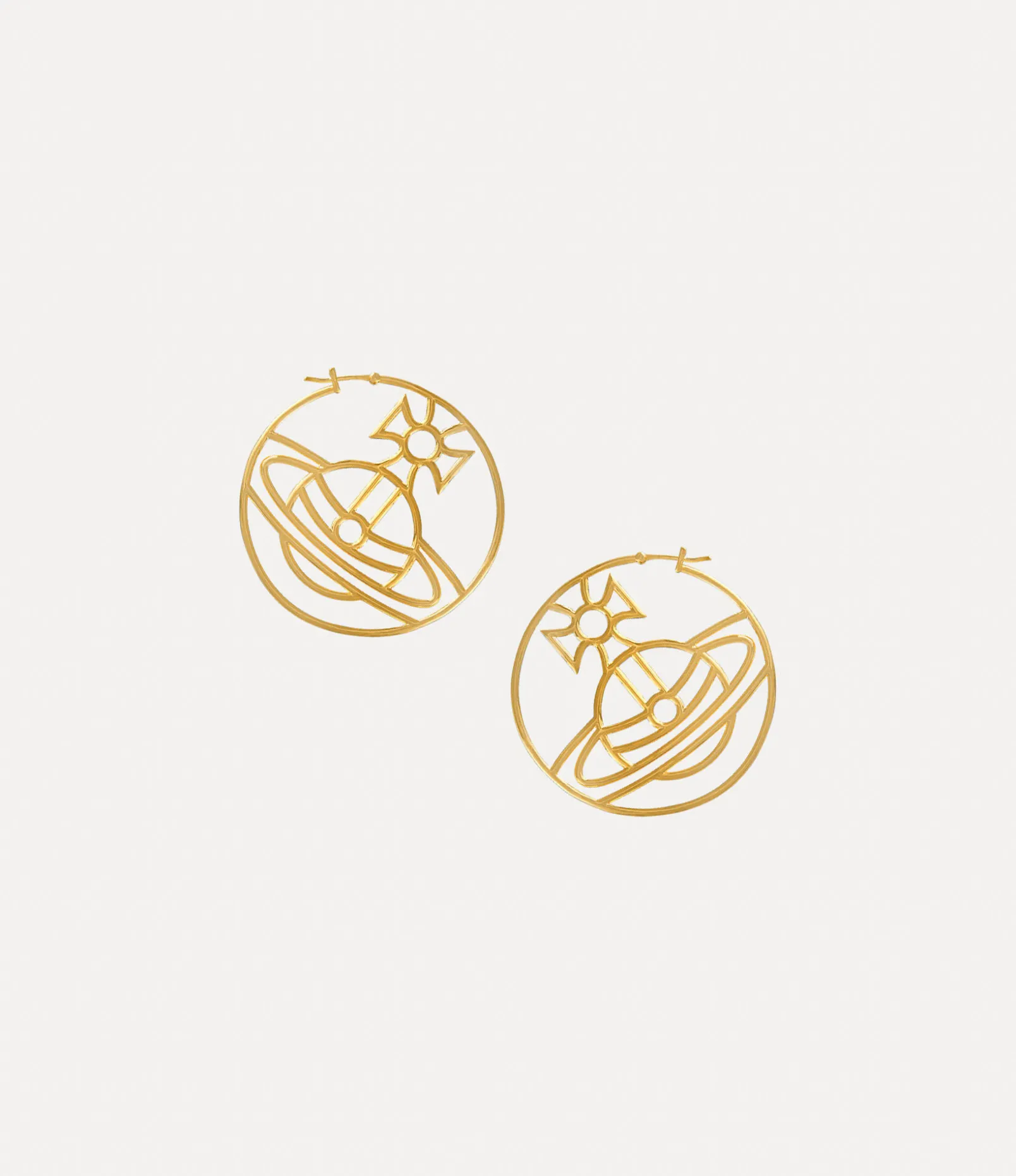 The orb emblem represents Vivienne’s vision of propelling tradition into the future, serving as a source of inspiration for the house’s Classic jewellery collection. The Alina earrings feature a hoop silhouette outlined with our motif in the centre, securing in the ears with a hinge-back fastening.