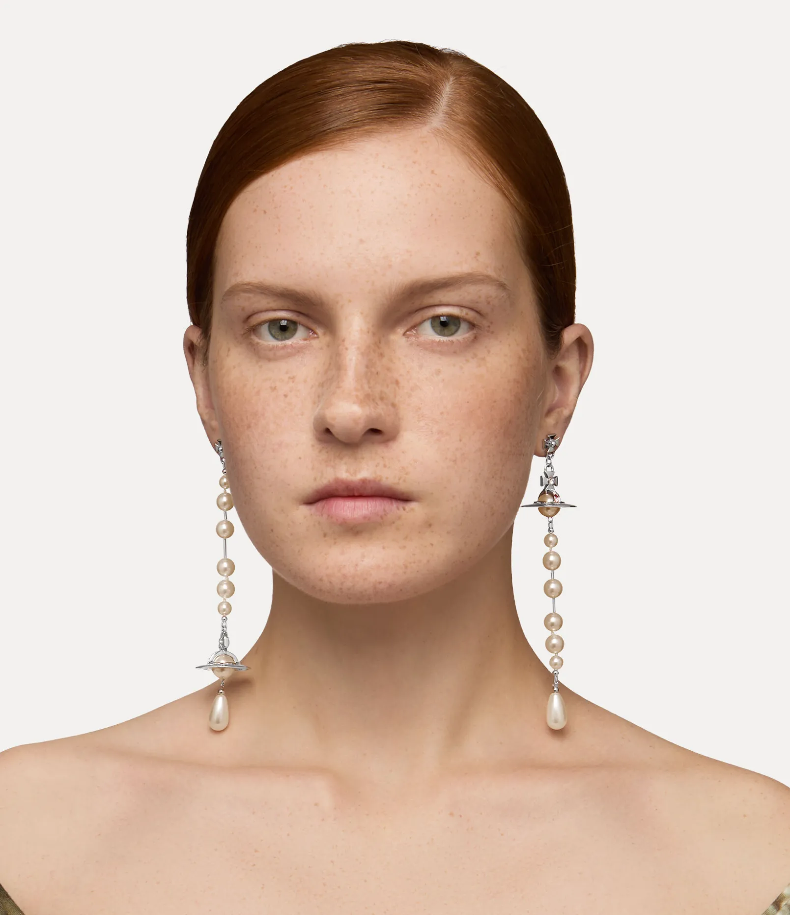 Vivienne Westwood debuted the Broken Pearl earrings in her Autumn/Winter 2005-2006 “Propaganda” collection, capturing the brand’s signature punk-inspired aesthetic. These earrings feature an uneven, asymmetrical design that echoes the classic “broken” motif of the original pearl necklace.