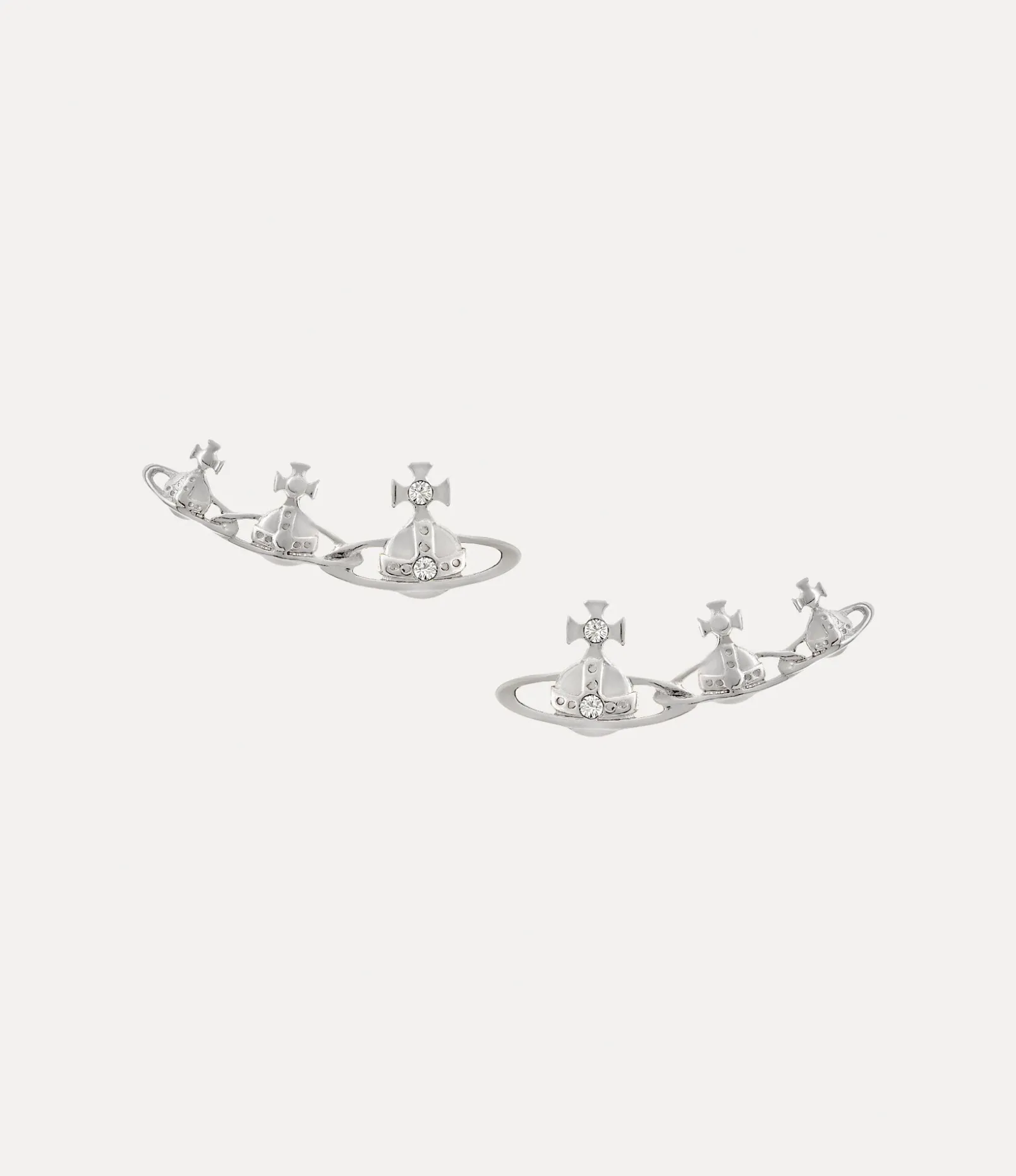 Our Candy earrings feature silver-tone plating, complete with an all-metal finish. The silhouette draws inspiration from our house’s orb motif and receives three interconnected orb details – synonymous with Vivienne’s vision of launching tradition into the future.