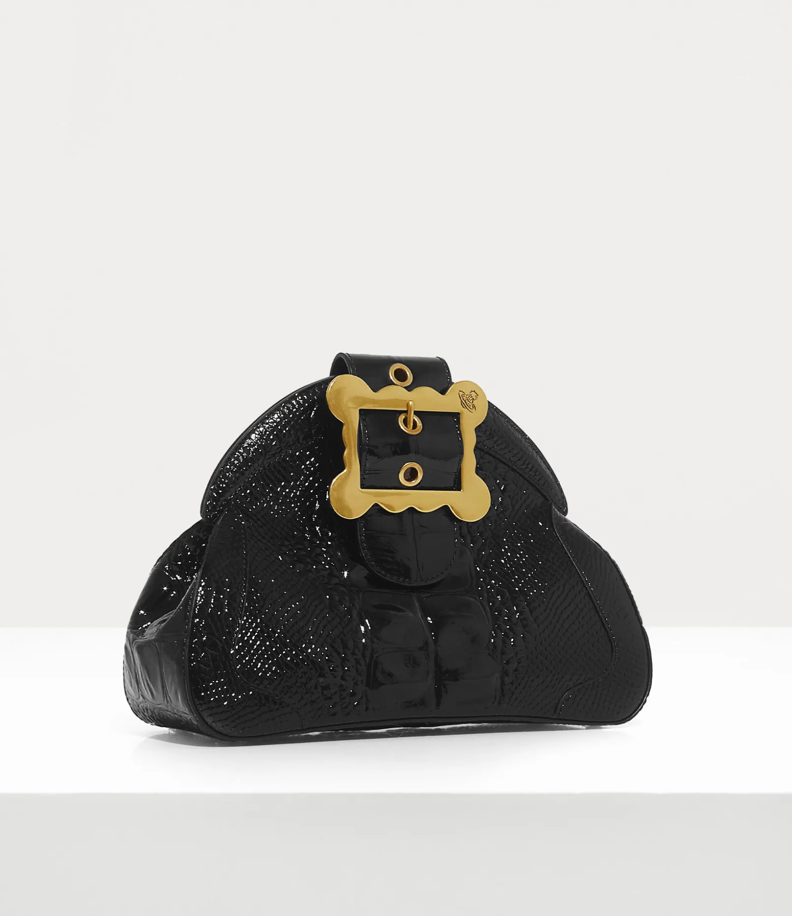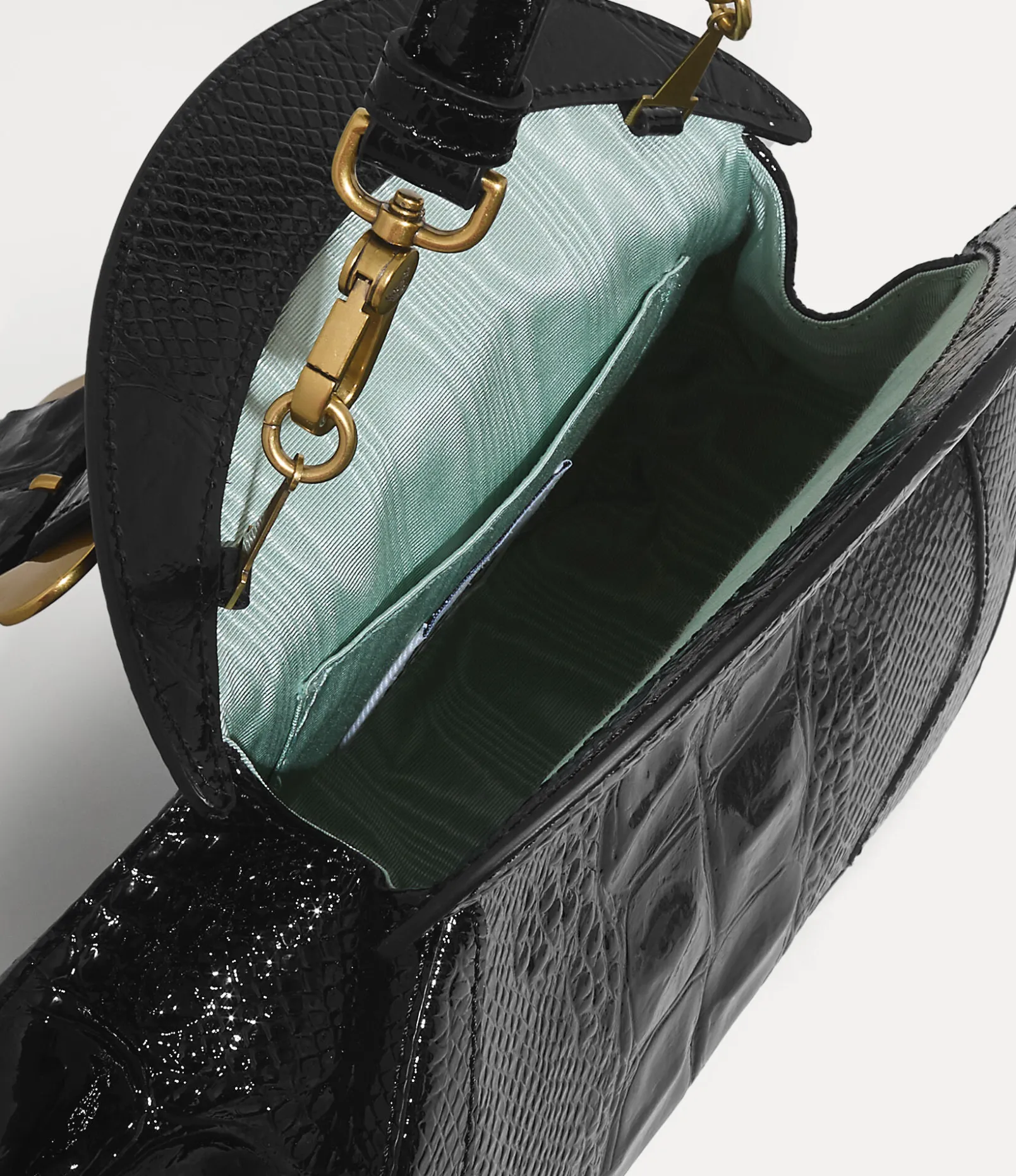 The house’s archival ‘frame buckle’ detail adorns the front of the Amy Shoulder bag, which draws inspiration from the gilt frames that encase Renaissance artworks. Complete with a croc-embossed finish, the design offers the illusion of being wrapped with a belt, reminiscent of the house’s signature DIY punk aesthetic.