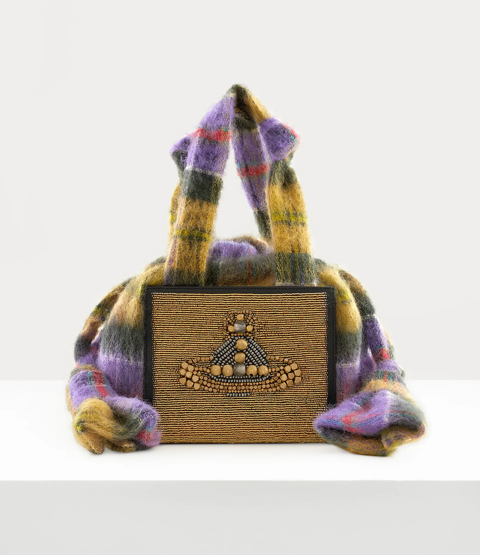 Our Donna handbag is offered in a soft tartan mohair finish this season, created using a unique brushed-effect technique. The tartan motif captures the essence of Scotland’s rugged landscape, which inspires our latest collection, and receives a beaded orb detail on the front panel, hand-finished by the Masai community in Kenya.