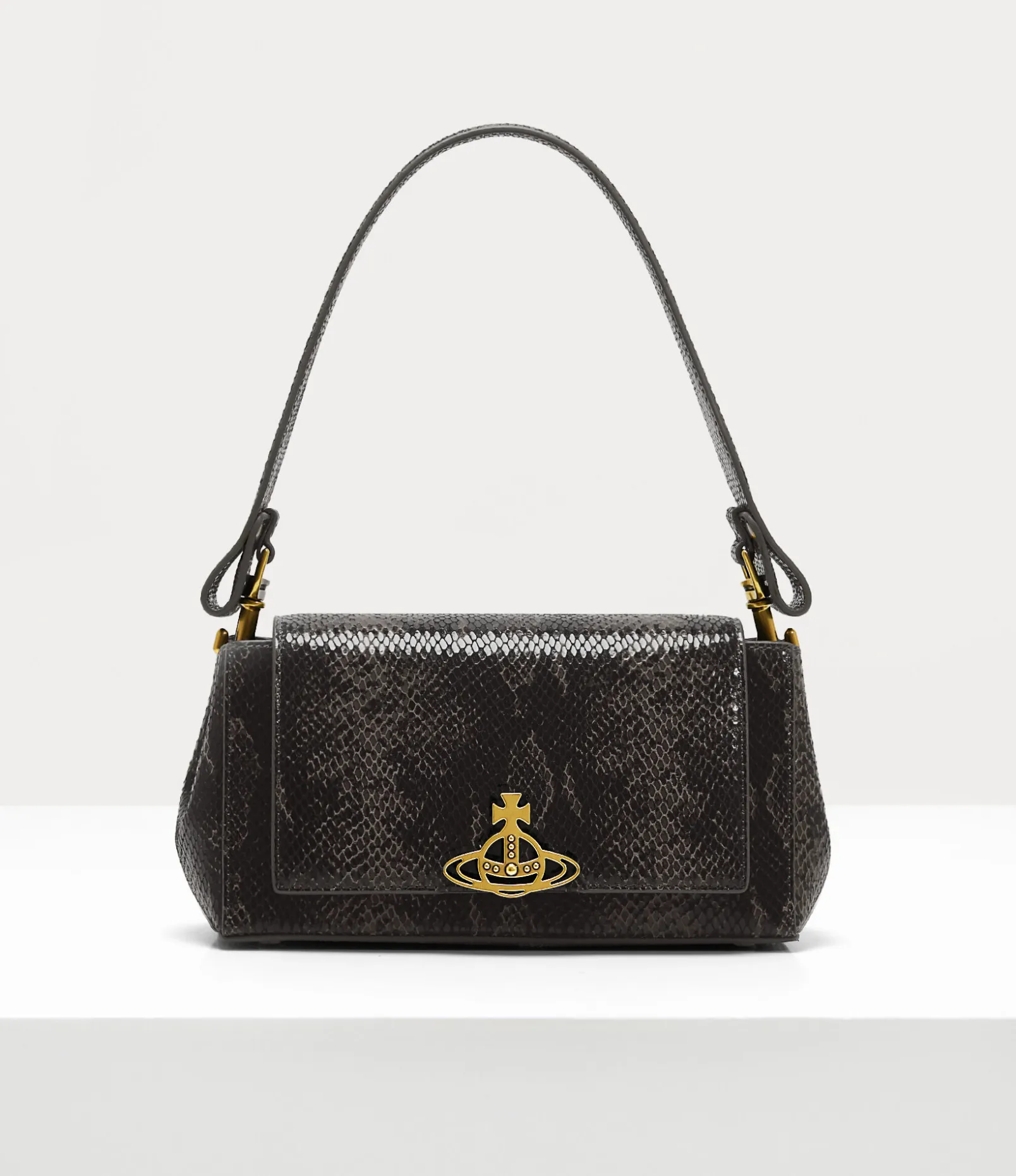 Our Medium Hazel handbag is the latest development of the Hazel range this season. The piece features a python-embossed finish, complete with our signature broken pinstripe lining, a unique twist on the traditional pinstripe pattern, first seen in the Vivienne Westwood Gold Label Autumn-Winter 2015 collection.