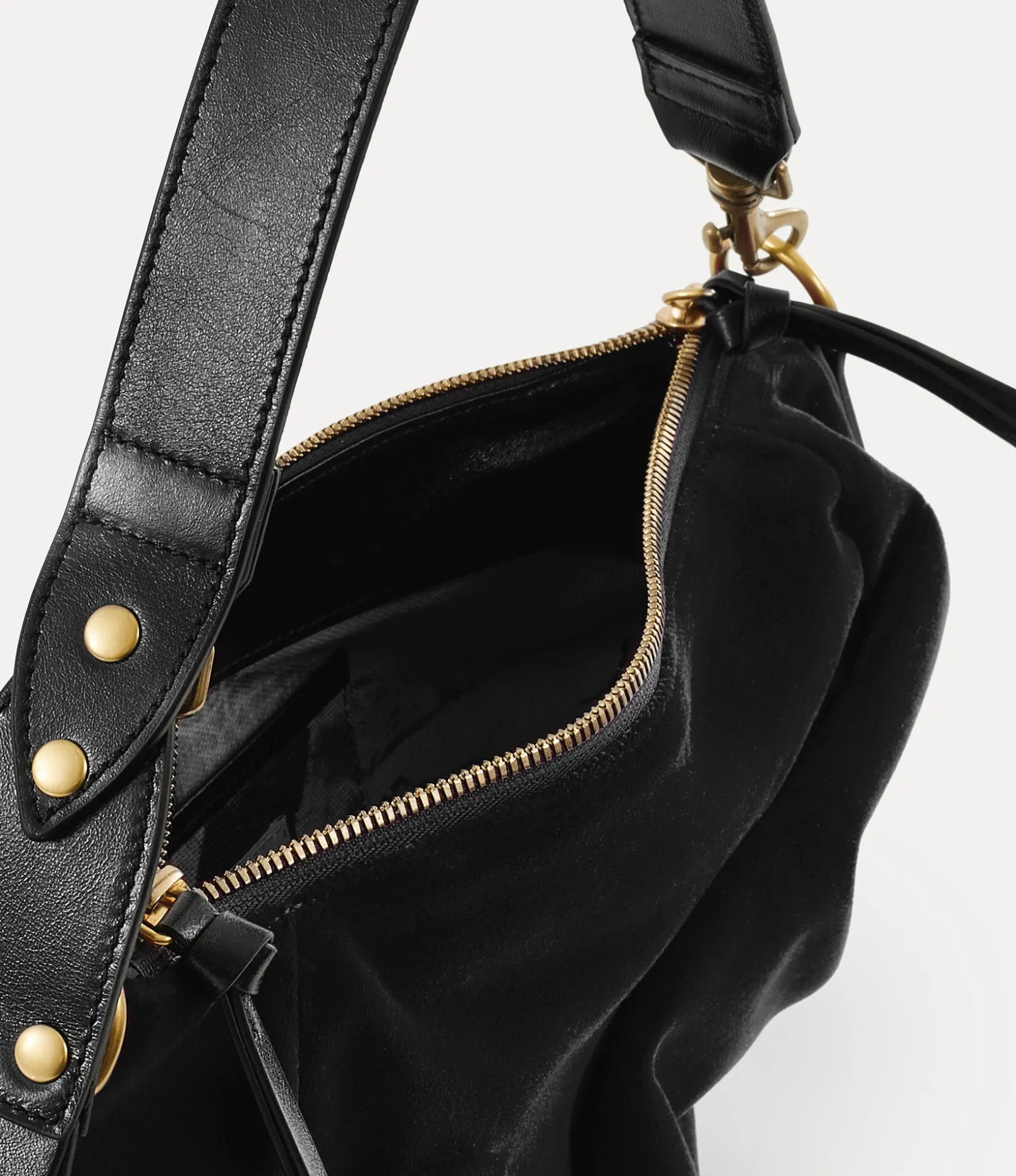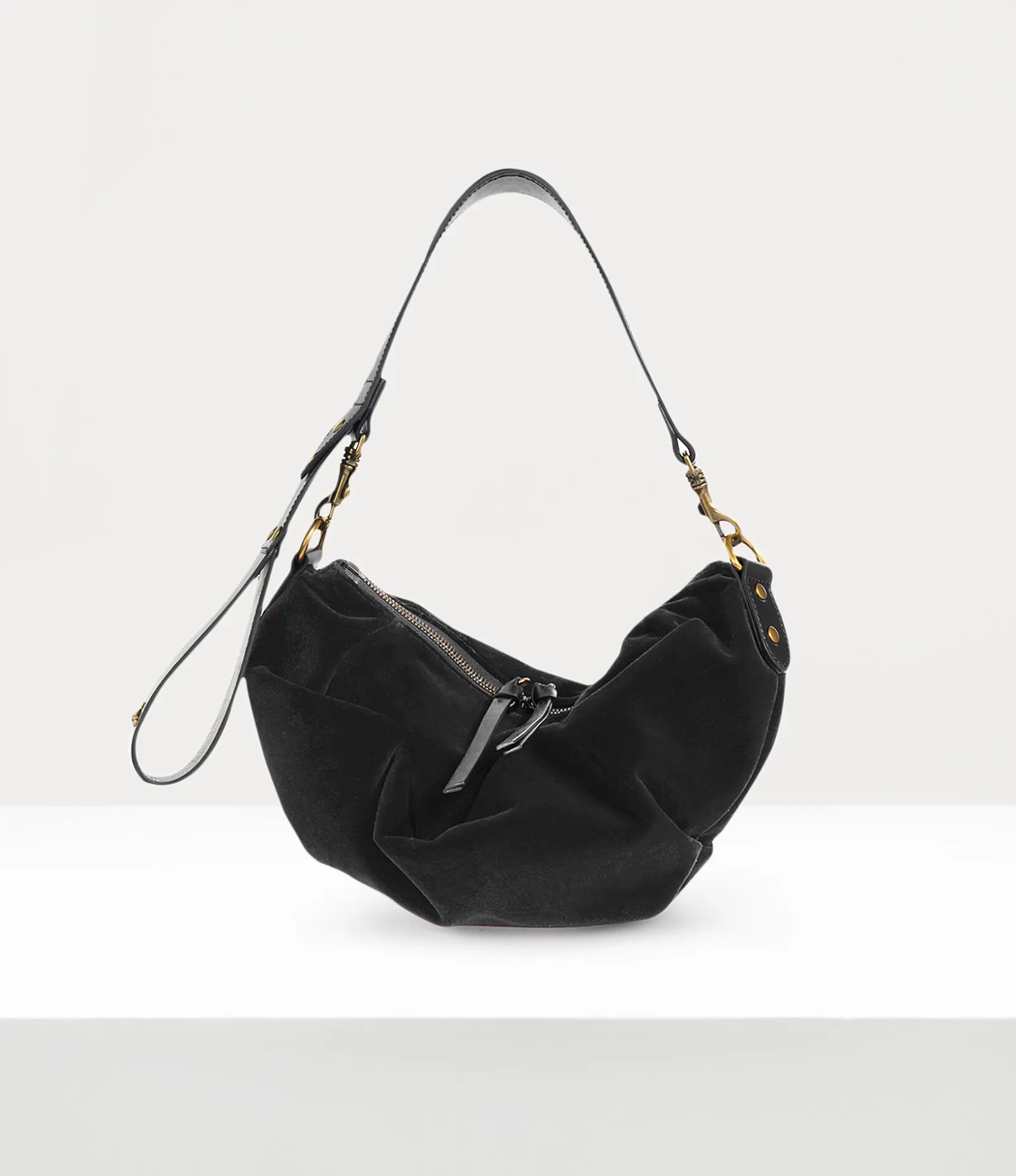 Our Small Agnes Shoulder bag features a unique pattern cutting system inspired by the Autumn-Winter 2001 ‘Wild Beauty’ collection, complete with drapery at the front and a curved silhouette. The handle is reminiscent of the bondage whips sold in our iconic Sex boutique, while the orb-branded strap recalls Vivienne’s vision of launching tradition into the future.
