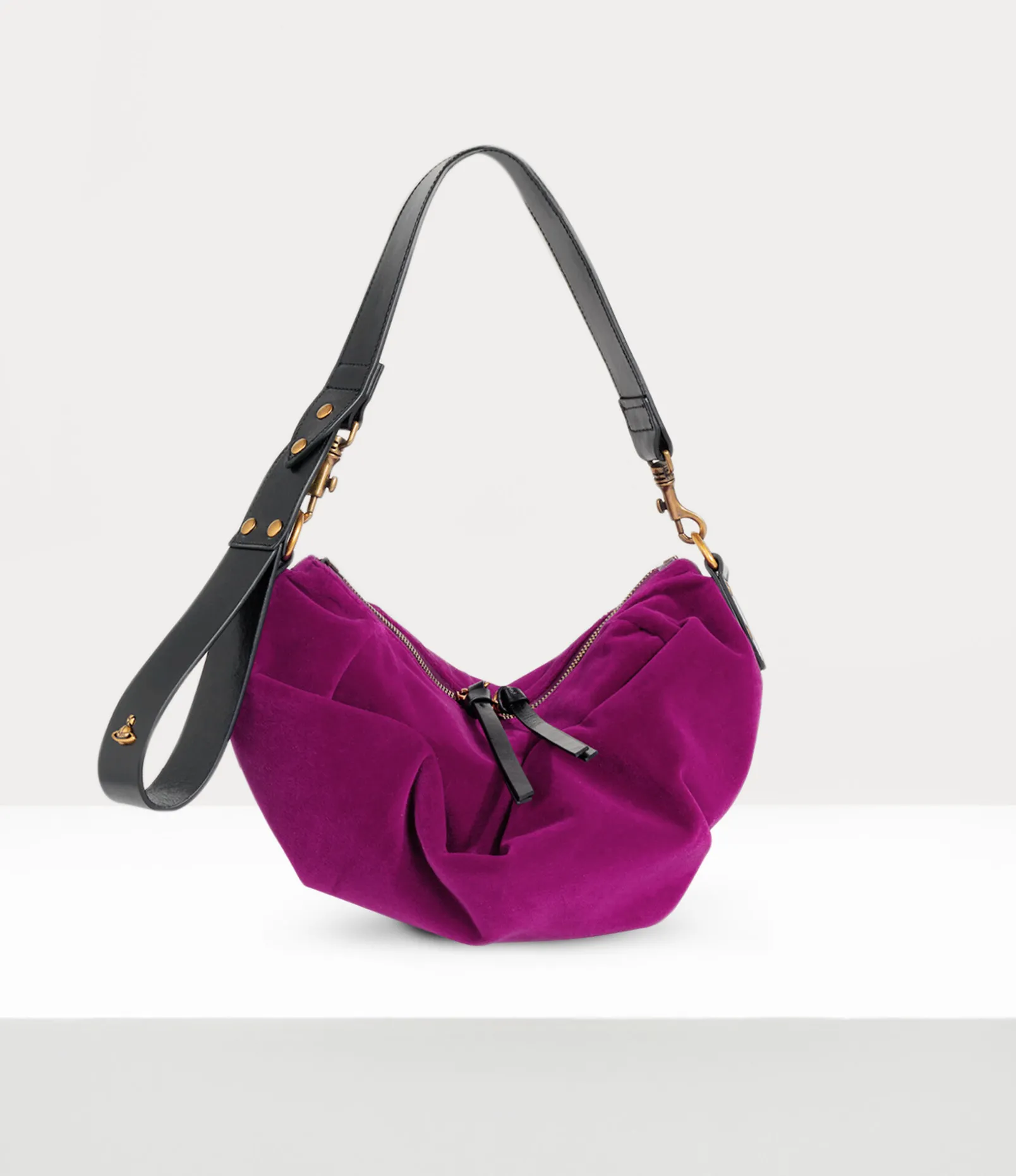 Our Small Agnes Shoulder bag features a unique pattern cutting system inspired by the Autumn-Winter 2001 ‘Wild Beauty’ collection, complete with drapery at the front and a curved silhouette. The handle is reminiscent of the bondage whips sold in our iconic Sex boutique, while the orb-branded strap recalls Vivienne’s vision of launching tradition into the future.