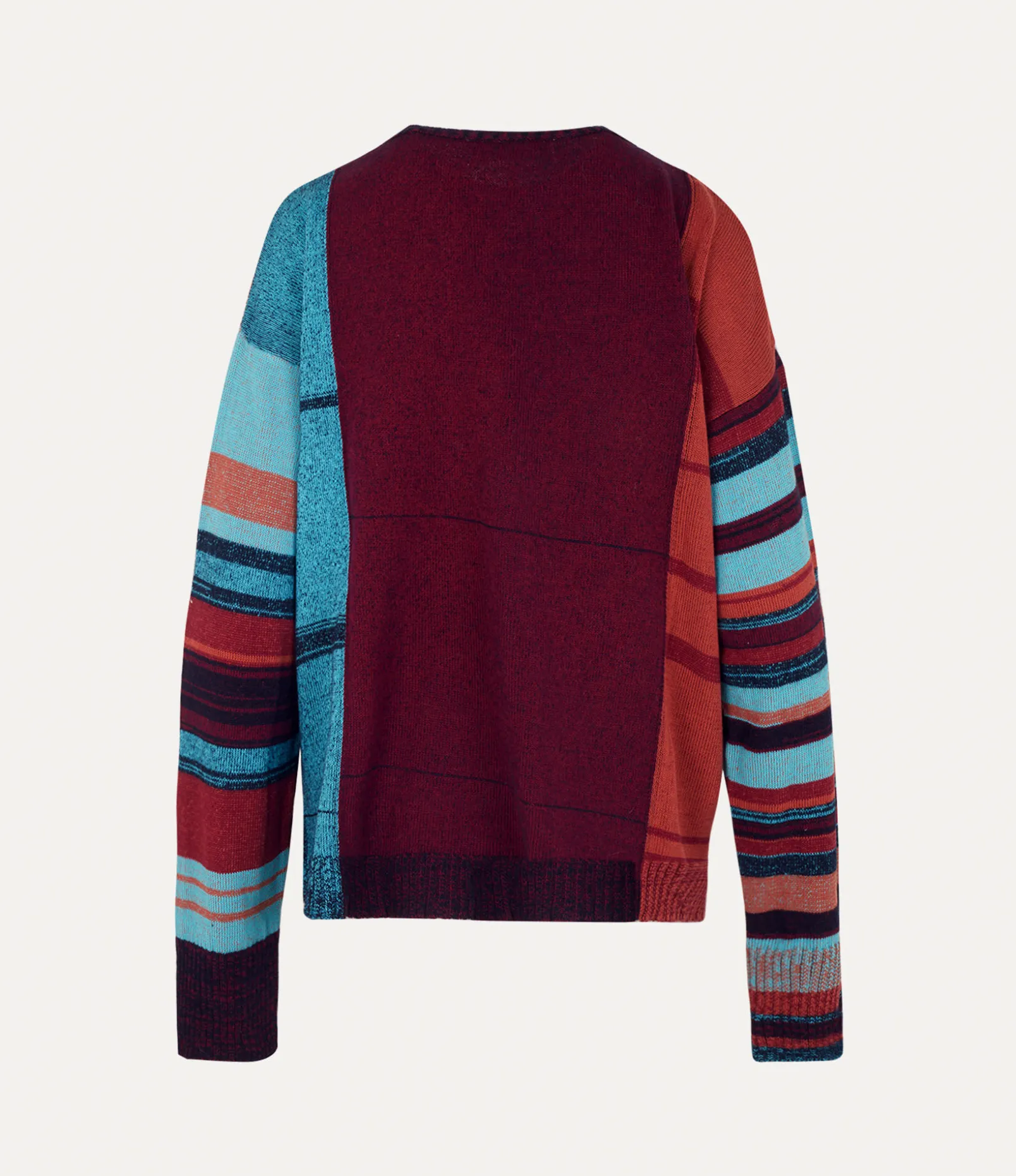 Our Graffiti jumper revives our timeless graffiti jacquard, first seen in the Andreas Kronthaler for Vivienne Westwood Autumn-Winter 2020-21 Paris show. This statement piece features our stripped TV-stitch details from the archives, reminiscent of the zig-zag patterns found on a distorted TV screen.