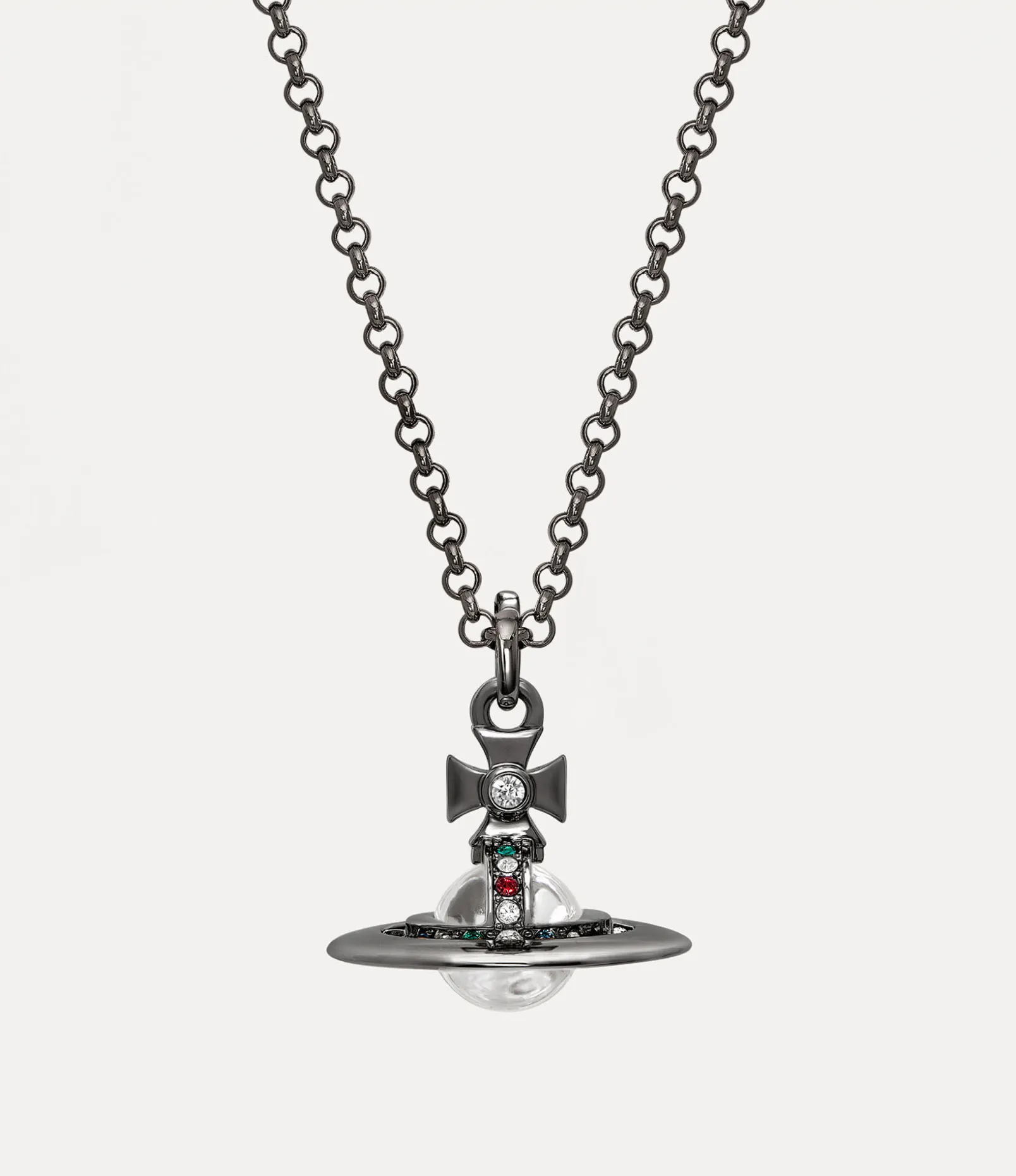 Our New Tiny Orb Pendant necklace is a signature style of the house, featuring a central spherical glass gemstone that is complemented by a reliable lobster clasp. The three-dimensional orb pendant is adorned with glistening crystal details in vibrant hues, recalling Vivienne’s vision of taking tradition into the future.