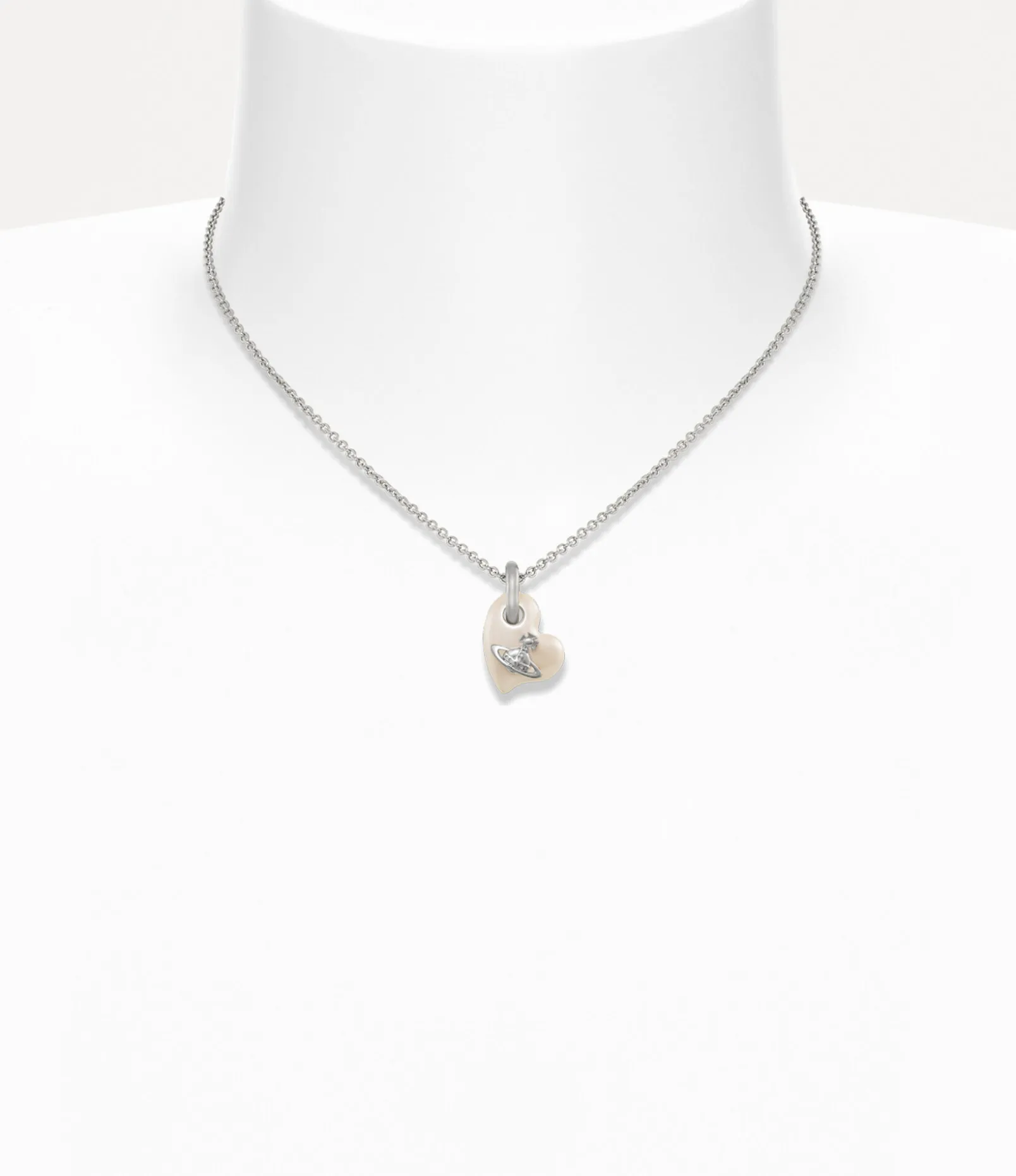 The asymmetric heart shape has become a signature style of the house, having appeared in many collections throughout our history. This season’s Florentia Pendant necklace receives an asymmetric heart motif, enhanced by a glistening pearl coating, finished with a plated orb motif in the centre of the design, synonymous with Vivienne’s vision of launching tradition into the future.