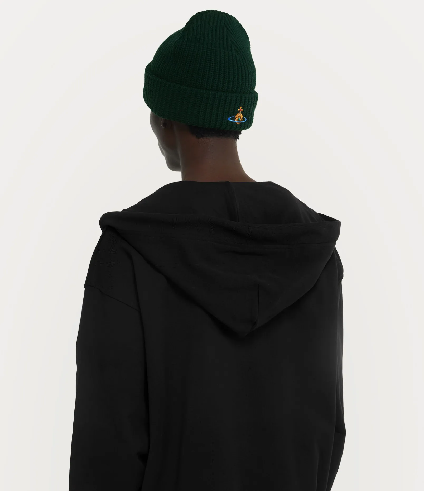 Our Sporty beanie features an all-over ribbed finish, complete with a chunky knit. The multicoloured orb embroidery on the front of the wide folded brim draws inspiration from the house’s iconic orb motif – synonymous with Vivienne’s vision of launching tradition into the future.