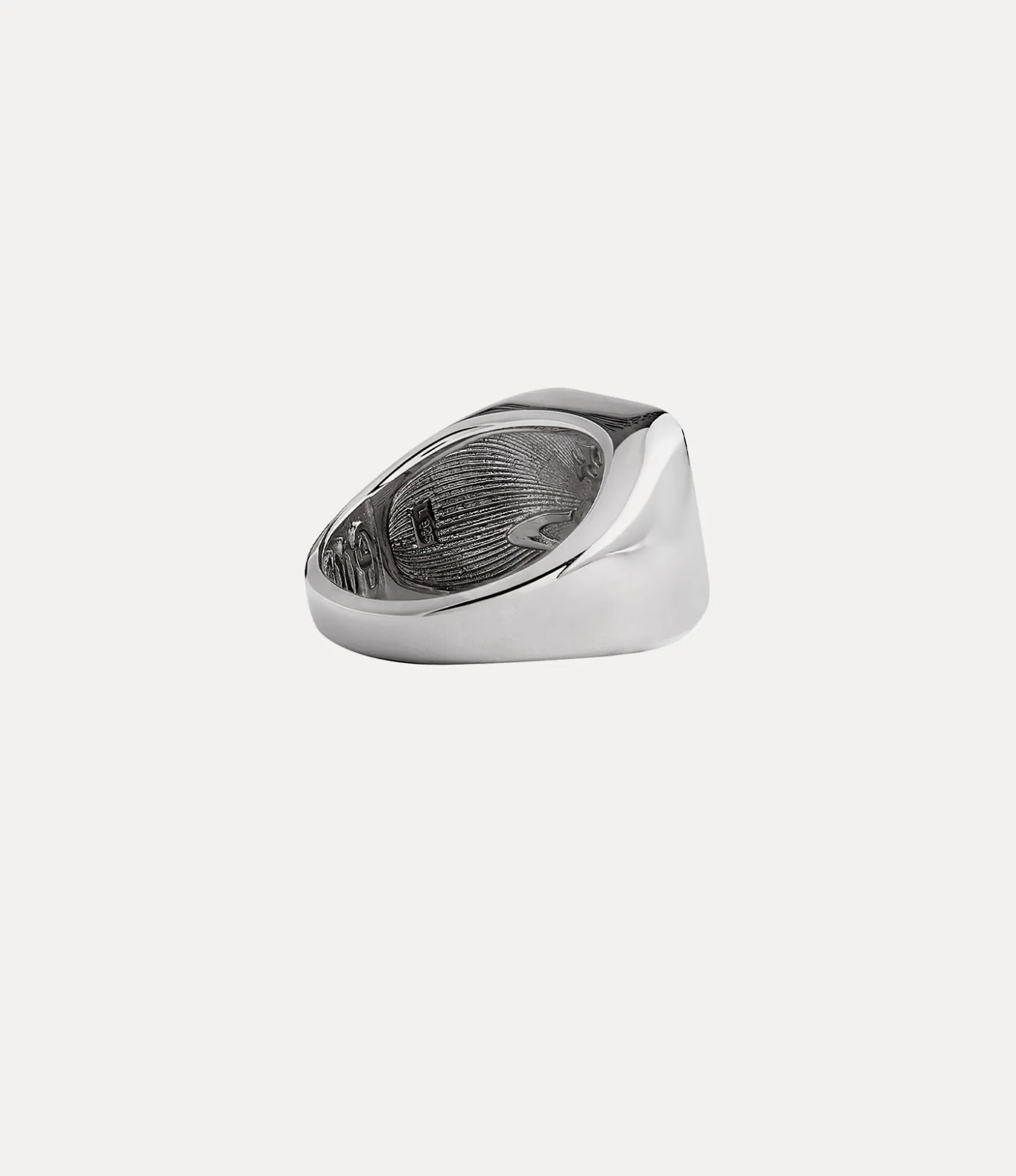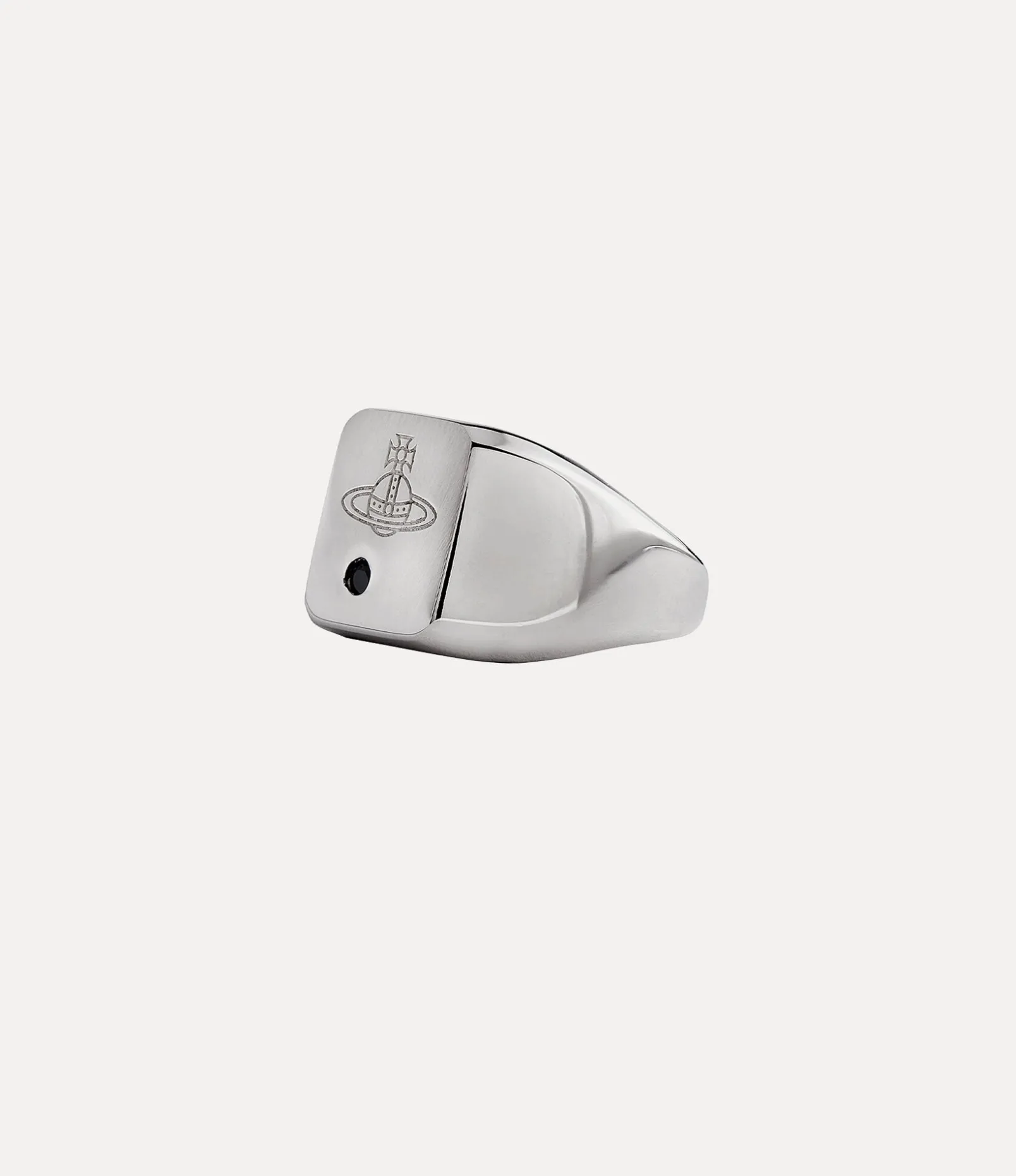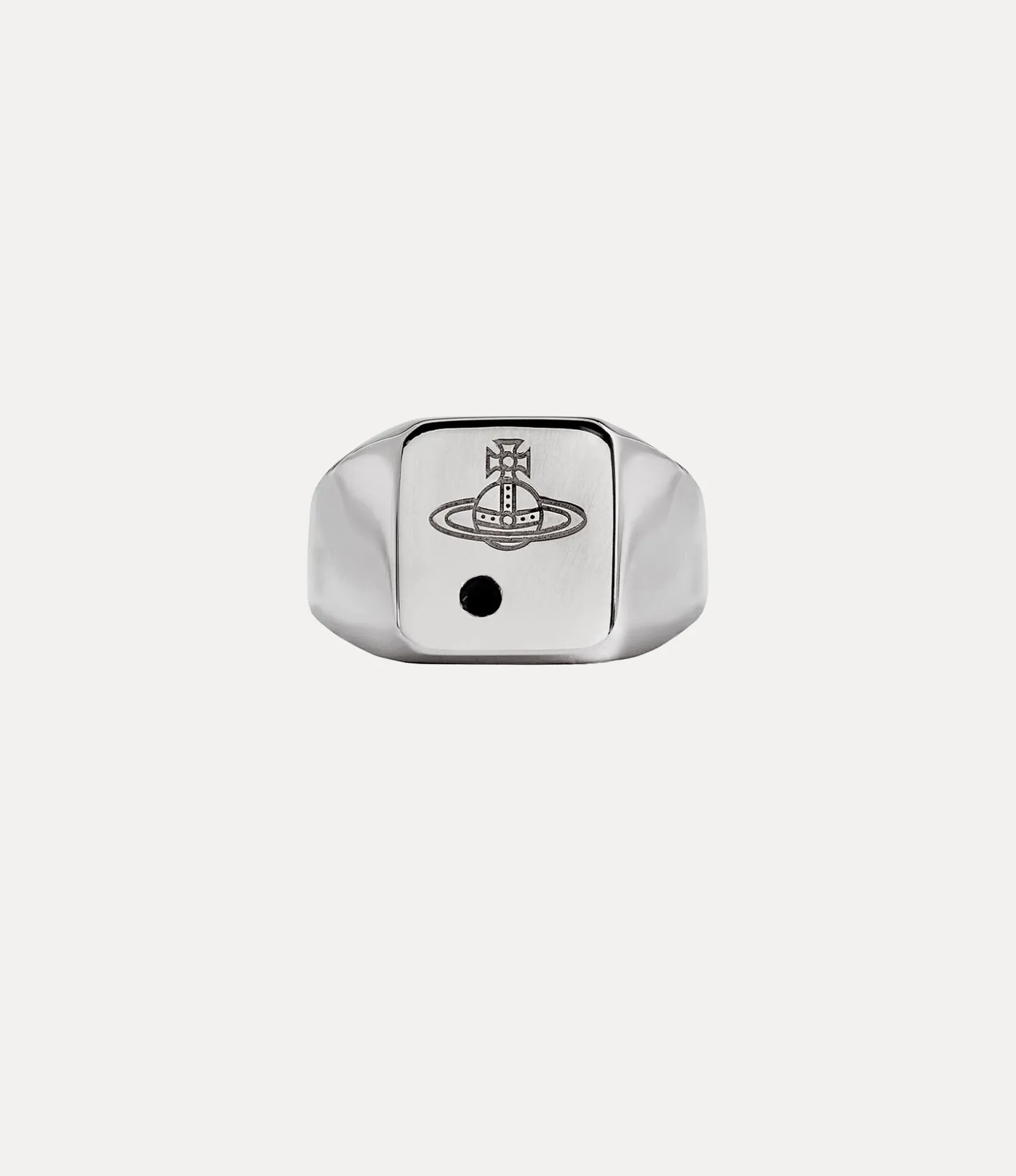 Our Carlo ring features a classic signet silhouette, complete with a platinum-tone finish. The square-shaped face is adorned with a black crystal detail, enhanced by an engraved orb motif – synonymous with Vivienne’s vision of taking tradition into the future.