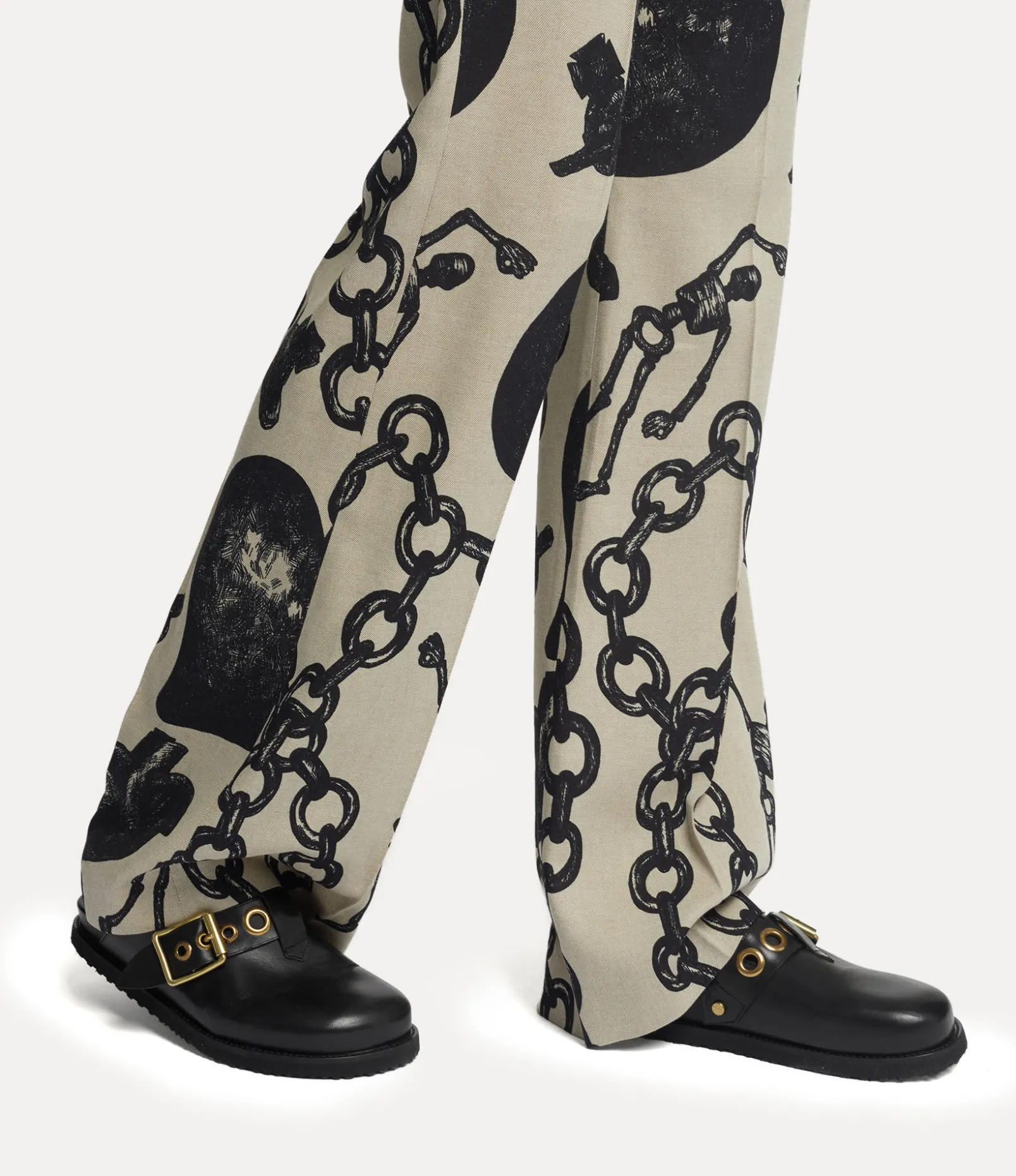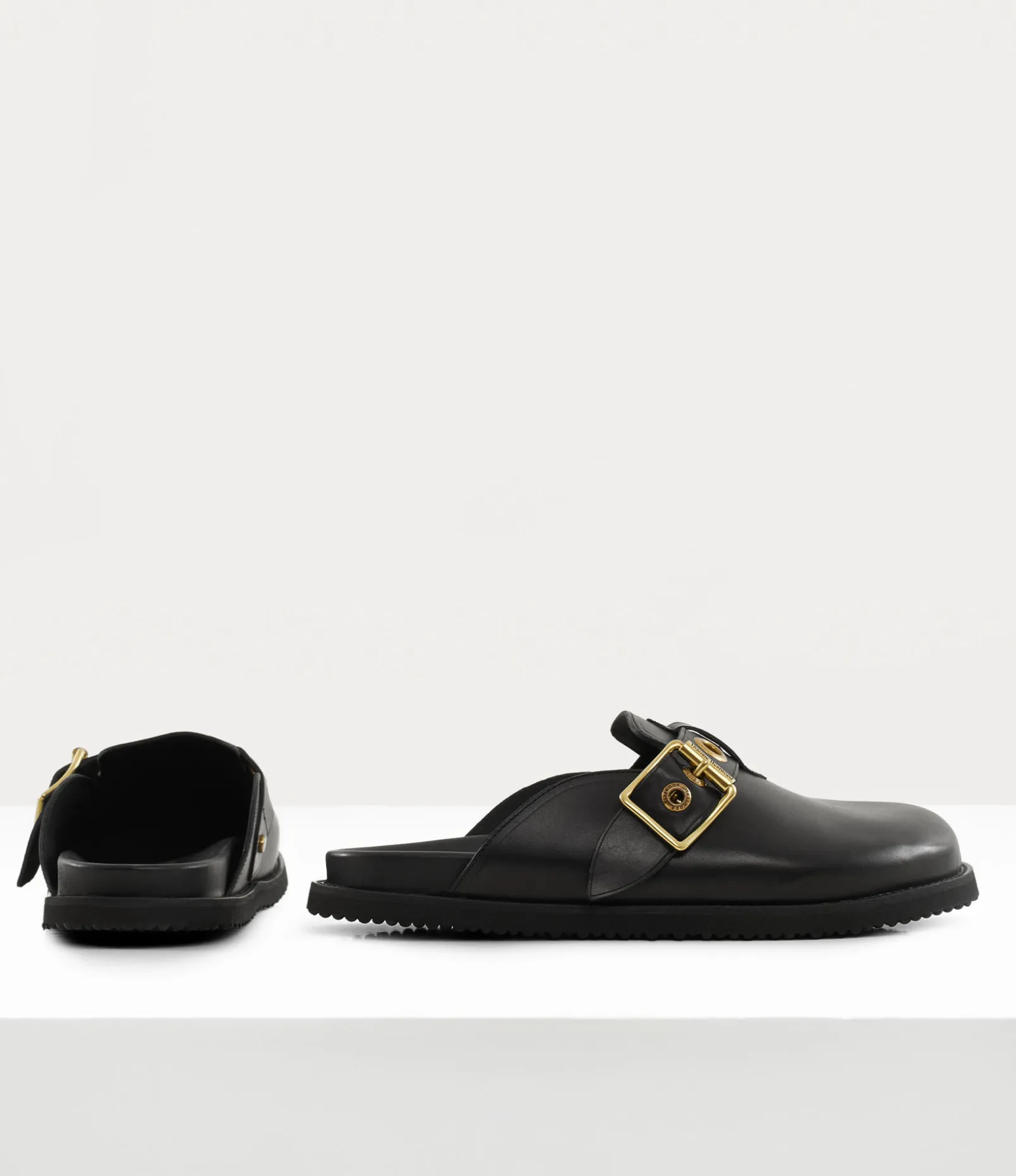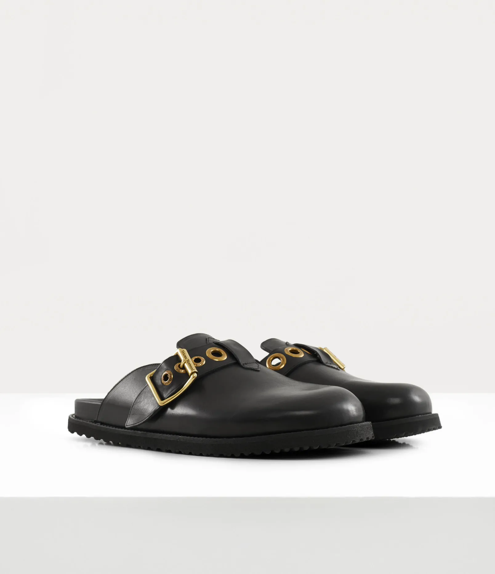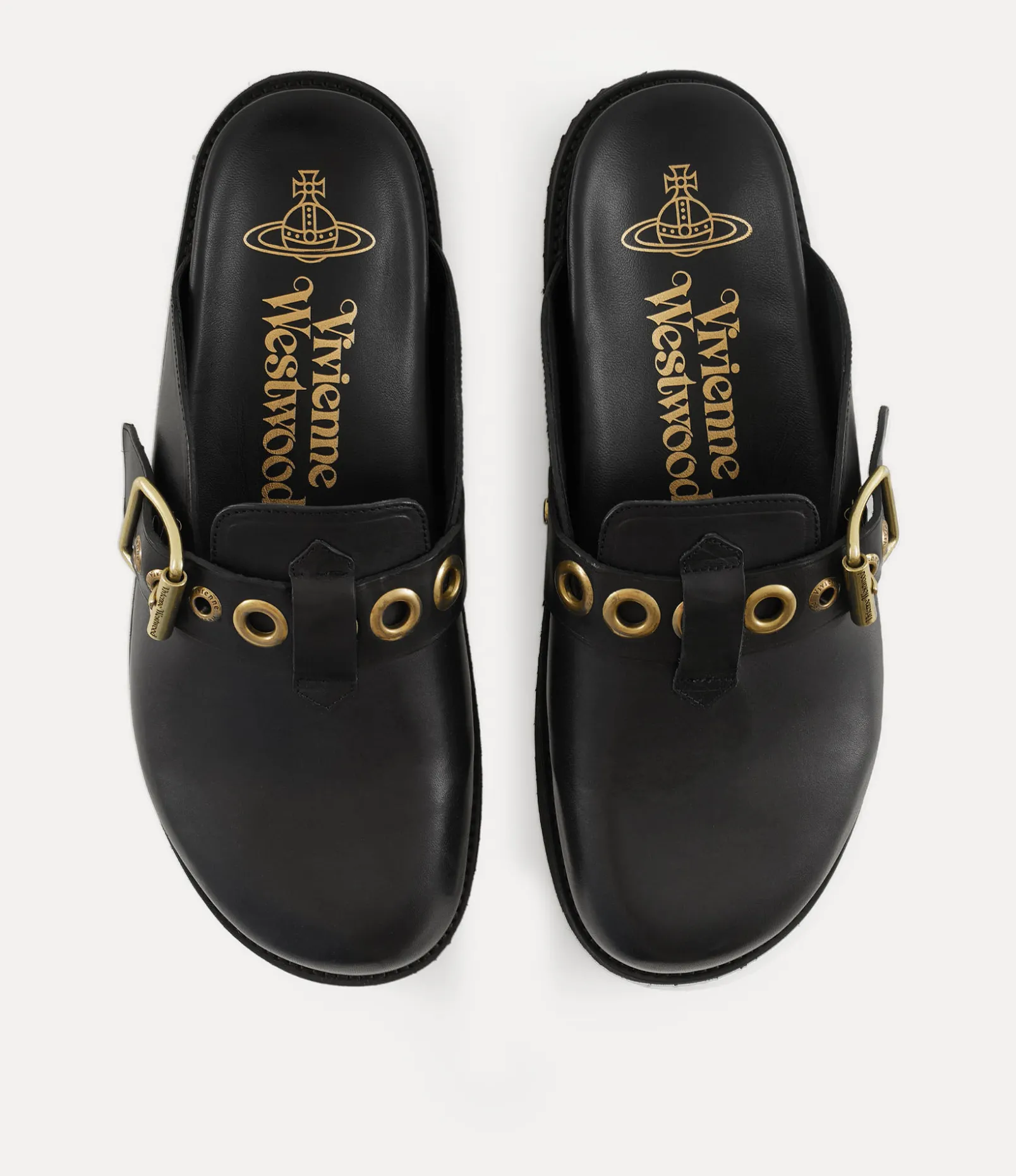The New Oz clogs, crafted from smooth leather, showcases bold metal eyelets with antique brass plating, echoing the house’s iconic Alex belt from the Vivienne Westwood archives. Designed for optimal comfort, the clogs feature an anatomically contoured footbed, complemented by a buckle fastening with our signature lettering and a rounded toe.