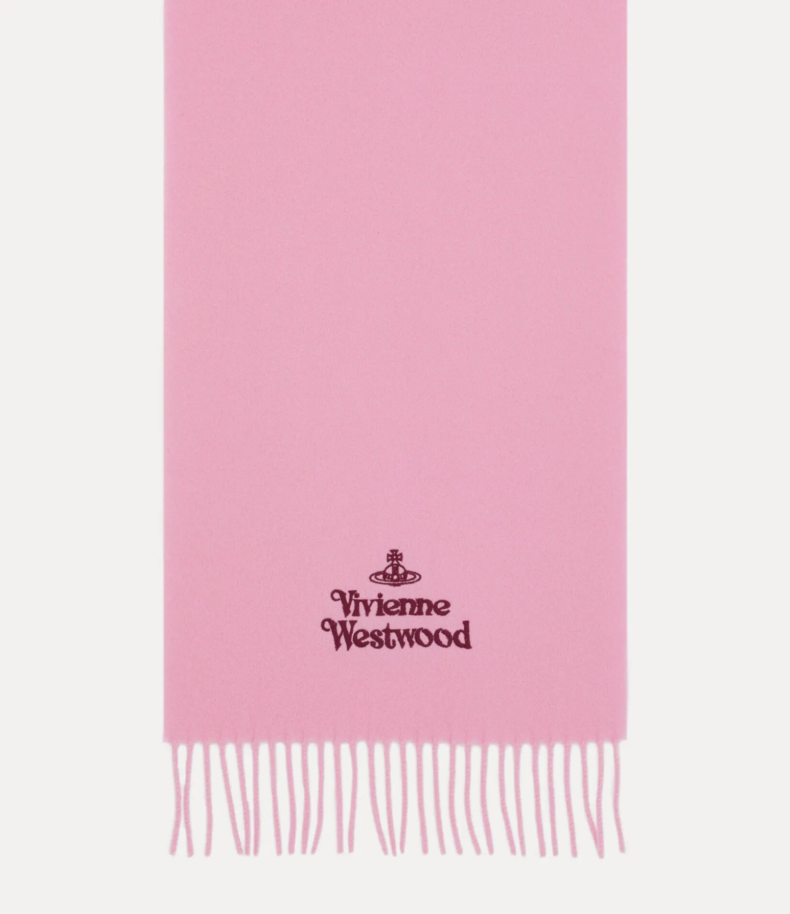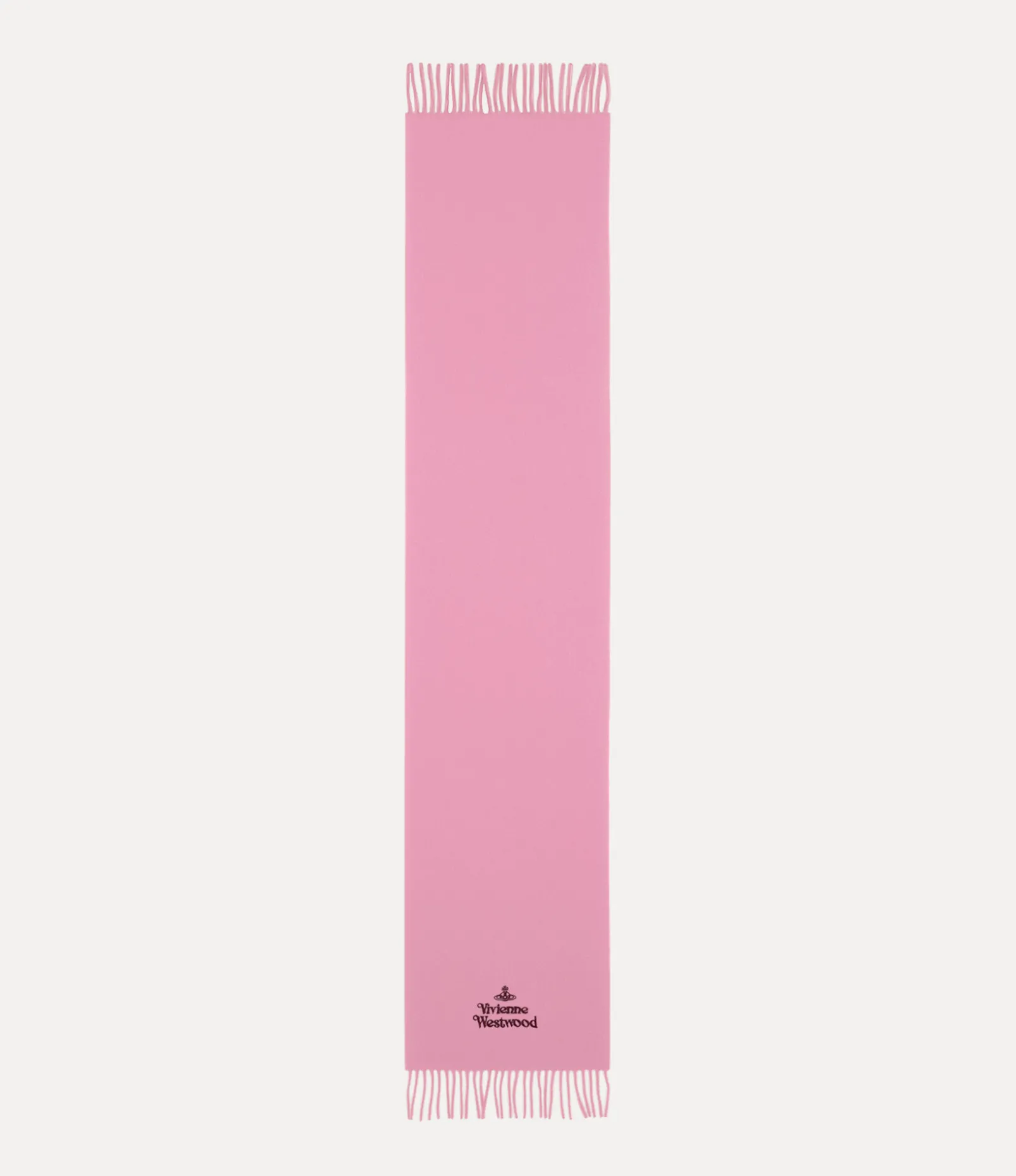 Our Embroidered scarf, crafted in Italy from wool, features long fringed edges and showcases the house’s signature lettering and orb motif embroidered in contrasting thread, embodying Vivienne’s commitment to launching tradition into the future.