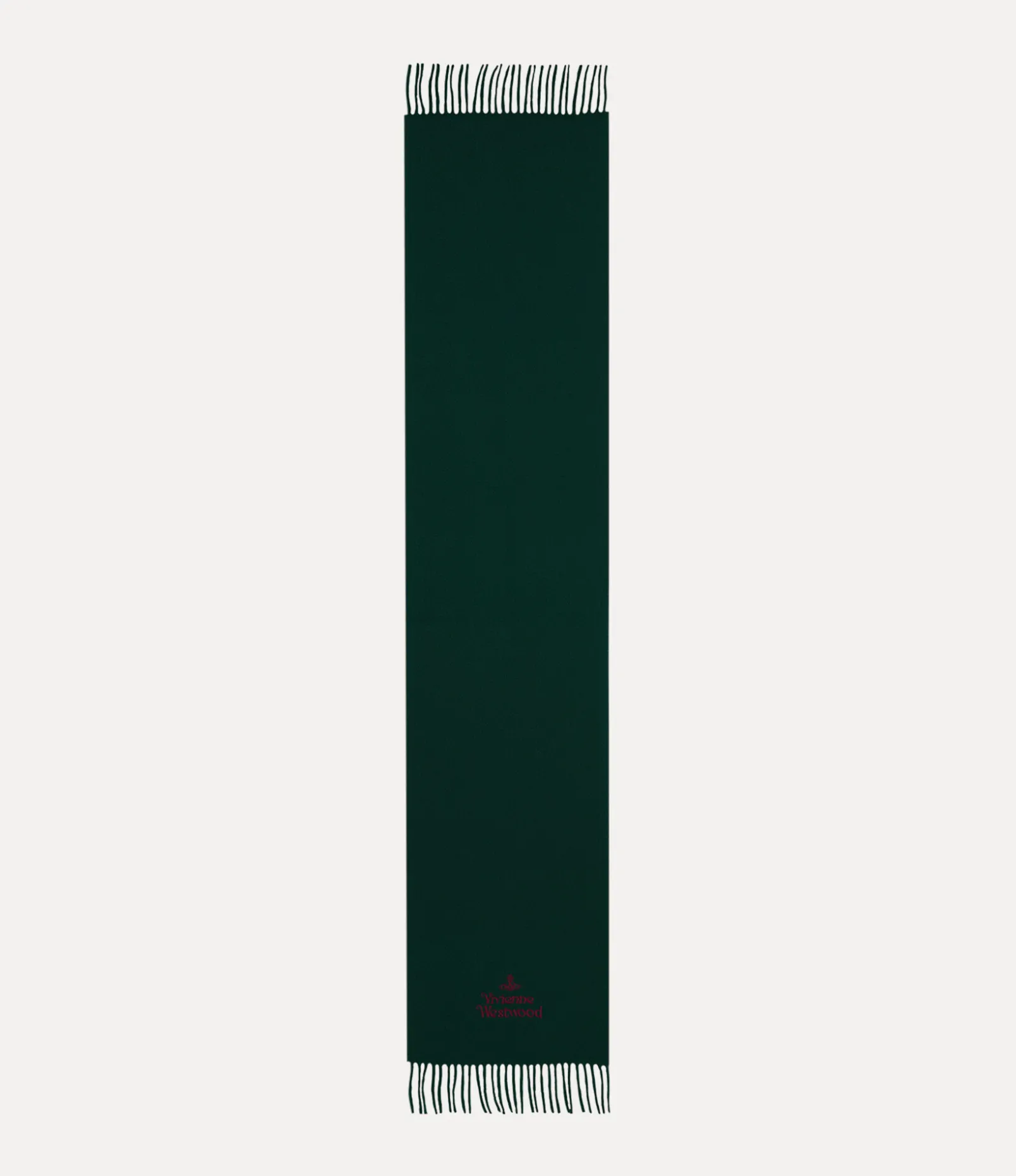 Our Embroidered scarf, crafted in Italy from wool, features long fringed edges and showcases the house’s signature lettering and orb motif embroidered in contrasting thread, embodying Vivienne’s commitment to launching tradition into the future.