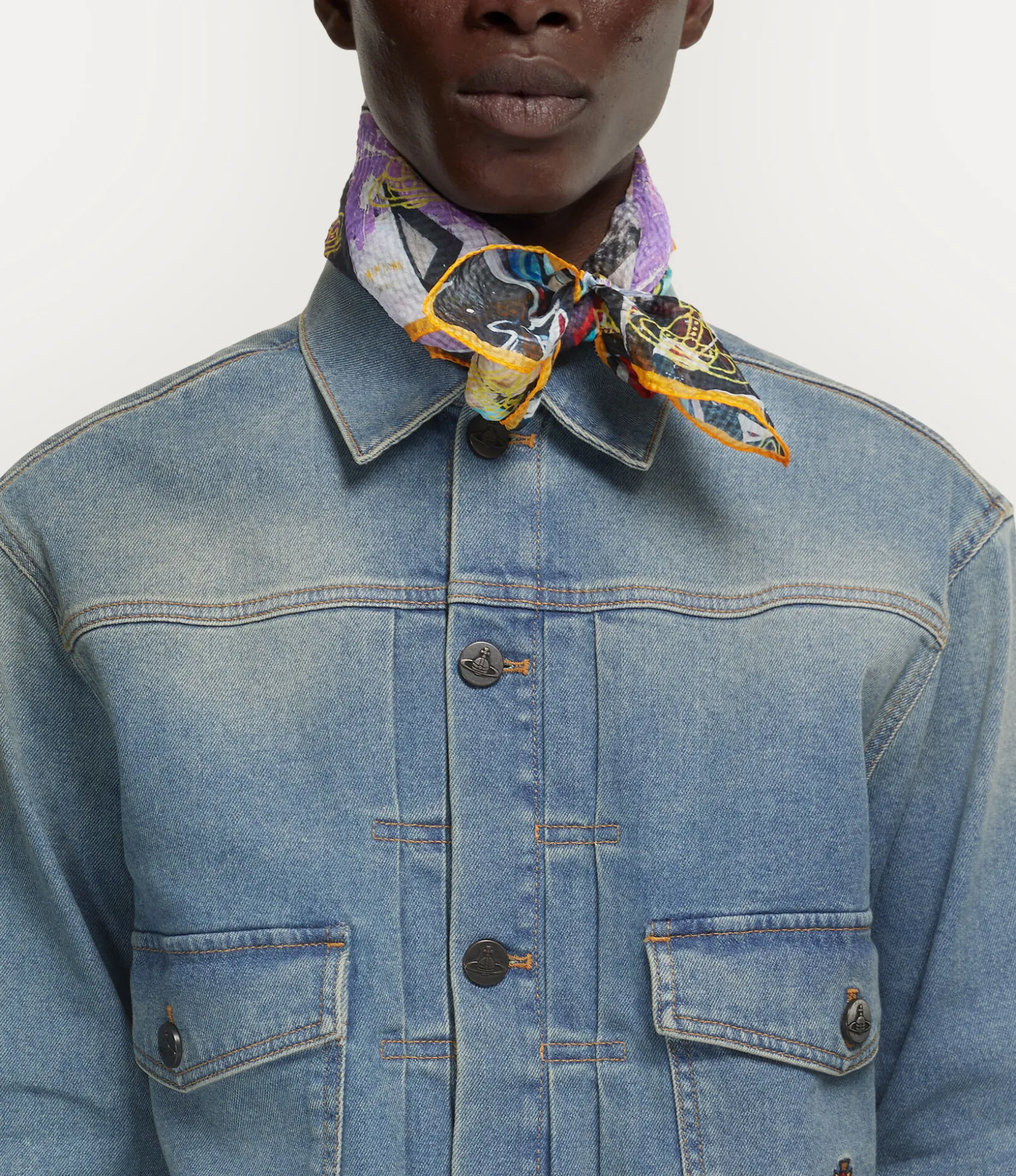 The archive ‘Graffiti’ motif, first showcased in the Andreas Kronthaler for Vivienne Westwood Autumn-Winter 2020-21 Paris show, reflects our house’s iconic punk aesthetic. This season, we have revisited the motif on our bandana, complete with an enlarged screen print of our orb silhouette – synonymous with Vivienne’s vision of launching tradition into the future.