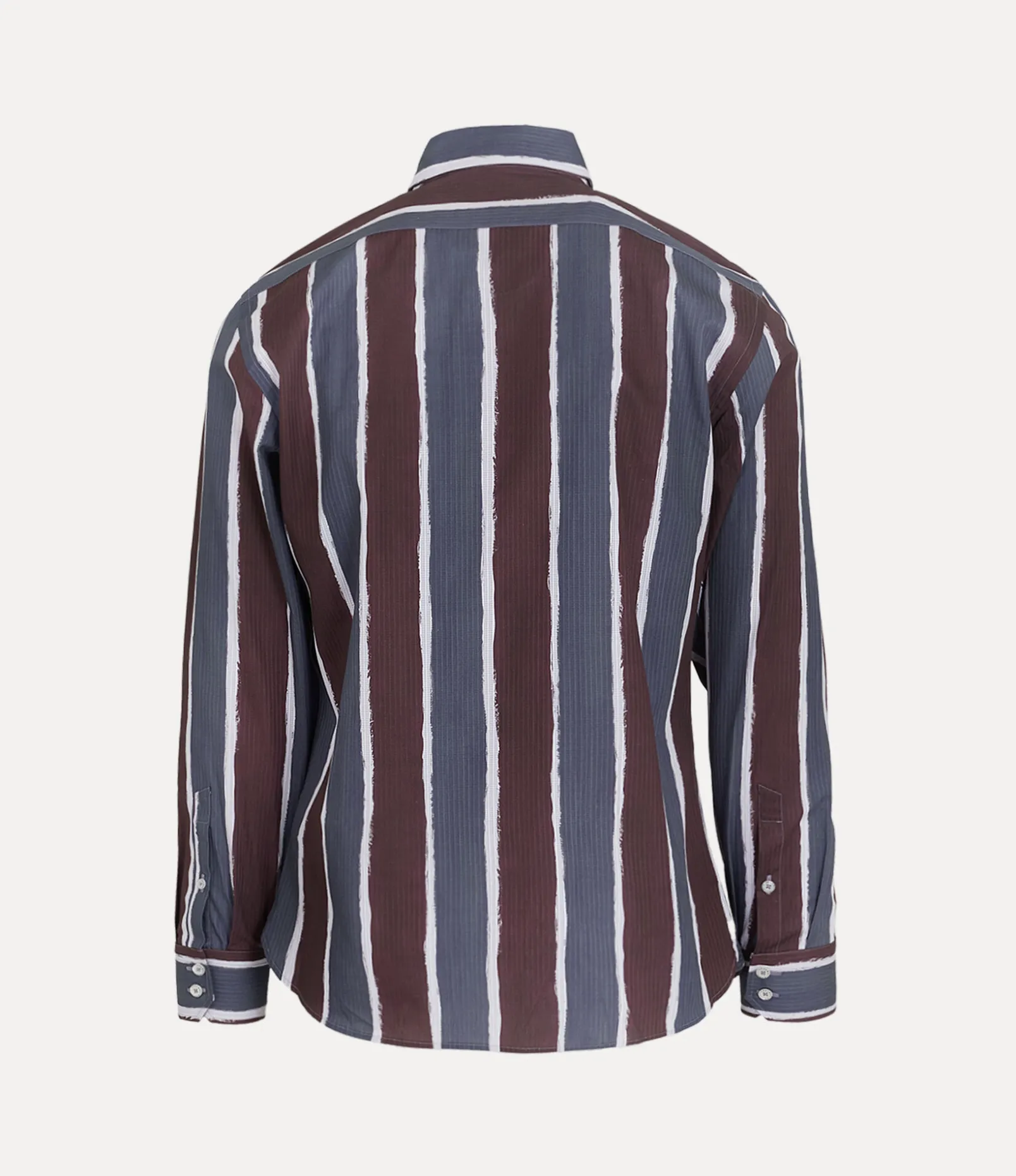 This season’s Ghost shirt receives an all-over variegated stripe pattern, taken from a Vivienne Westwood men’s jacket from the Autumn-Winter 1998 ‘Dressed To Scale’ collection. The piece is embroidered with a multicoloured orb on the left-hand side of the chest – synonymous with Vivienne’s vision of taking tradition into the future.