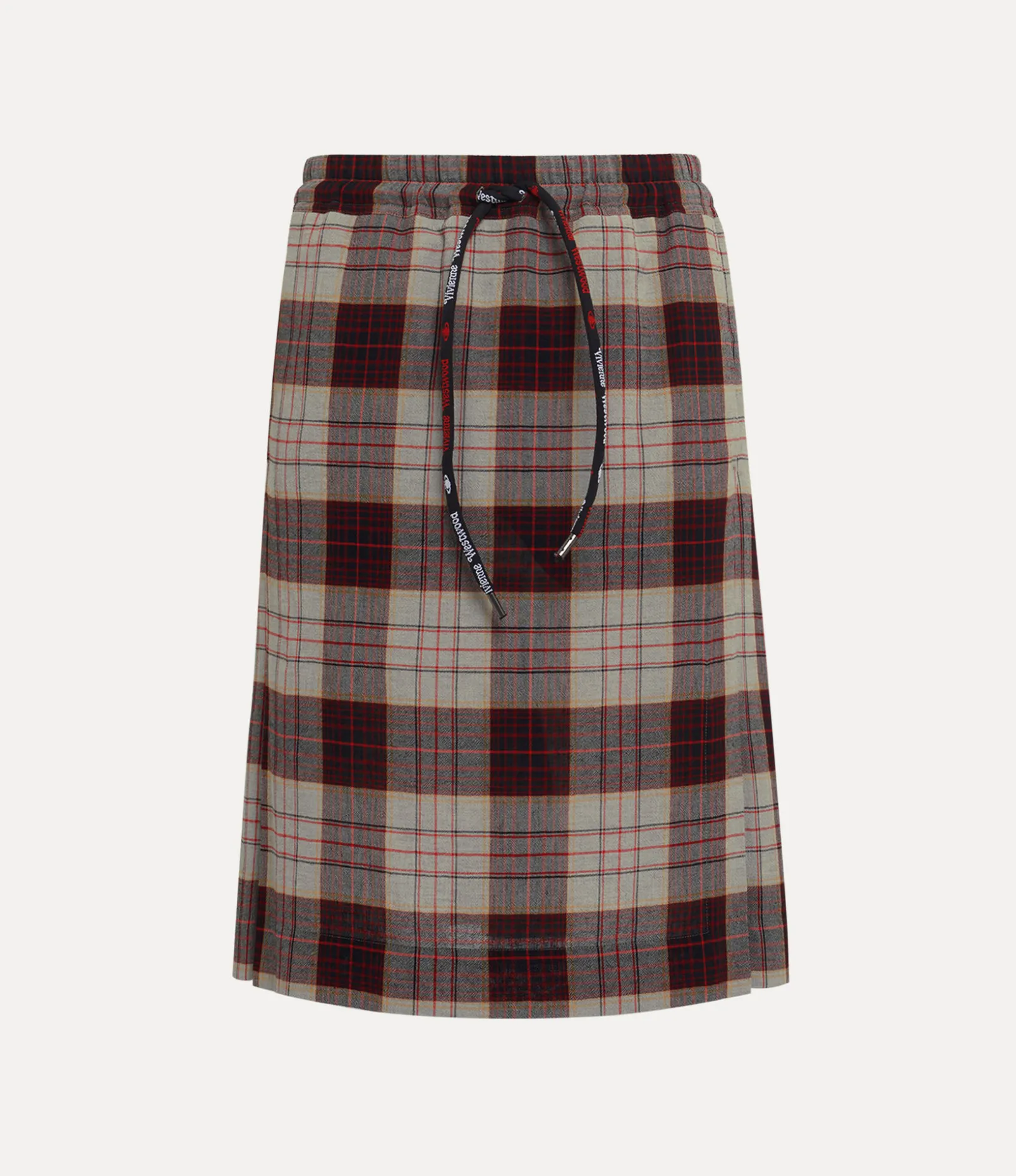 Our signature kilt has been reimagined in a muted tartan pattern this season, first appearing in the Vivienne Westwood 1993 Anglomania collection. As part of our new collection, the piece features our updated letter branding motif on the mother-of-pearl button fastenings, complete with a shoelace closure at the waistband.