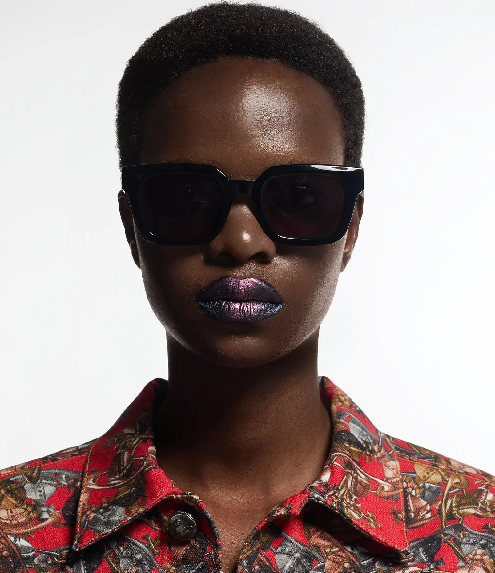 Our Cary sunglasses, with a glossy acetate construction, feature a square-shaped frame inspired by vintage Hollywood starlets. The temples are embellished with a gold-tone version of our house’s orb motif, a symbol created by Vivienne Westwood to represent launching tradition into the future.