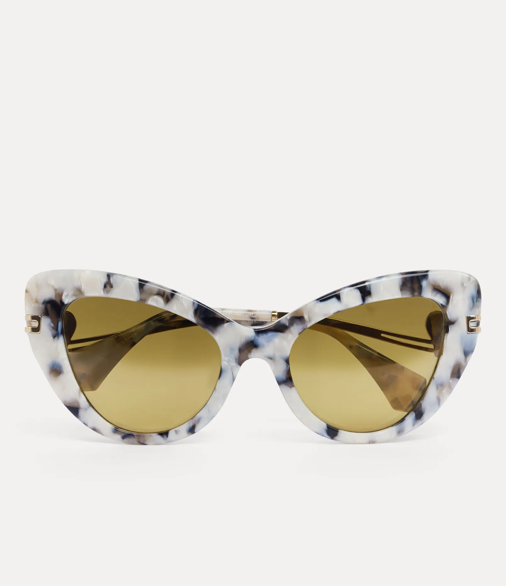 Our Liza sunglasses feature a marble-effect design with a retro, cat-eye frame, reminiscent of glamorous Studio 54 icons. The asymmetric heart motif encapsulating the orb at each temple takes inspiration from Victorian keepsake jewellery and has been used throughout our house’s history to evoke an affection for both humanity and the planet.