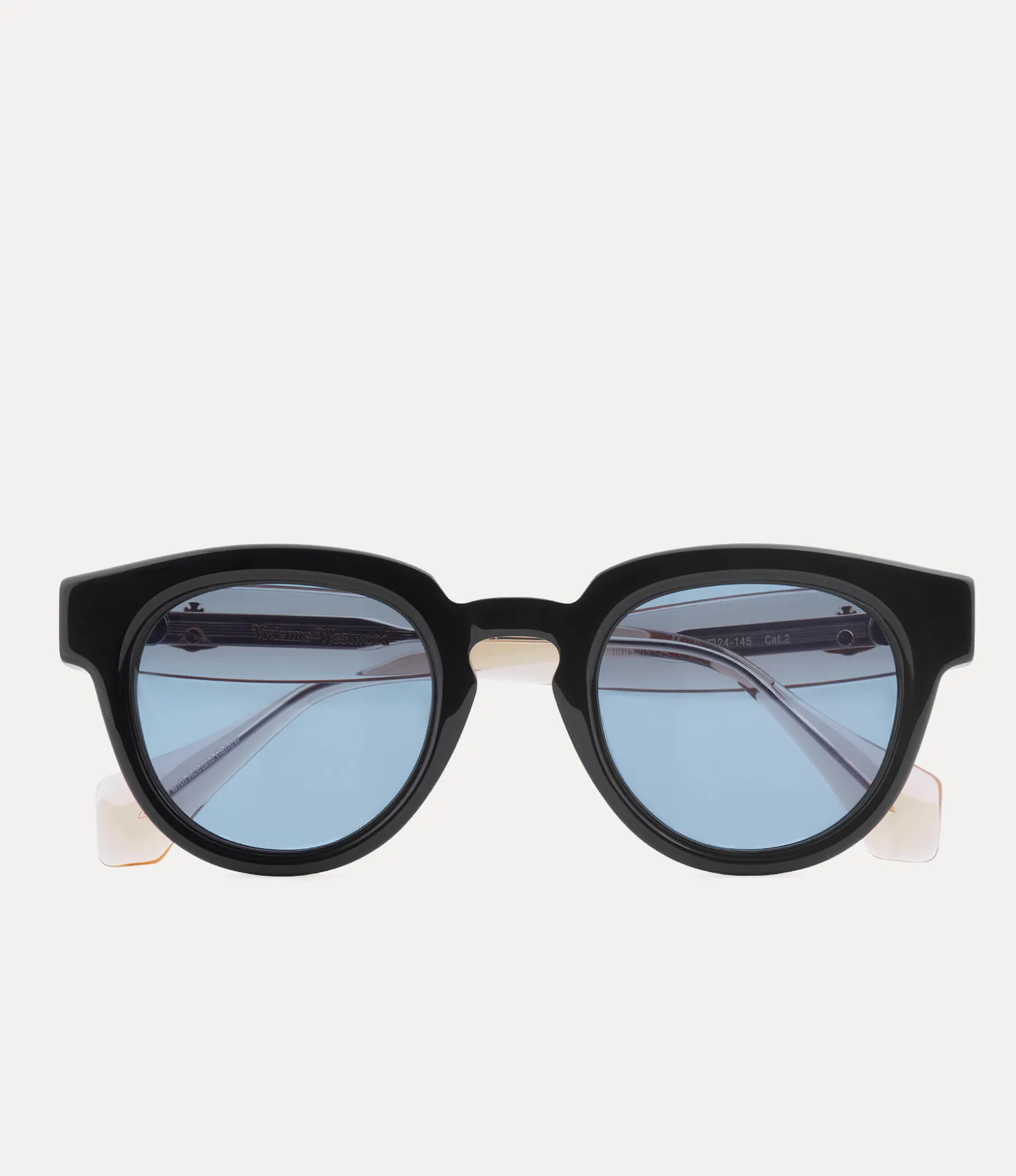 Our Miller sunglasses in black acetate are named after American playwright Arthur Miller and showcase a round-shaped frame reminiscent of the silhouettes from the 50s and 60s. With contrasting arms, the temples feature a gold-tone version of our house’s orb motif, a symbol created by Vivienne Westwood to resemble the British crown jewels.