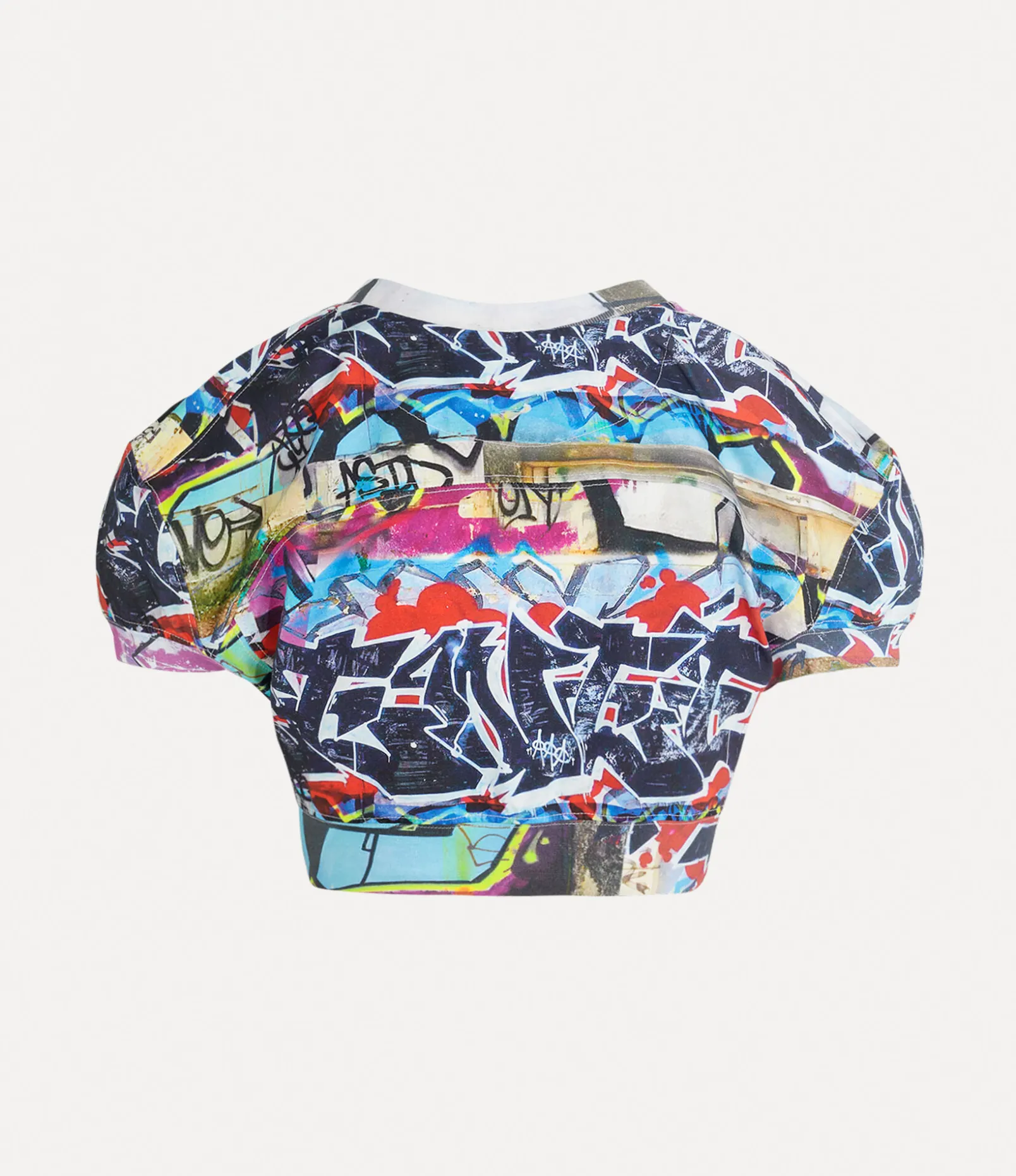 Our Cropped Football t-shirt takes inspiration from football culture and receives voluminous shoulders, complete with a cropped silhouette with ribbed finishes. The design features our archival Graffiti artwork, taken from the Vivienne Westwood Autumn-Winter 1981 Pirates collection.