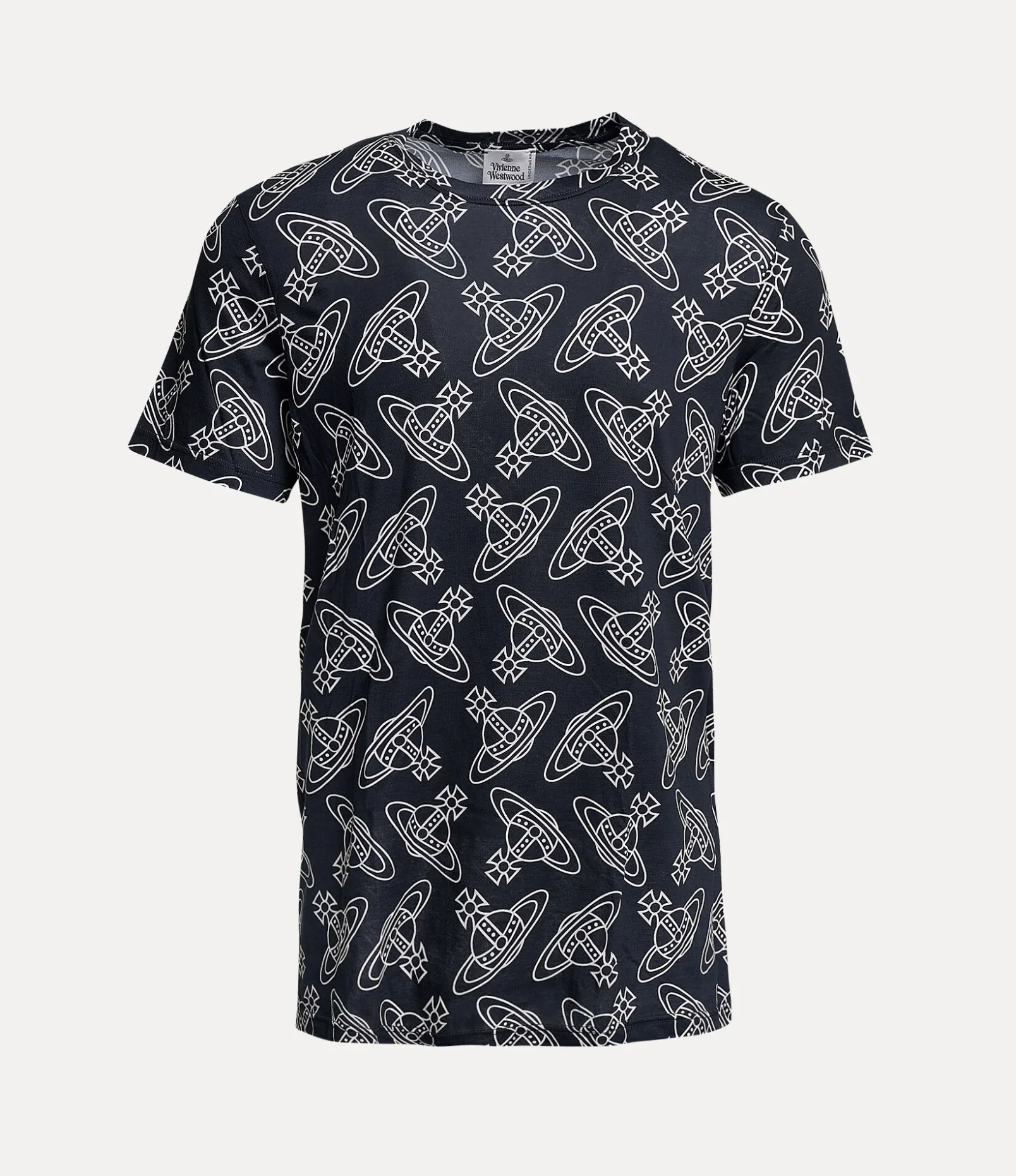 The Orb All-over undershirt in cotton jersey with a round neckline features an all-over orb pattern, a motif that Vivienne Westwood first presented in the Harris Tweed Autumn-Winter 1987-88 show.