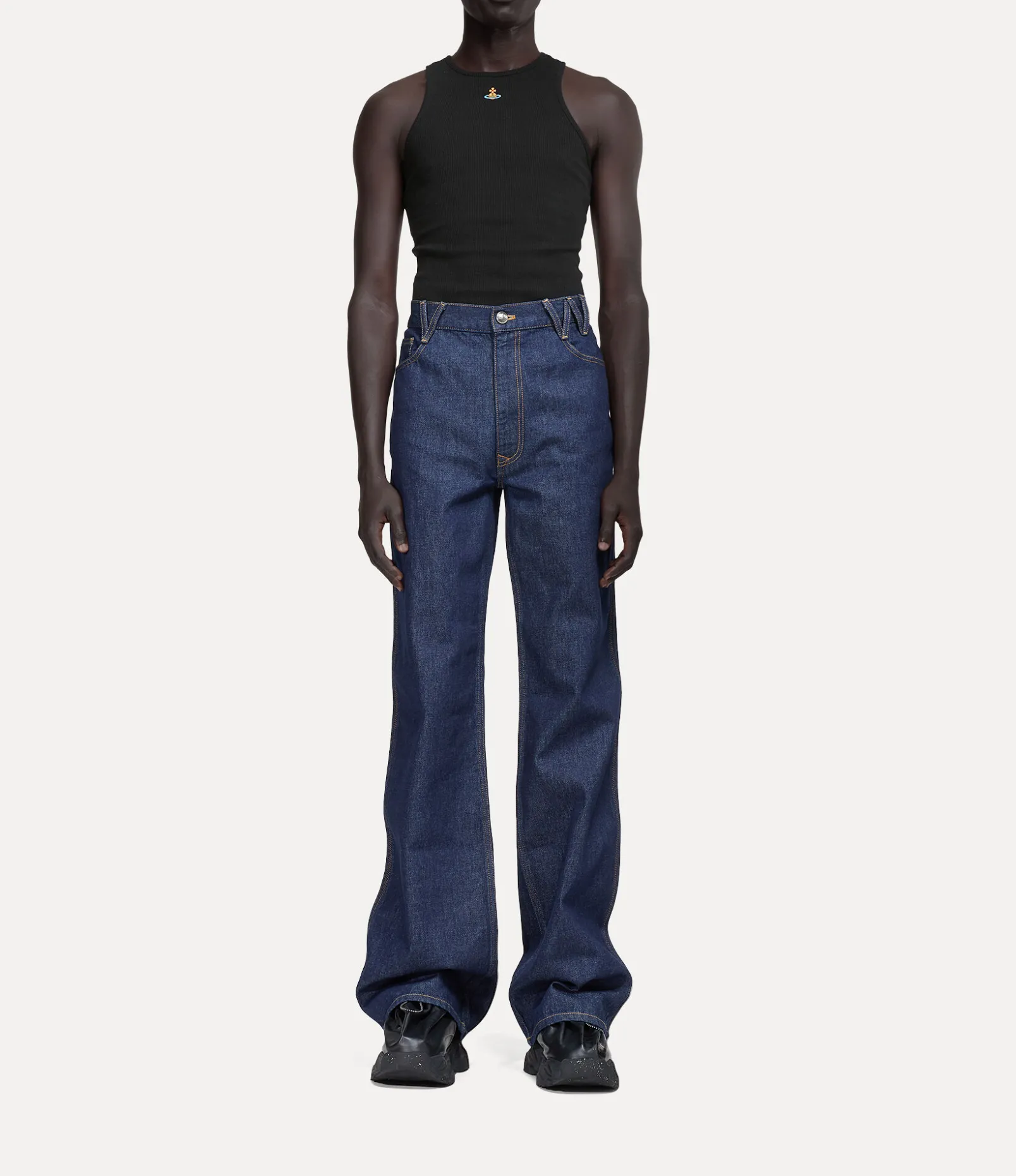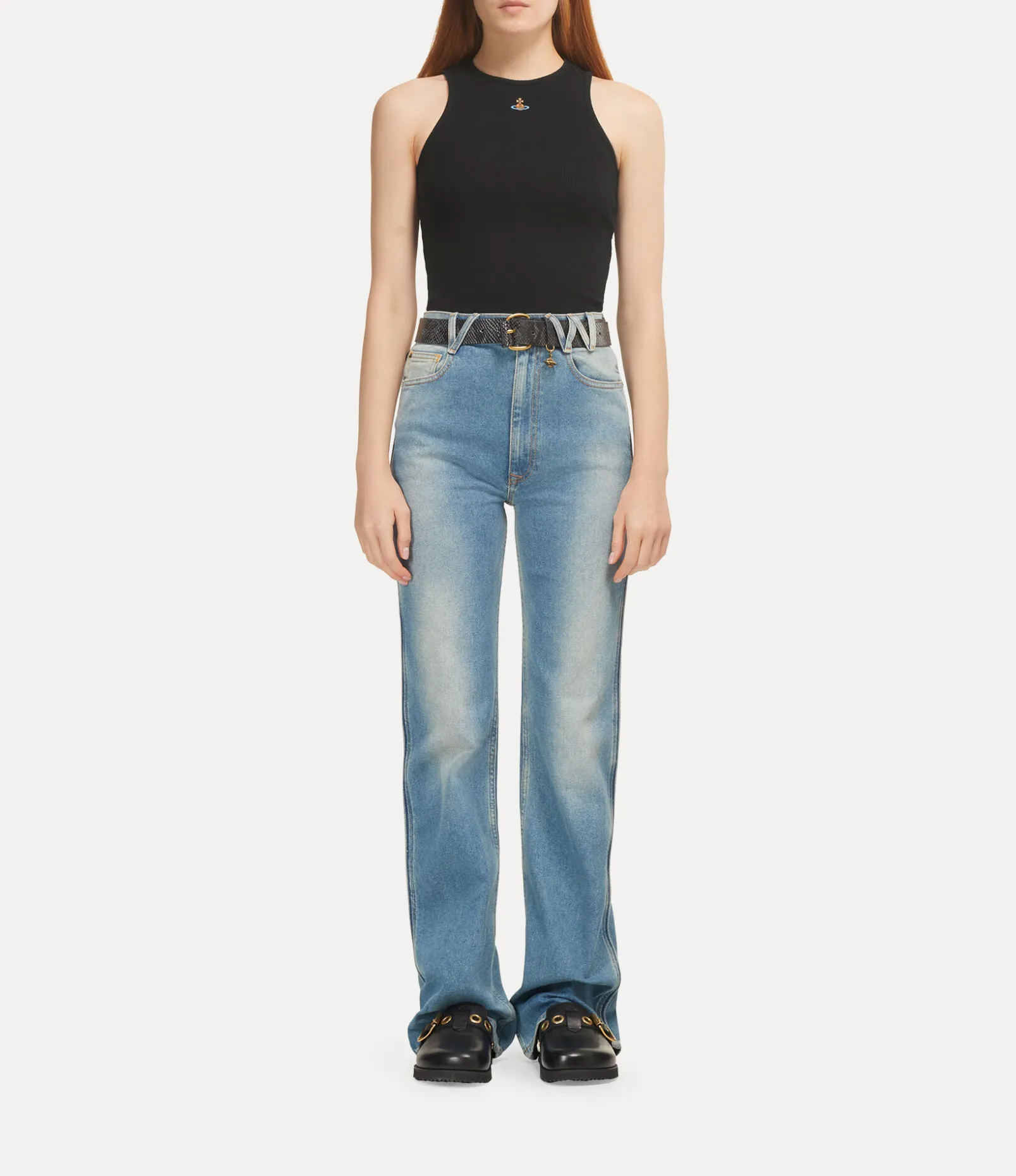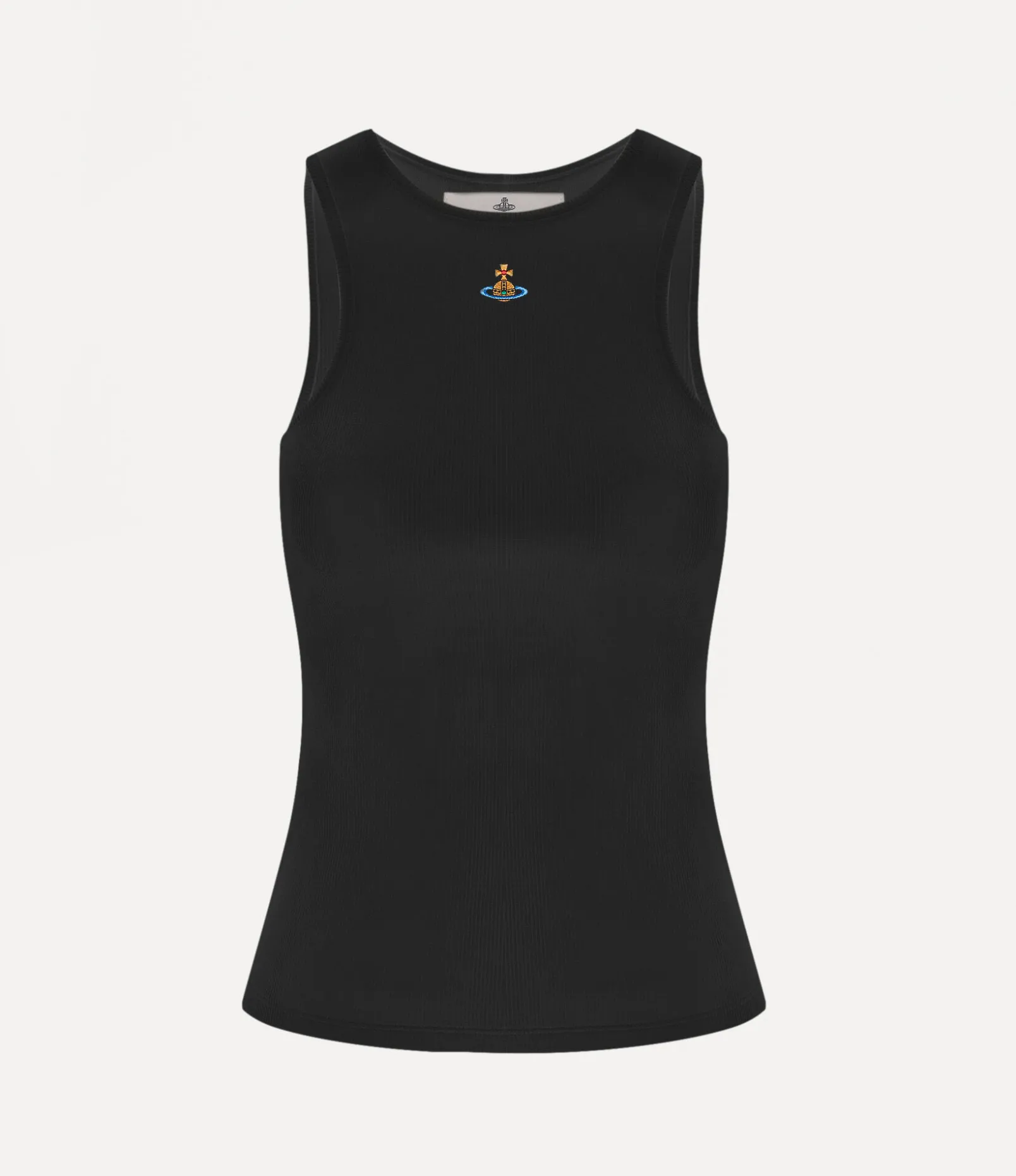 Our 90s vest features a cotton-blend silhouette, complete with an all-over ribbed finish. As part of our new range, the piece receives a multicoloured orb embroidery under the scoop neckline, synonymous with Vivienne’s vision of launching tradition into the future.