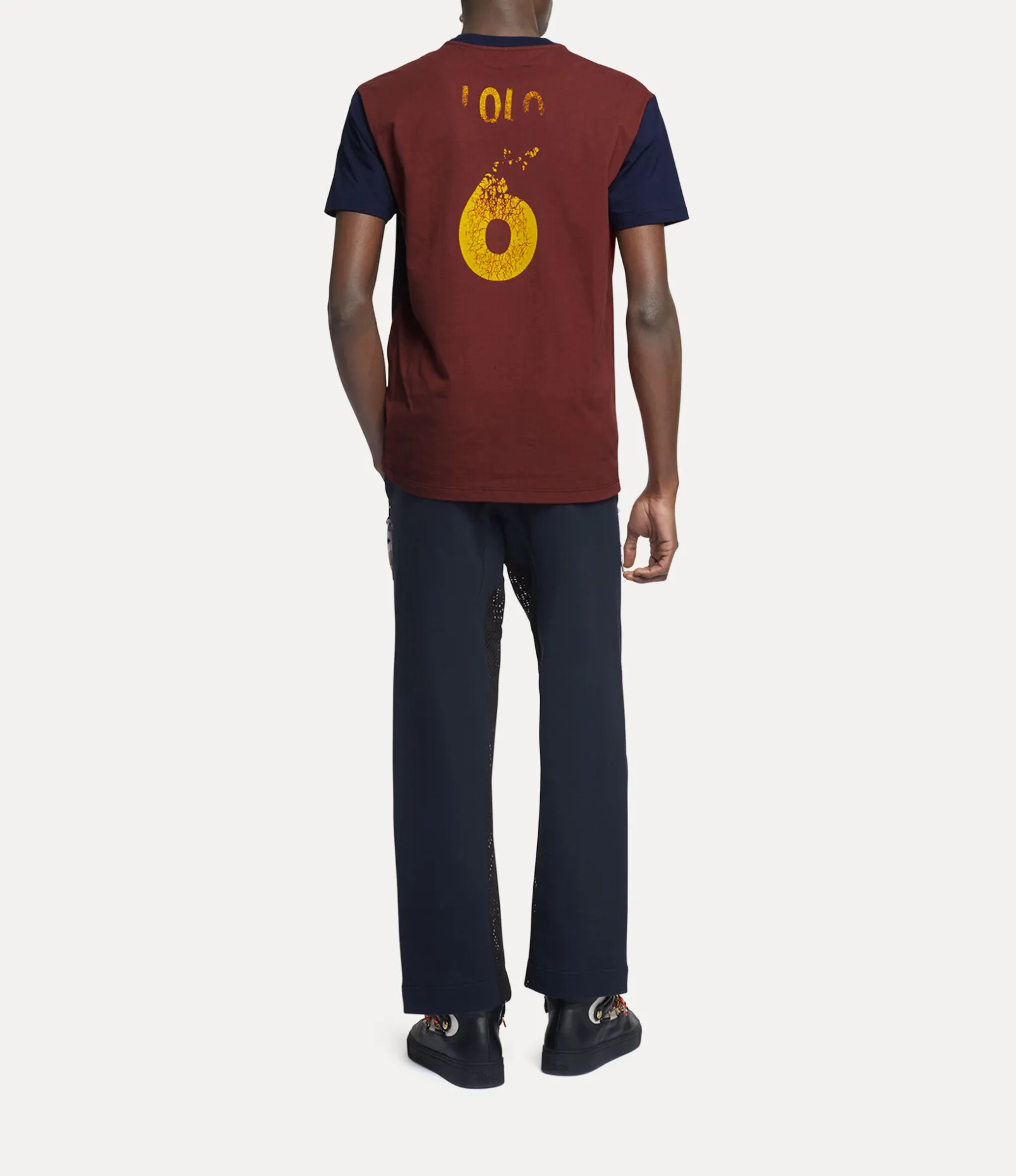 Our Classic t-shirt returns this season with an asymmetric colour-block design, complete with a printed orb on the chest – synonymous with Vivienne’s vision of launching tradition into the future. The lightweight silhouette takes inspiration from traditional football t-shirts and adopts a faded print at back, detailed with ‘1971-2071’ at the front.