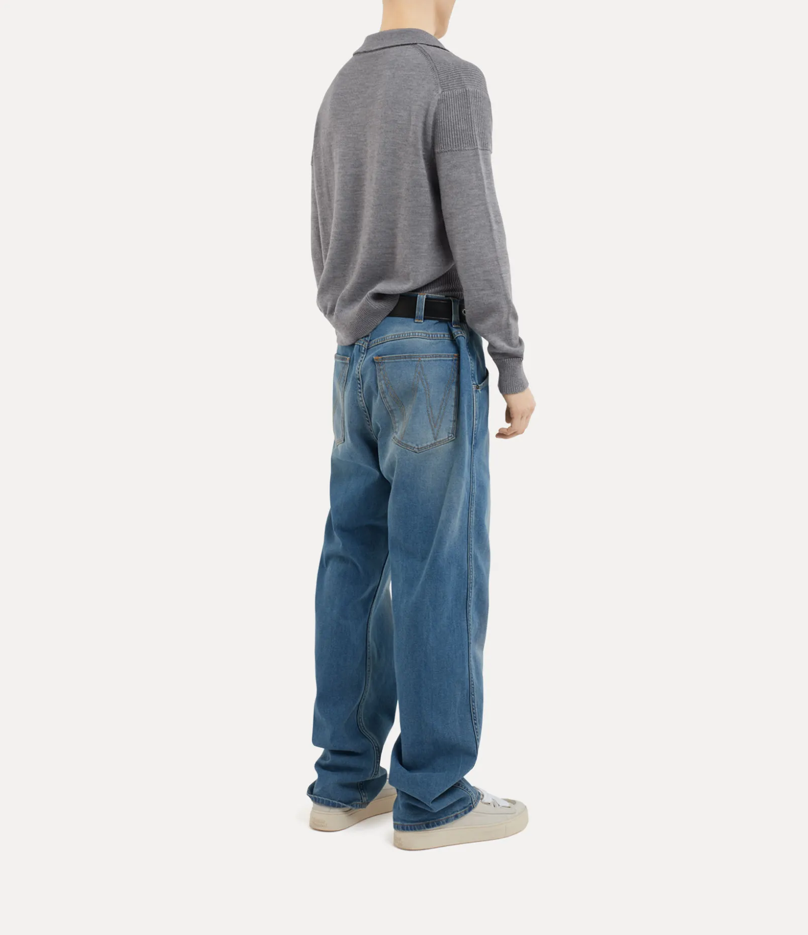 Our Football polo takes inspiration from classic football uniforms and receives voluminous shoulders, complete with a V-neckline and ribbed finishings. The piece adopts our multicoloured orb embroidery on the left-hand side of the chest – synonymous with Vivienne’s vision of launching tradition into the future.