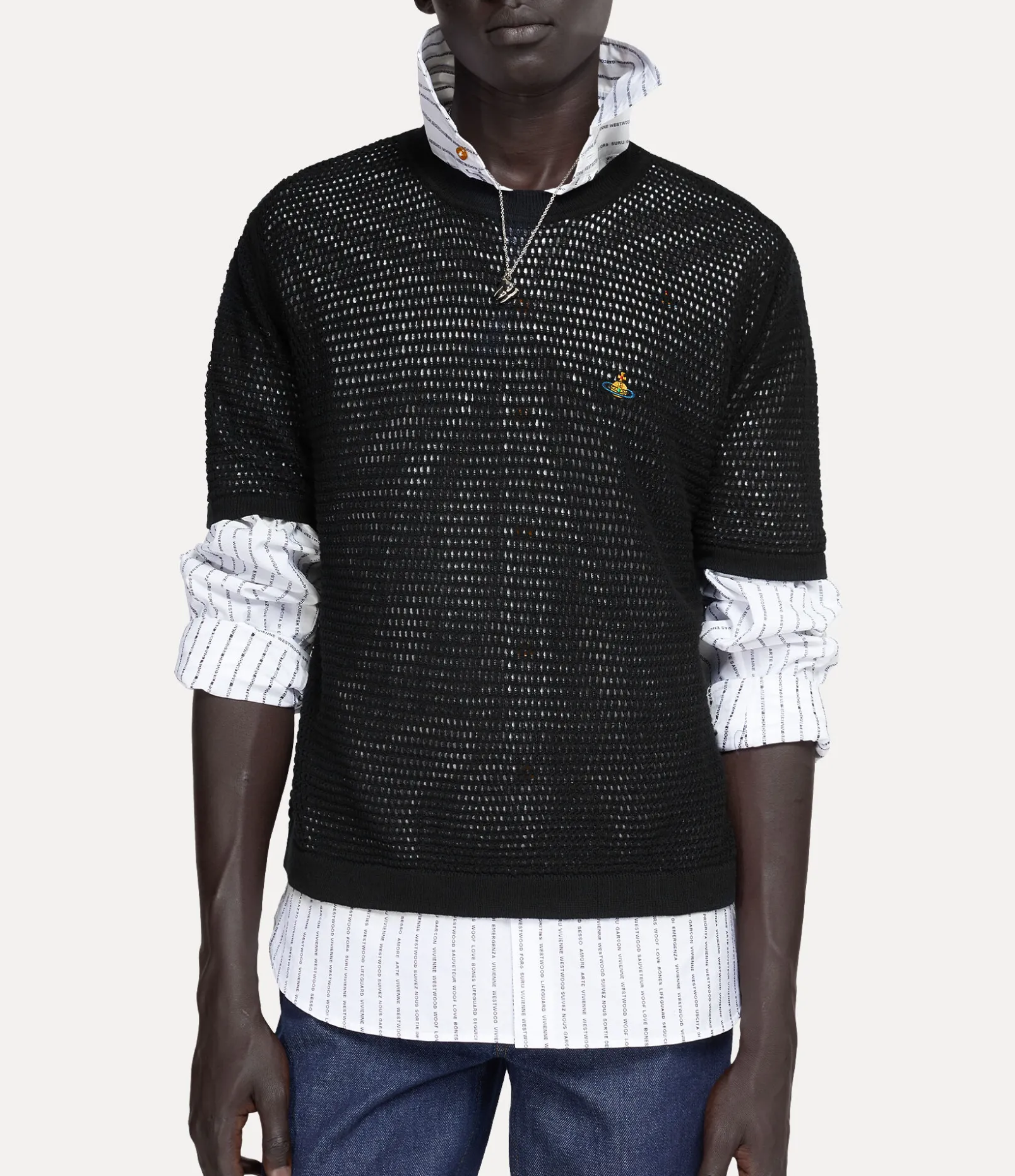 The Julian t-shirt is made from a blend of organic certified cotton cashmere and showcases an intricate lace stitching all-over. Complete with a ribbed round neckline and roomy short sleeves, the t-shirt features our orb motif embroidered on the left-hand side of the chest – a symbol developed by Vivienne Westwood to symbolise taking tradition into the future.