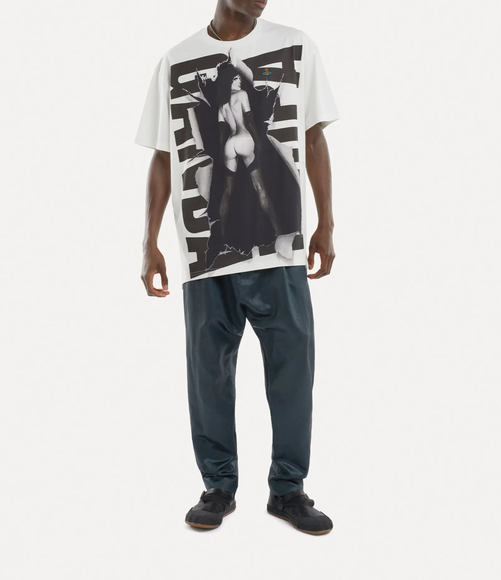 Vivienne Westwood’s incorporation of propaganda artwork can be linked back to the late 1970s and early 1980s during her involvement with the punk movement. With a crew neckline, the Propaganda Oversized t-shirt in cotton displays a screen print of the model and actress Eva Herzigová on the front panel, complete with an embroidered orb motif on the left hand-side of the chest.
