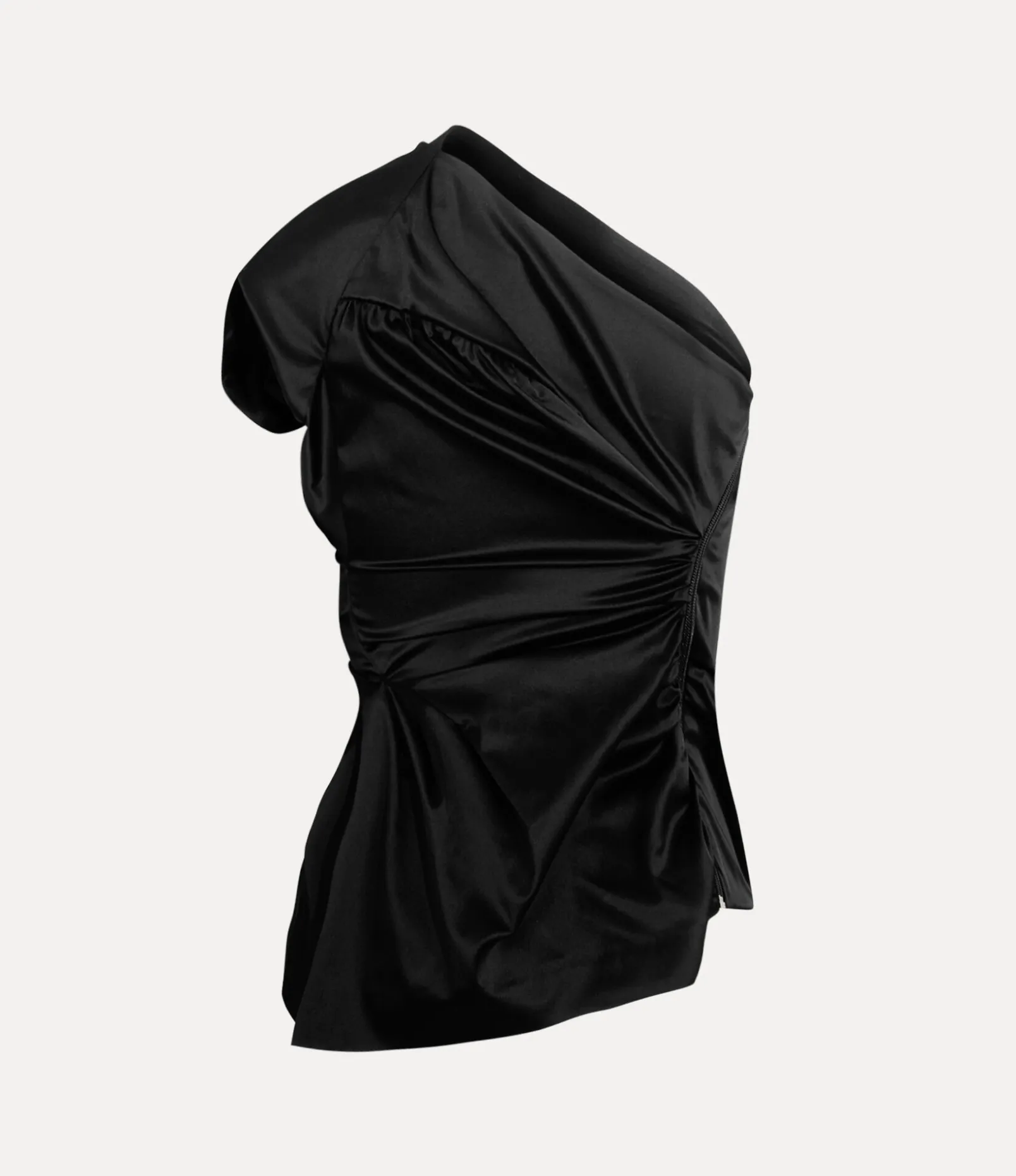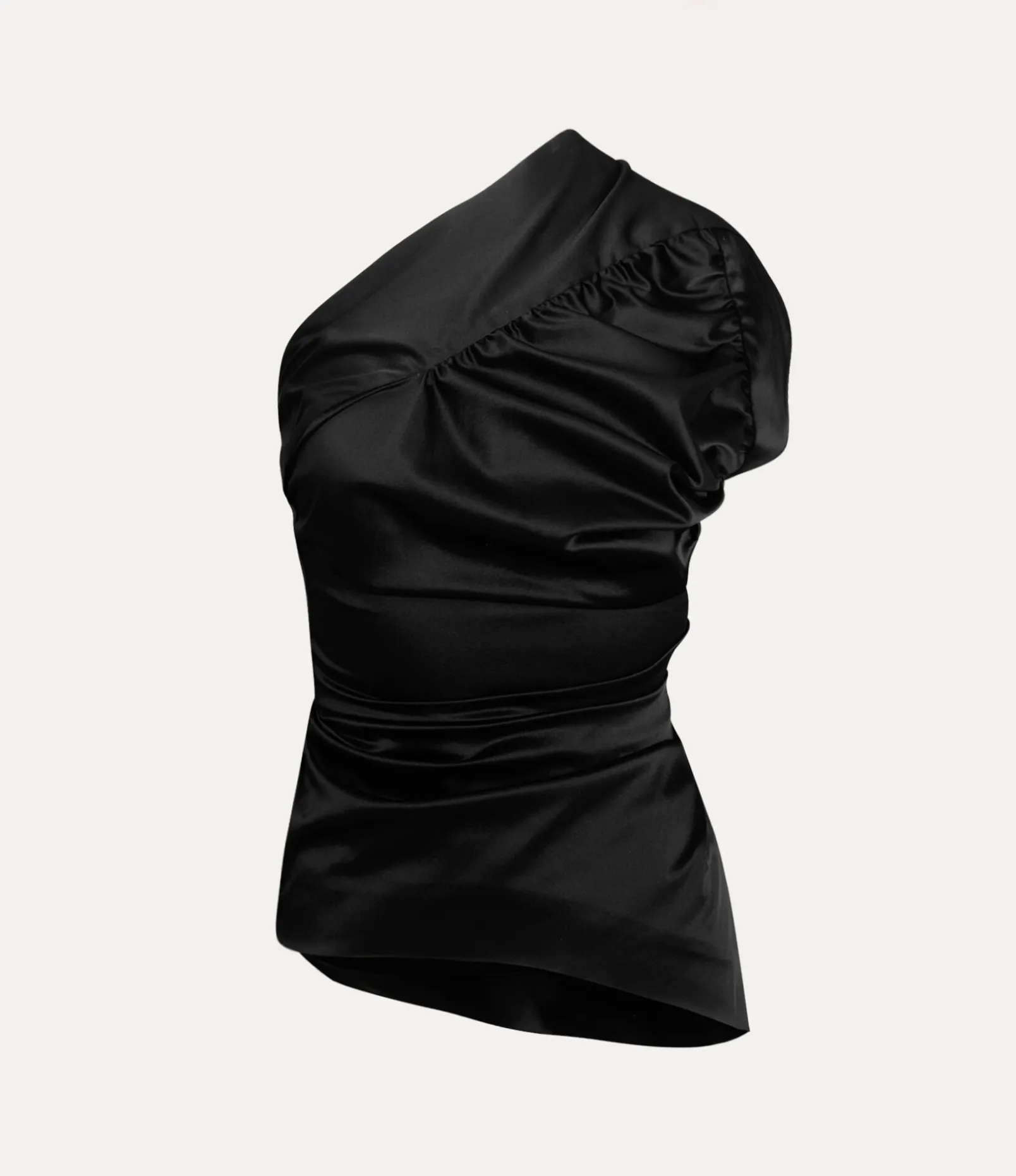 This season, our Andalouse top features a folded neckline that falls into a draped hemline, complete in a dyed stretch satin finish. The piece receives intricate darting details and gathering at the bodice, paying tribute to the renowned tailoring techniques of the house.