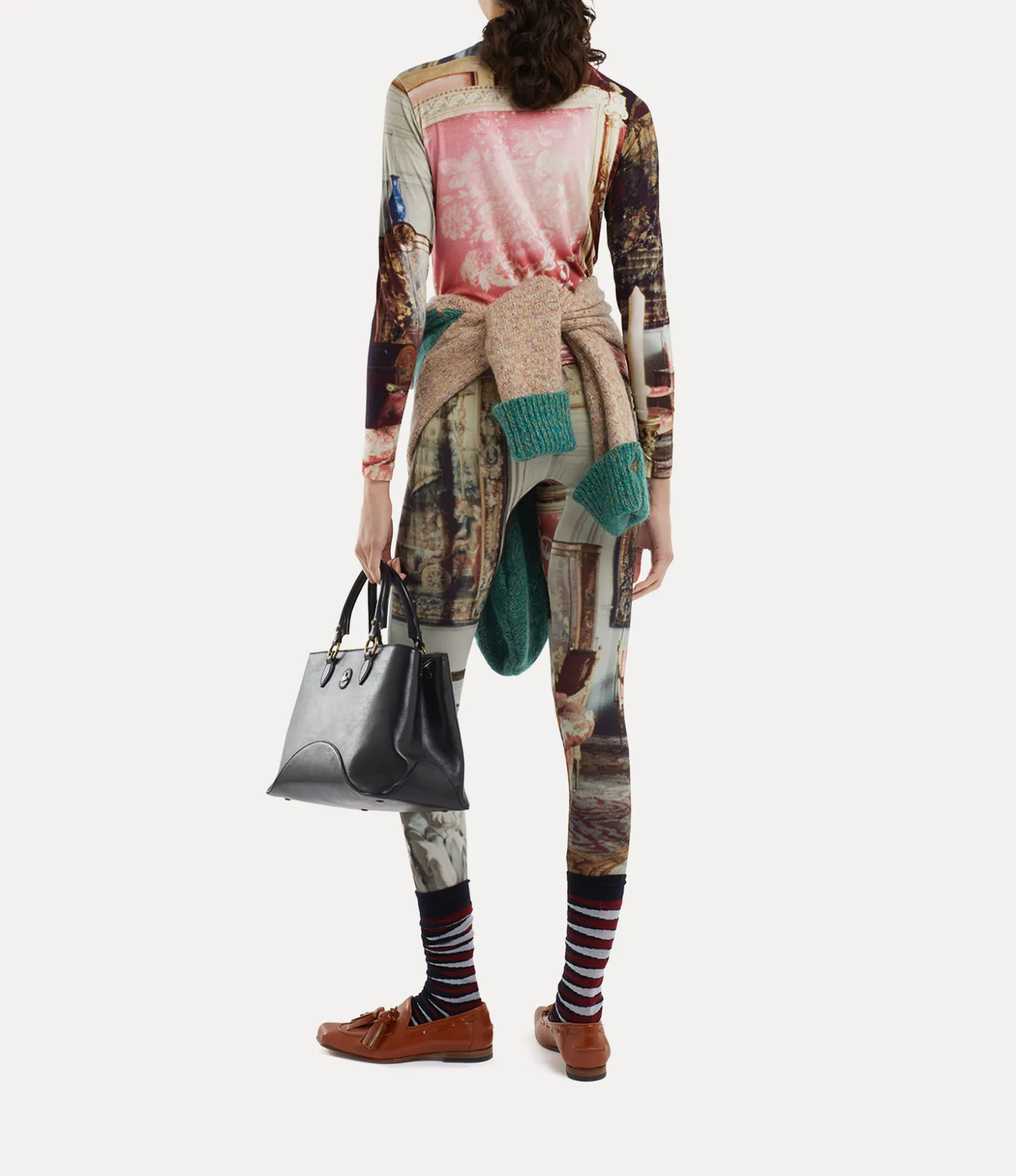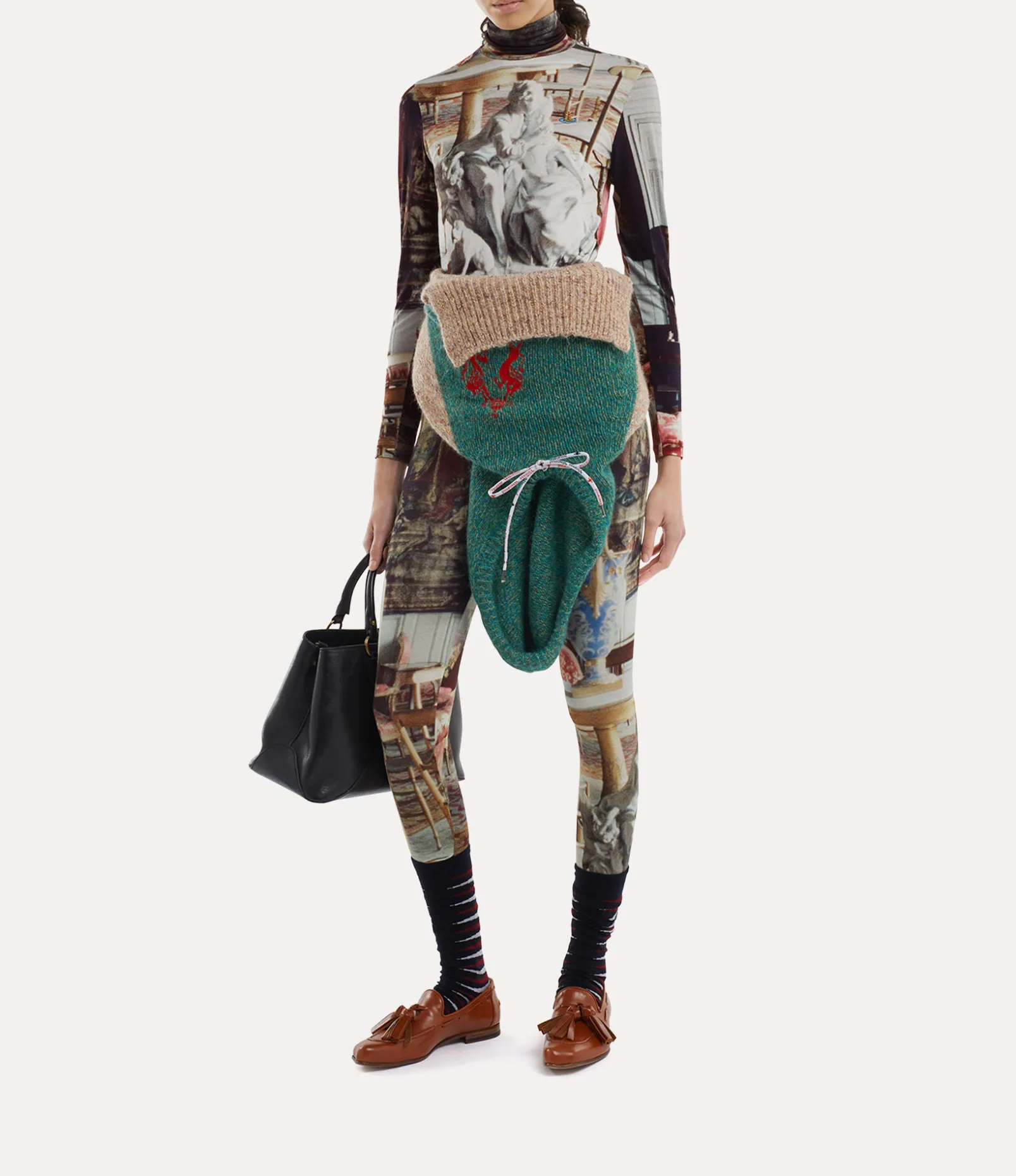 Our long sleeve turtle neck revives our archive ‘Salon’ artwork, initially presented in the Vivienne Westwood 1992 ‘Salon’ collection. The motif captures the opulent ambience of an 18th-century salon, reminiscent of the grandeur of the ‘Empire Style’ trend – where classical shapes merge with the extravagance of Imperial Rome.
