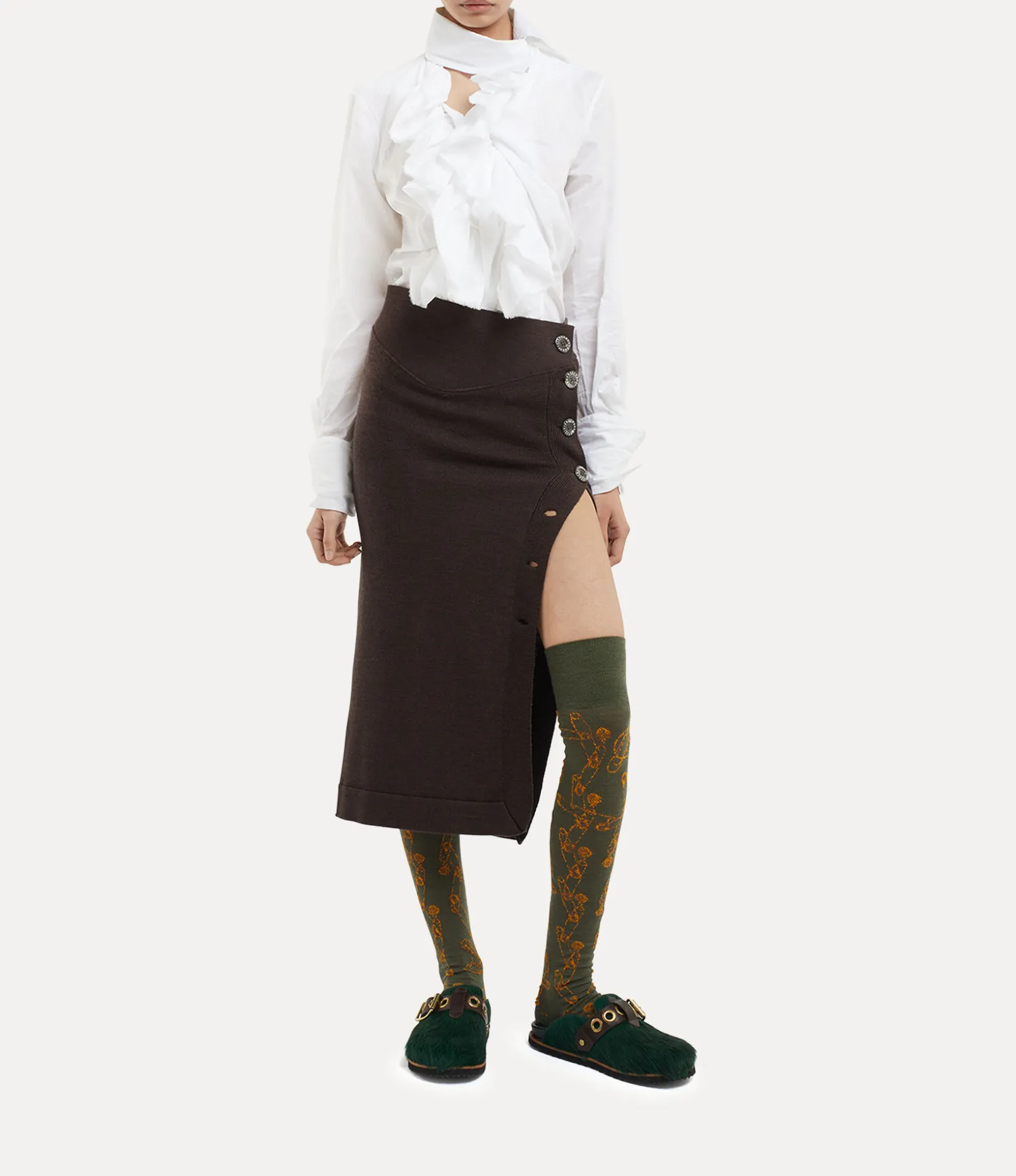 Our Wizard Frill shirt features elements of the house’s signature ‘Ruffle’ tailoring system, as seen in the Autumn-Winter 2023 collection, complete with intricate ruffle accents on the twisted collar. As part of our new range, the piece receives our updated mother-of-pearl button fastenings, finished with the classic monogram embroidery.