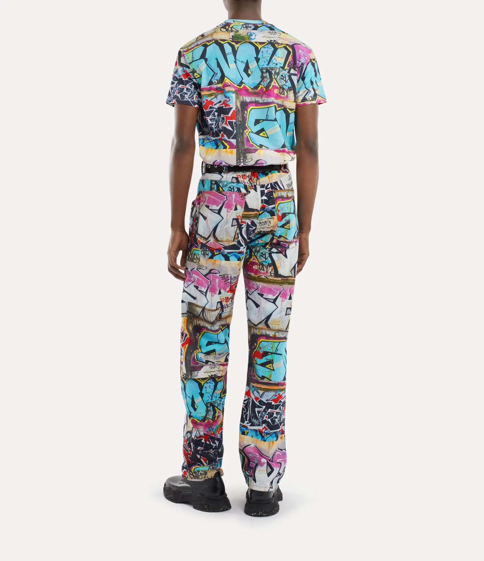 The Graffiti motif, originally debuted in the Andreas Kronthaler for Vivienne Westwood Autumn-Winter 2020-21 Paris show, embodies the house’s signature punk aesthetic. This season, we have reimagined the motif on our Baggy jeans, now featuring our newly designed orb-engraved metal buttons for a distinctive finish.