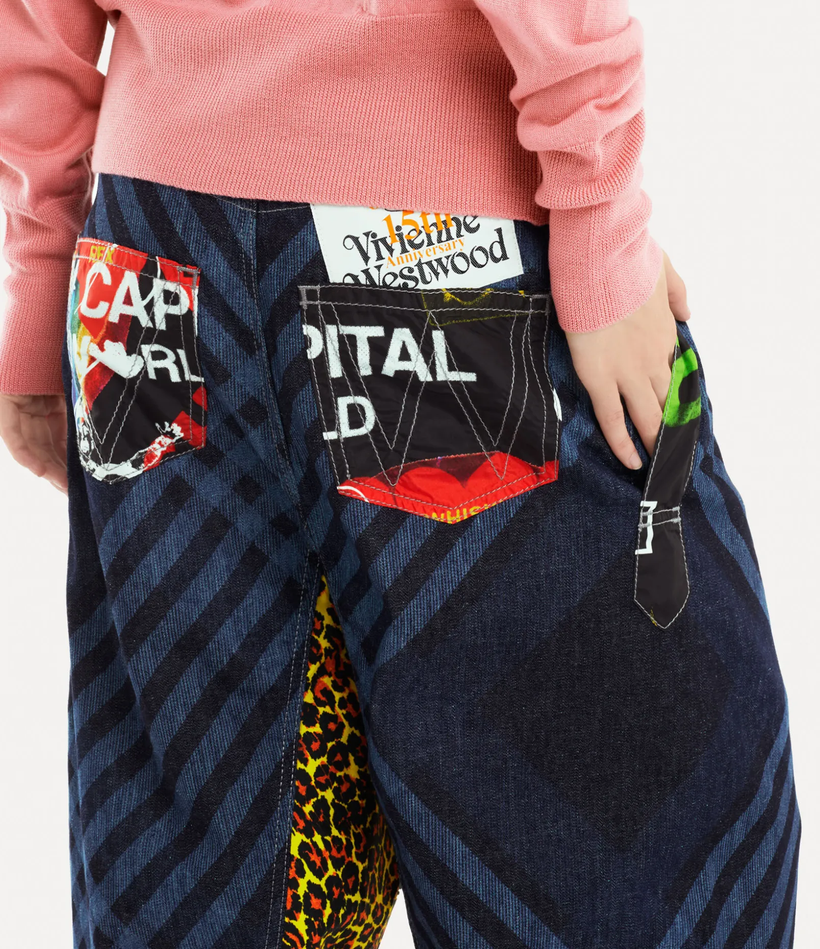 Our Macca jeans showcase leopard-print panels paired with our archive ‘Meaningless’ print, which features a combination of logos and messages that symbolise the excessive consumption prevalent in today’s society. Crafted from cotton fabric, these jeans display a tartan pattern overlay, reminiscent of the brand’s distinctive punk aesthetic.