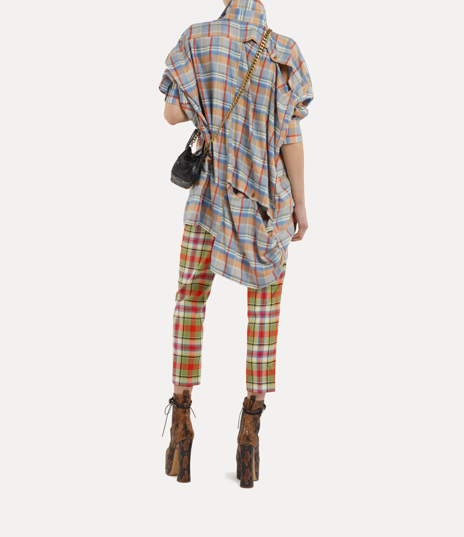 Our Cigarette trousers are offered in a tartan motif this season, reminiscent of the house’s signature punk style and Vivienne’s vision of launching something from the past into the future. As part of our new range, this piece has been updated with an orb-engraved detail at the belt loop.