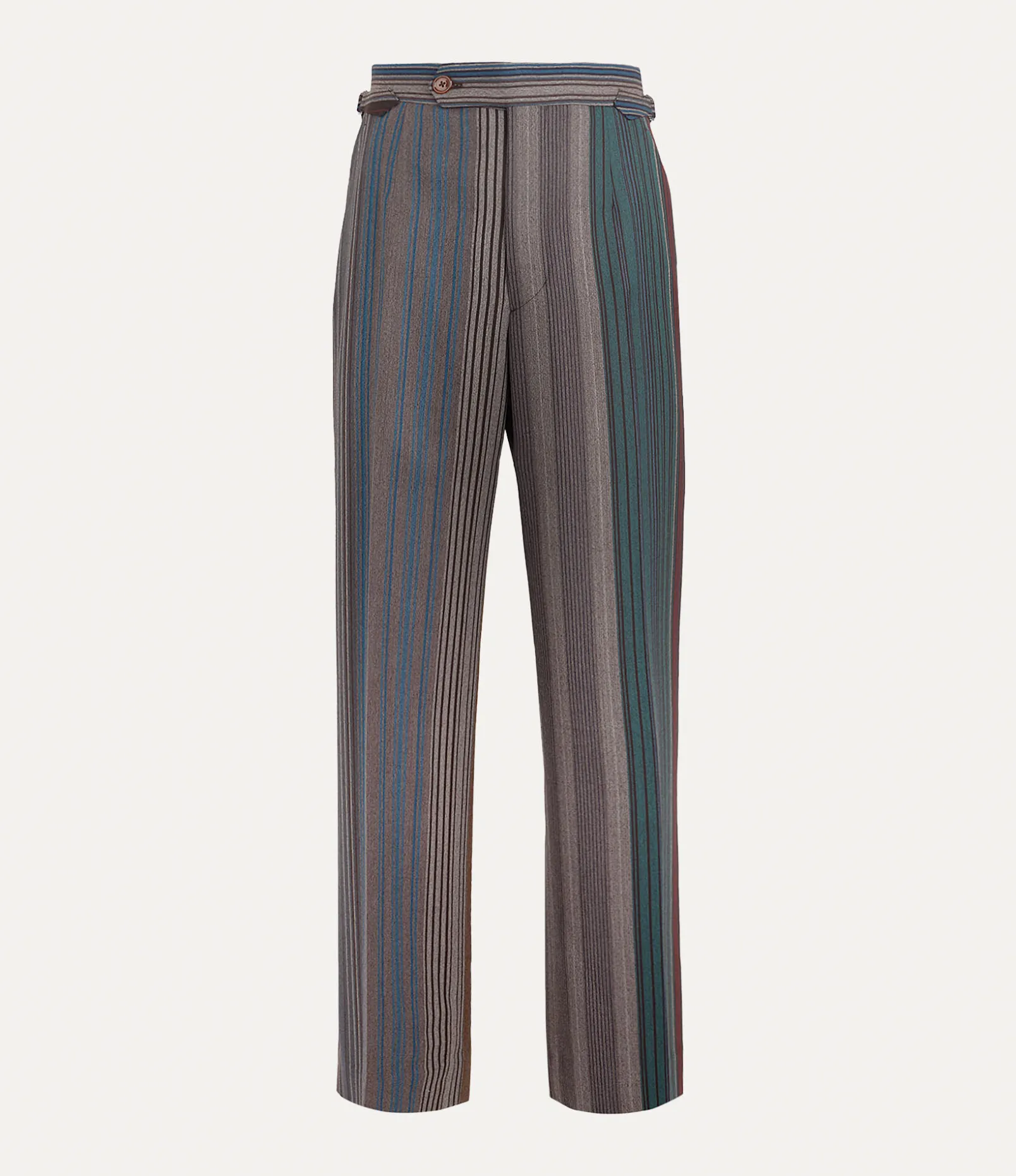 Our Humphrey trousers feature this season’s herringbone stripe pattern, reminiscent of an archival Vivienne Westwood men’s jacket from the Autumn-Winter 1998 ‘Dressed To Scale’ collection. The pair receive a mid-rise waistband, complete with adjustable buckle fastenings.