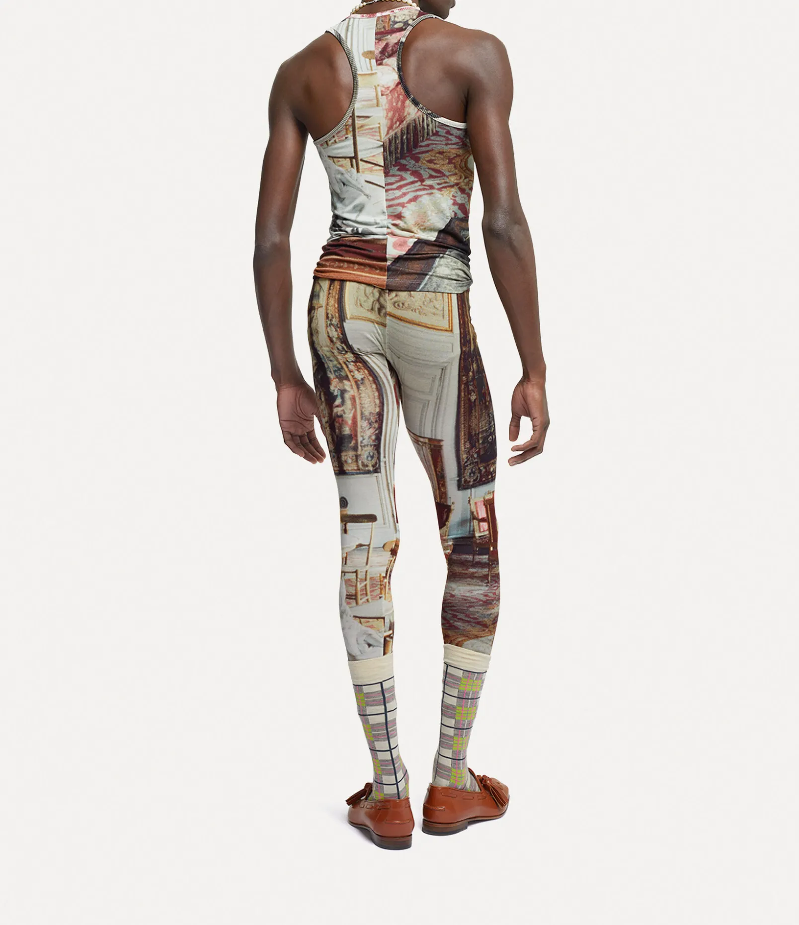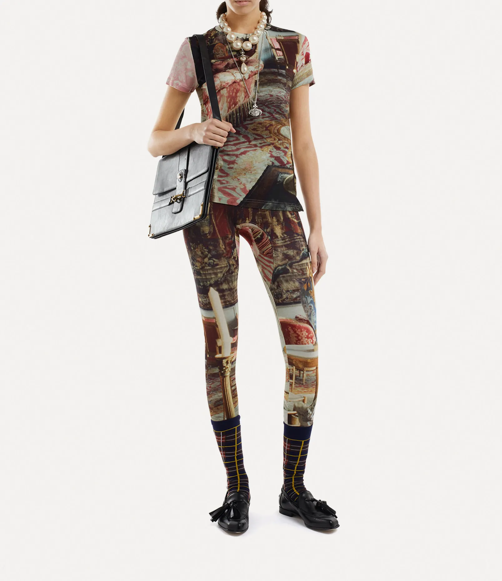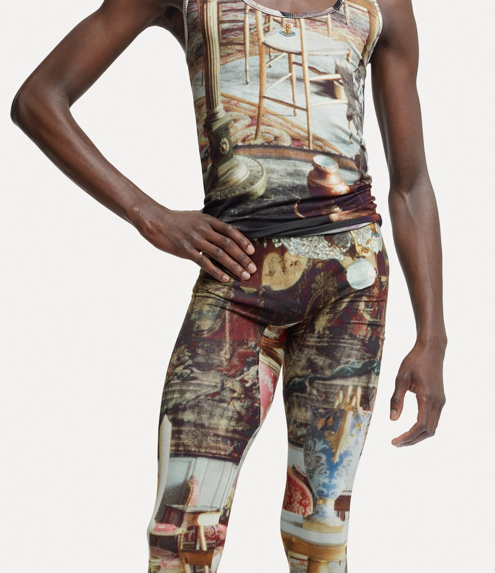 As part of our new range, our Leggings feature the classic embroidered orb motif on the hip. The all-over salon print originates from the houses Spring/Summer 1992 ‘Salon’ collection, depicting an 18th-century salon, following Vivienne Westwood’s notion of reimagining something from the past and launching it into the future.