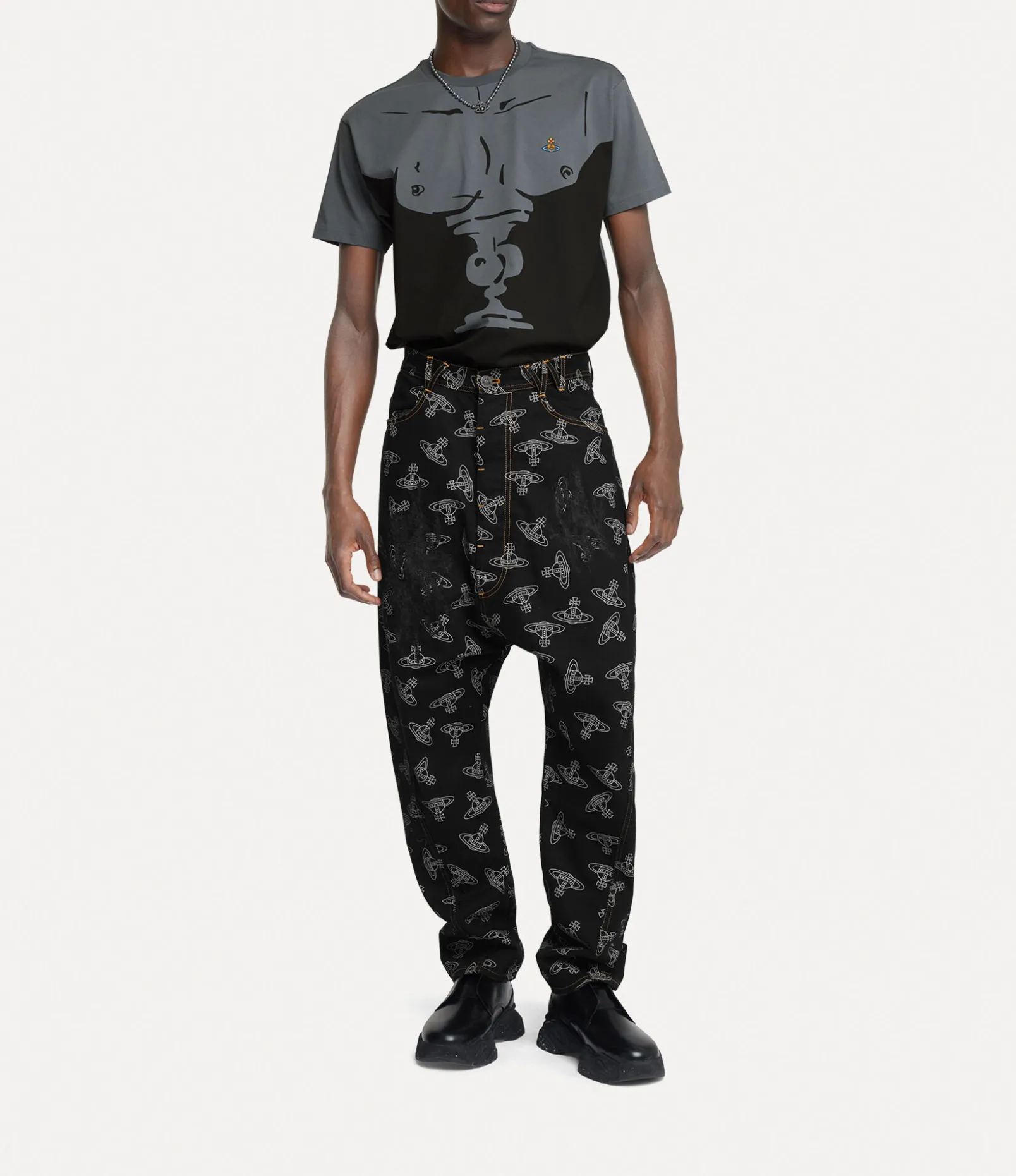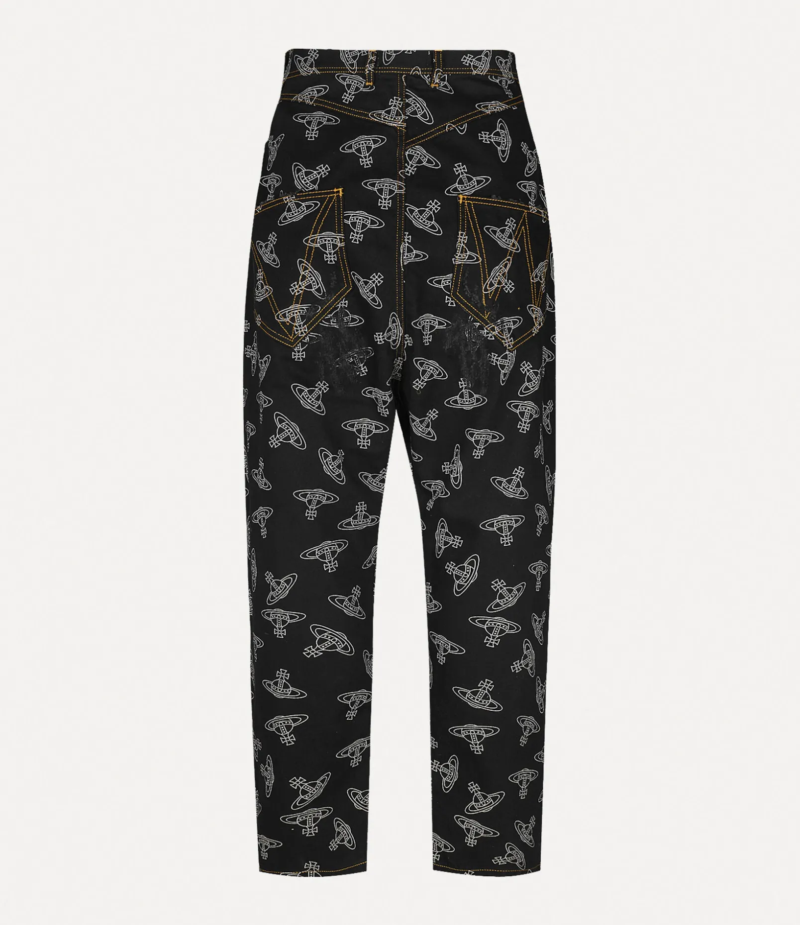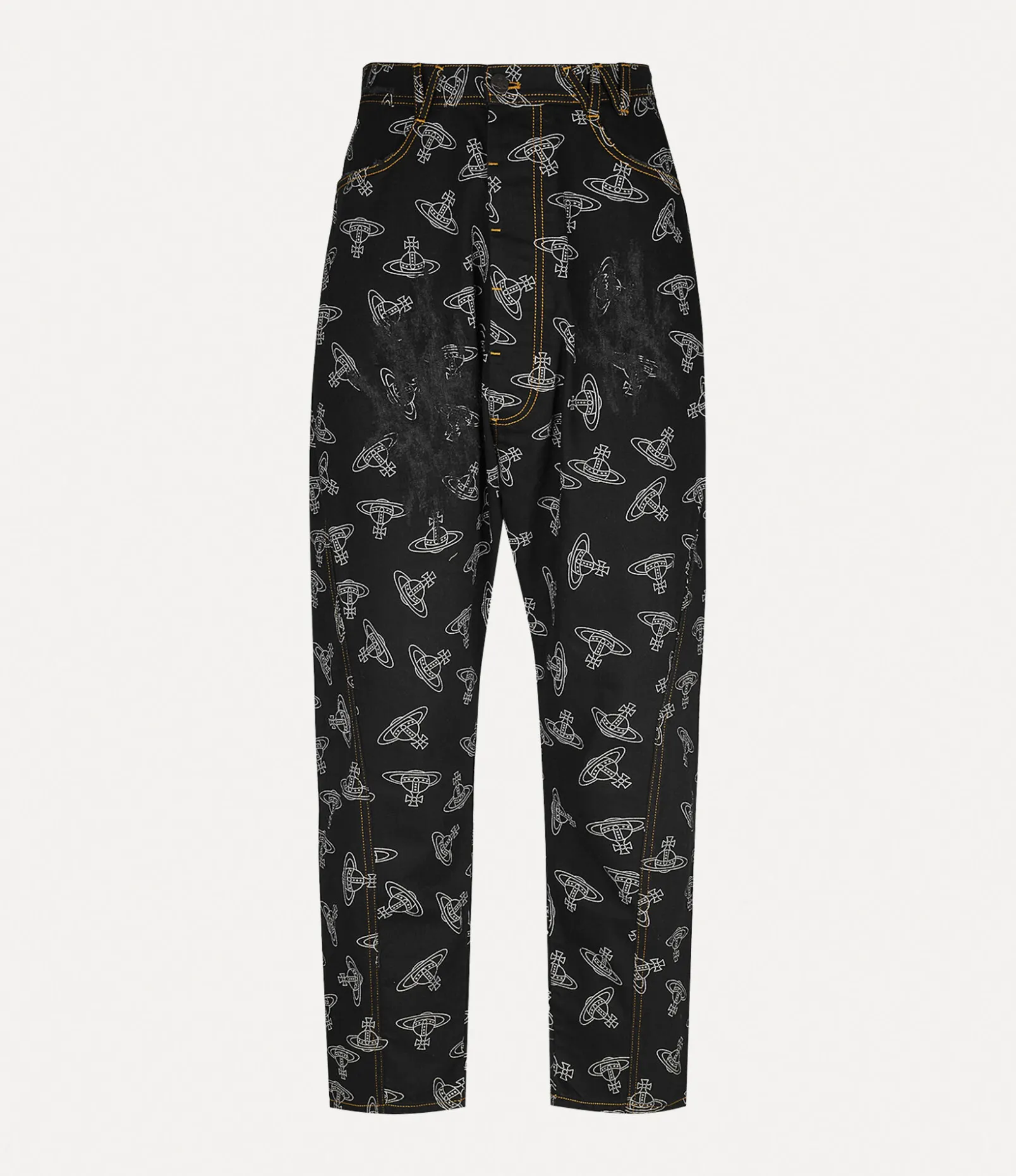 Our signature Twisted Seam jeans receive the house’s ‘Tossed Orb’ jacquard across the design, showcasing a repeated orb pattern in a contrasting white-coloured finish. The statement piece features a dropped-crotch silhouette that falls into a tapered finish, complete with contrasting topstitching.