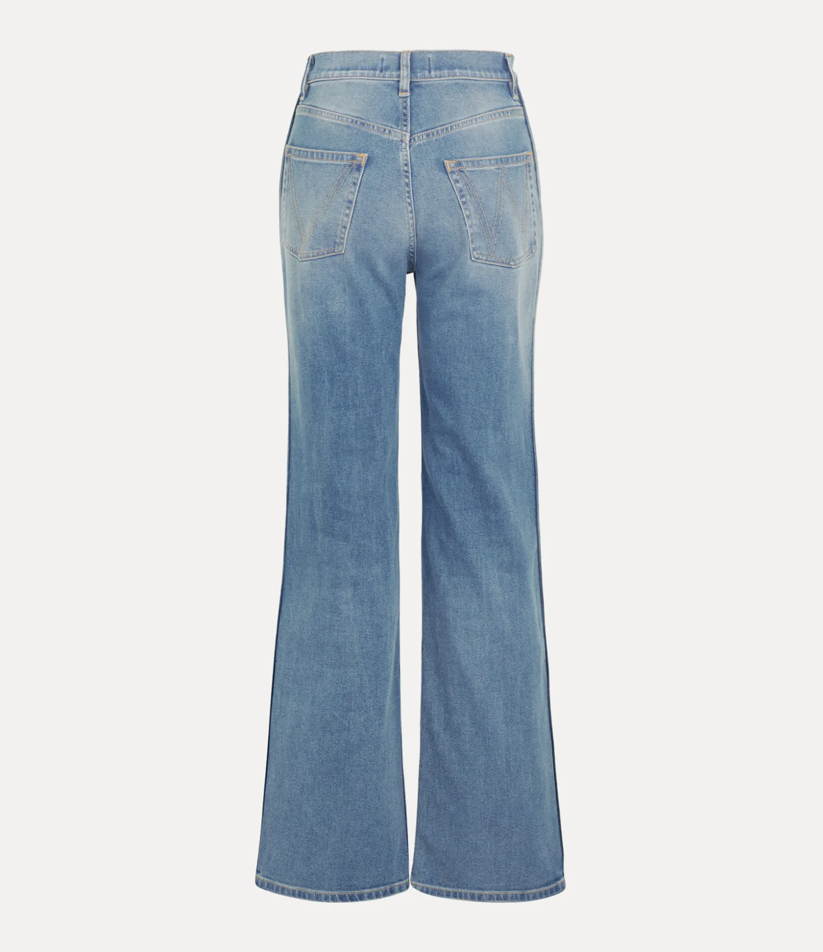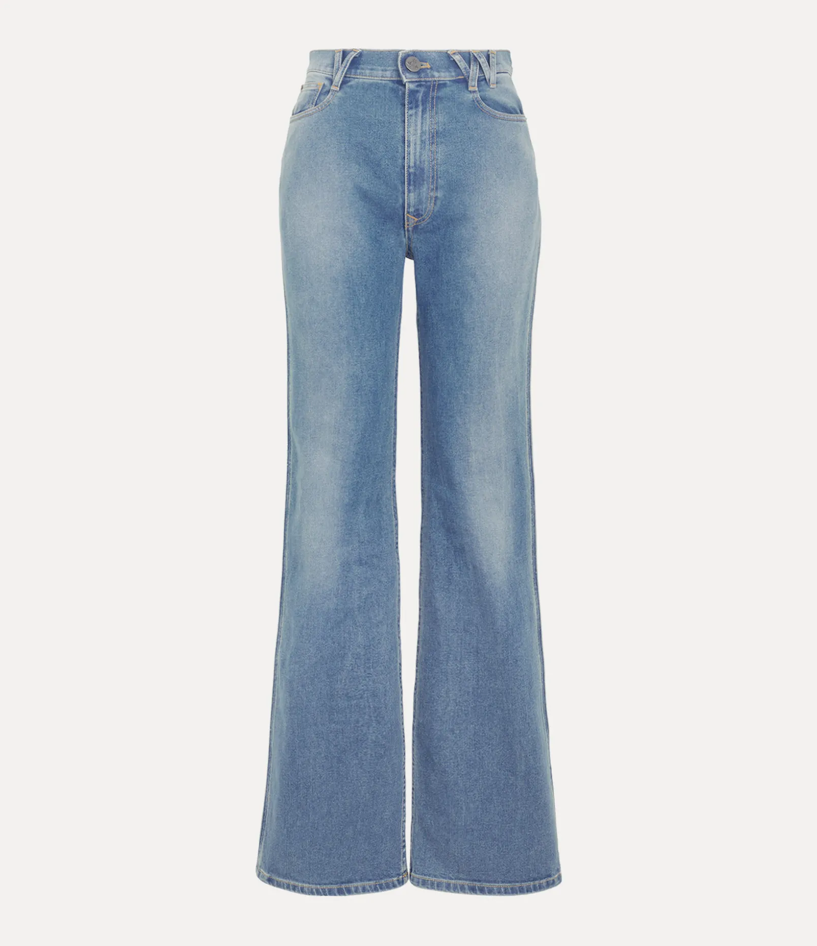 The W Ray 5 Pocket jeans are a new development of the Ray trousers, taken from the Vivienne Westwood archives. The piece receives a fitted, mid-rise waistband, adorned with monogram letter belt loops and a silver-tone orb-embossed button, falling into a flared leg design.