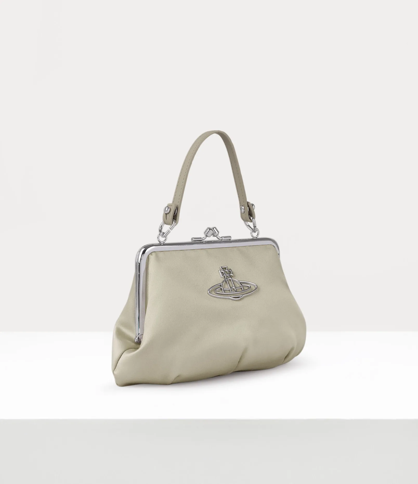 Our Granny Frame purse features vintage-inspired elements, reminiscent of antique coin purses. With a satin-blend finish, this classic features a kiss-lock frame and metal orb on the front panel, inspired by Vivienne Westwood’s orb-shaped logo, a symbol for launching tradition into the future.
