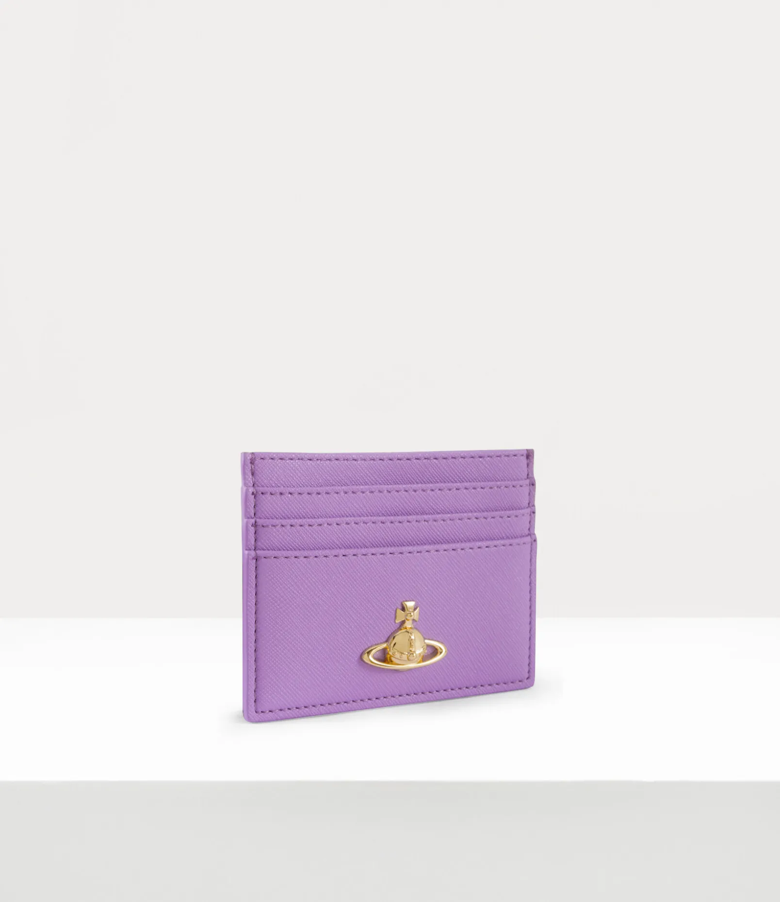 Our signature Flat card holder features a soft PU leather silhouette, complete with a saffiano-embossed motif to finish. The slim profile receives our orb branding on the front panel – synonymous with Vivienne’s vision of launching tradition into the future.