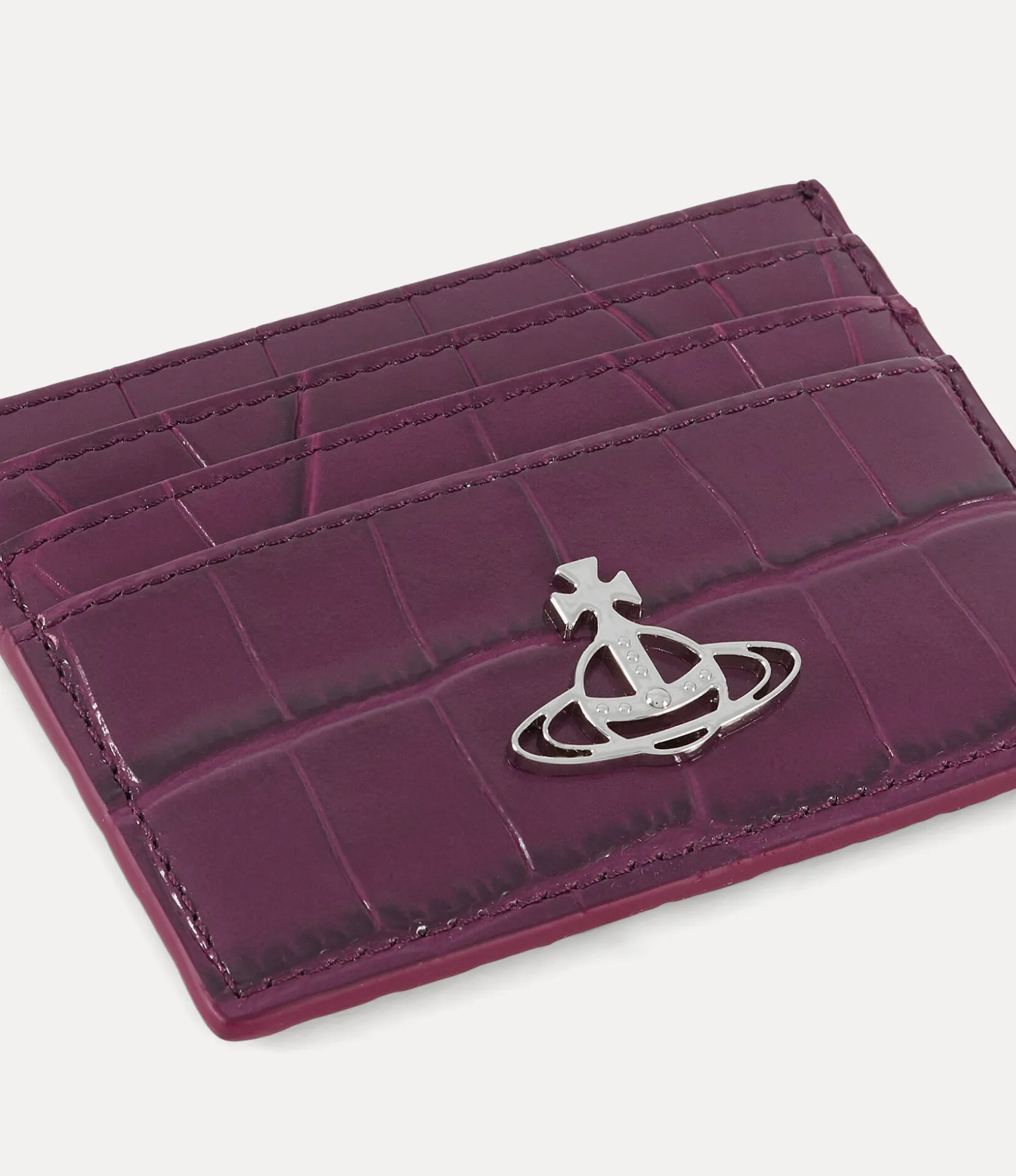 Our Flat card holder features a croc-embossed finish, complete with the house’s signature ‘line orb’ motif on the front panel, reflecting Vivienne Westwood’s vision of launching tradition into the future. As part of our new range, the piece receives this season’s shiny leather texture, finished with card slots on either side of the design.