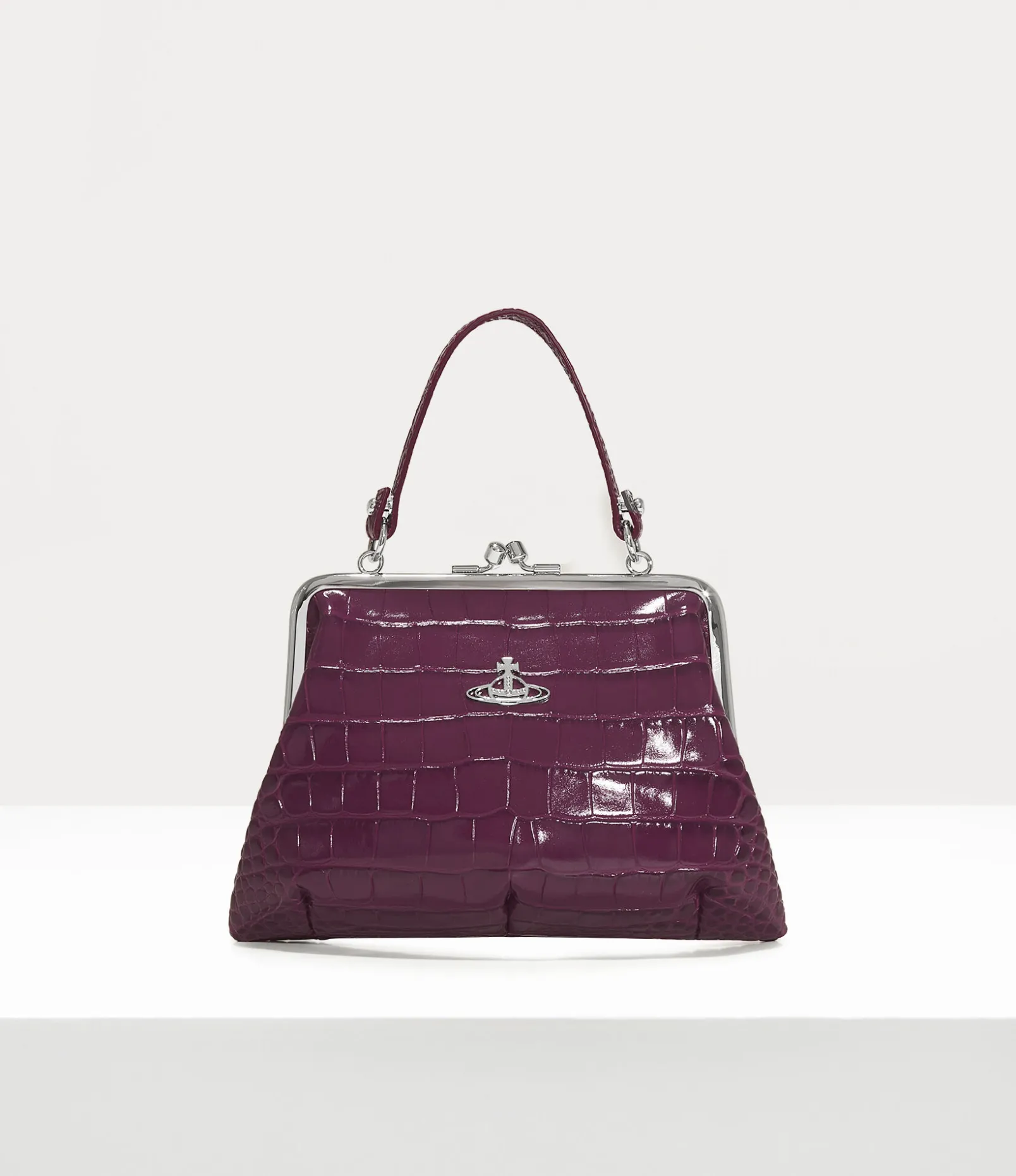 Our Granny Frame purse features a vintage-inspired silhouette and a kiss-lock closure, recalling antique coin purses from the early 20th century. The piece receives a croc-embossed finish, complete with our classic line orb motif – synonymous with Vivienne’s vision for taking tradition into the future.
